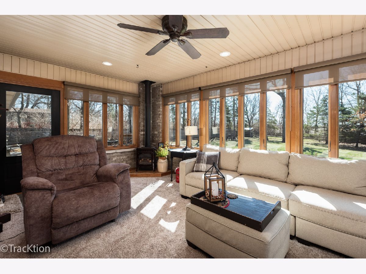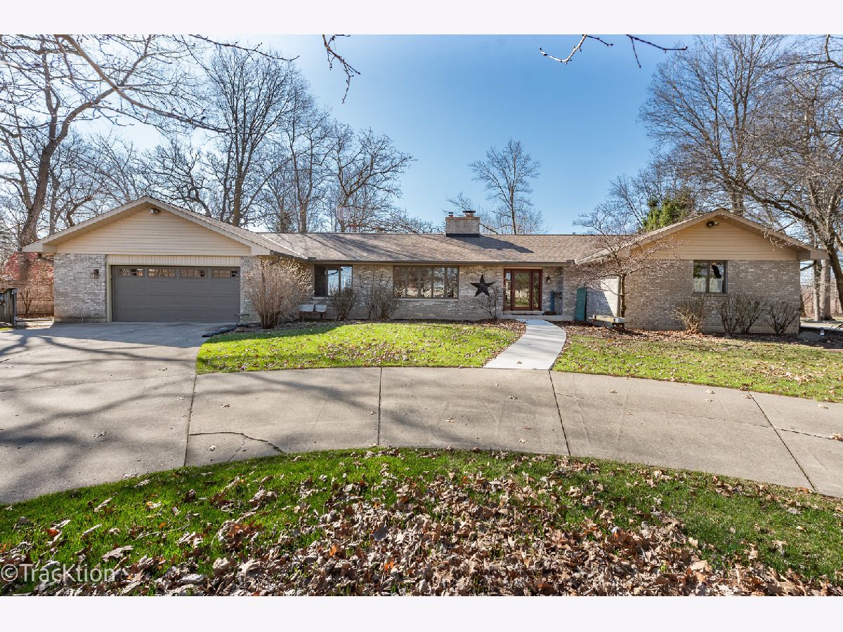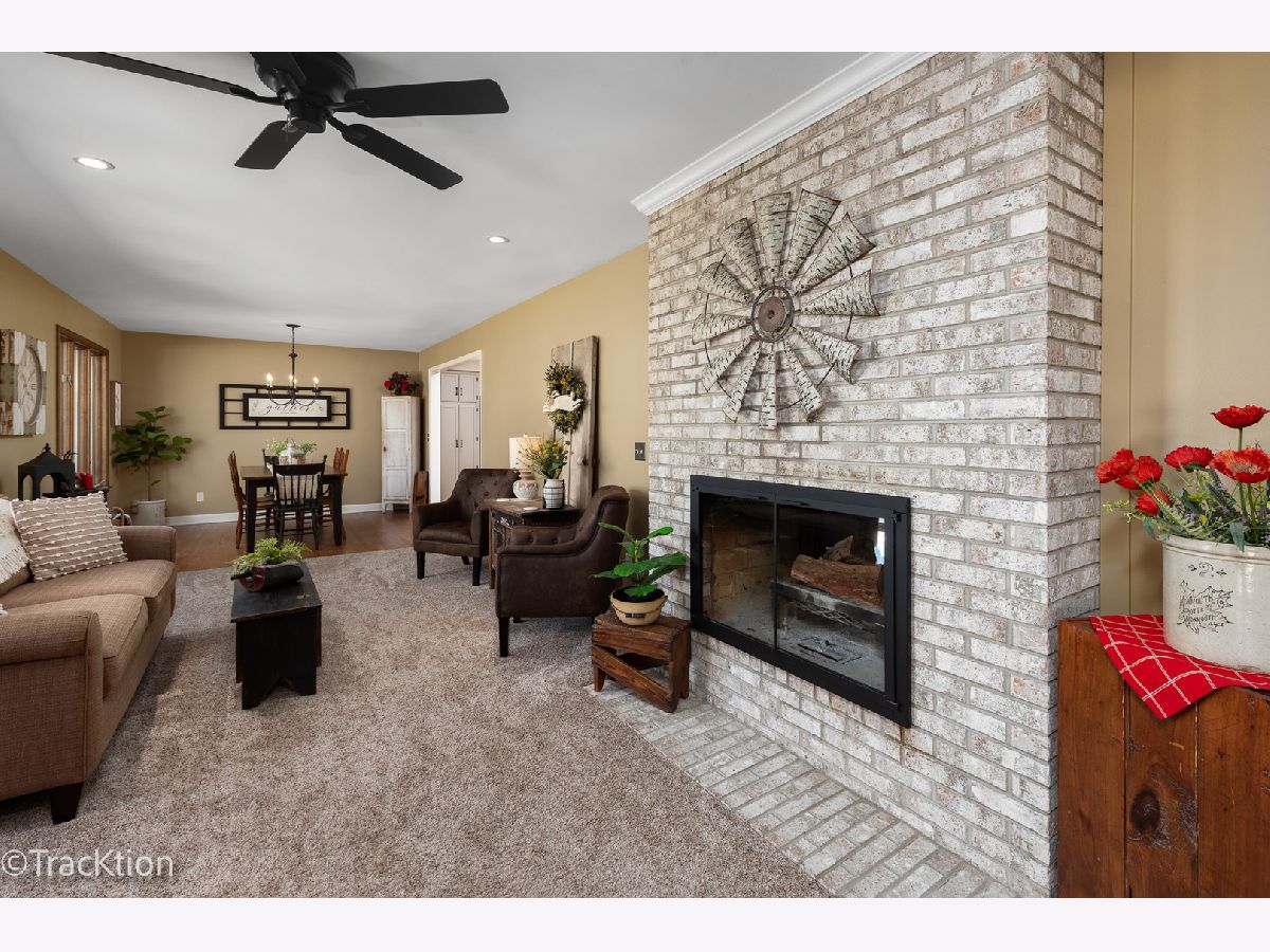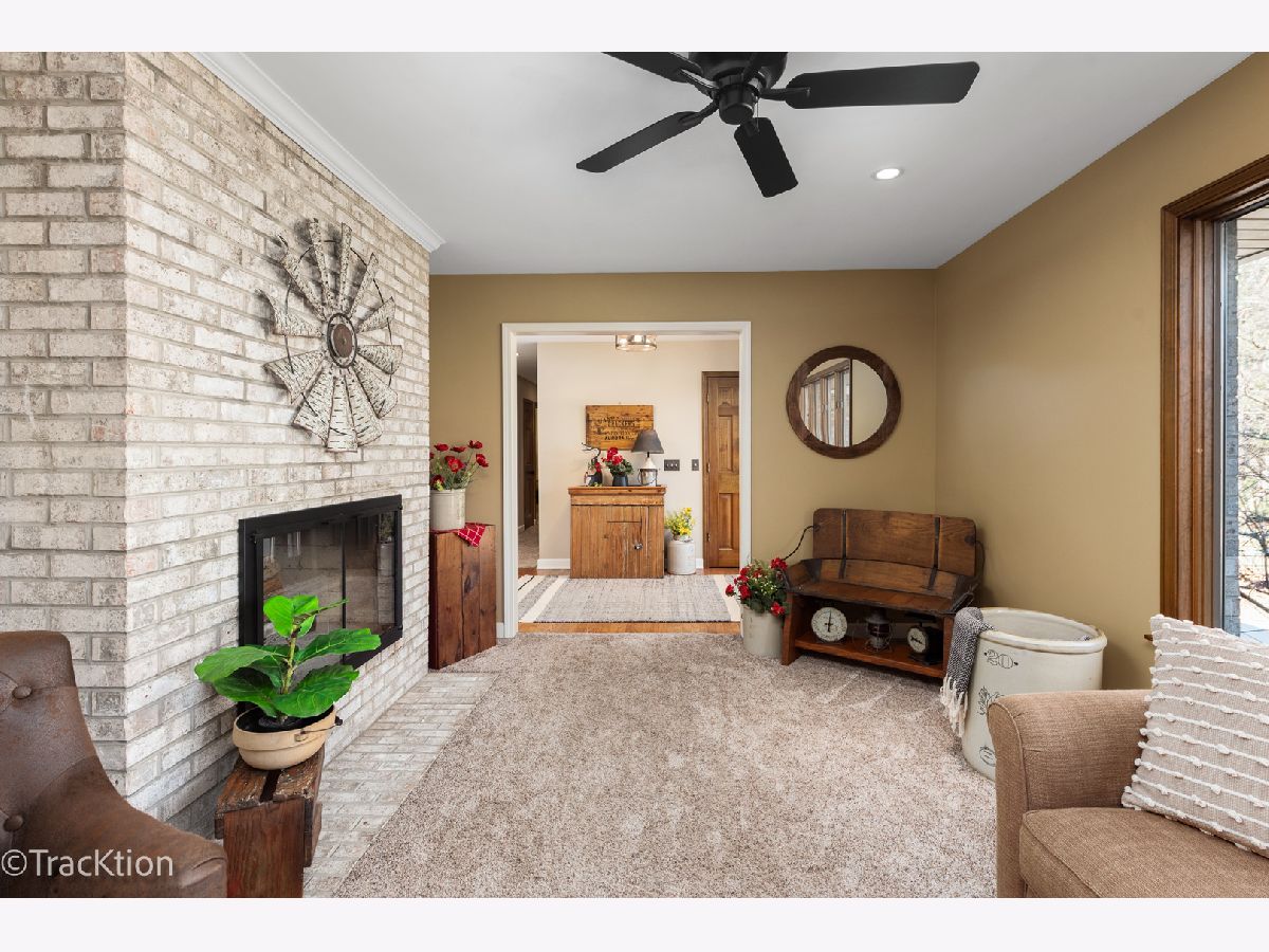 Quality built 3-4 bedroom, 2.5 bath brick ranch set on a private, picturesque wooded acre. A striking circular concrete driveway provides ample parking and impressive curb appeal. Step inside to a welcoming entry featuring beautiful hardwood floors and a stunning see through fireplace that creates a warm and inviting focal point. The open-concept gourmet kitchen offers granite countertops, hardwood flooring, an island, and a combination of track and recessed lighting. The kitchen is equipped with a five burner cooktop, stainless steel refrigerator and abundant cabinetry with roll out shelves. The spacious main level family room flows seamlessly into a heated sunroom with newer carpeting, custom blinds, and an additional fireplace perfect for year round enjoyment. The primary suite features a soaring vaulted ceiling, ceiling fan, and newer carpet, along with a fully updated luxury bath complete with a walk in shower, double vanity, dual sinks, lighted mirror, luxury vinyl flooring, and a custom closet. Bedrooms two and three are generously sized with newer carpeting, ceiling fans, and closet organizers. A flexible main floor den can easily serve as a fourth bedroom or home office. Convenient first-floor laundry includes washer, dryer, and additional cabinetry. Additional highlights include six panel doors throughout, a full basement with a second gas stove and an additional washer and dryer, 200 amp electrical service, central humidifier, smart thermostat, and radon mitigation system. The attached 2.5 car garage offers extra storage, and the refrigerator in the garage will remain. Enjoy outdoor living on the expansive 960 sq ft deck overlooking the serene, wooded yard. The newer 40x30 pole barn with concrete floor provides excellent additional storage or parking options and includes RV hookup. The property is completed with a split rail fence. Located in an award-winning school district with convenient access to expressways, this home offers the perfect blend of privacy, functionality, and quality craftsmanship.