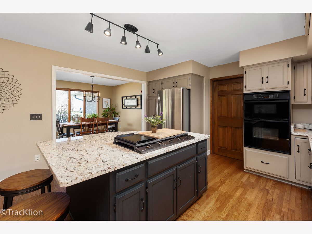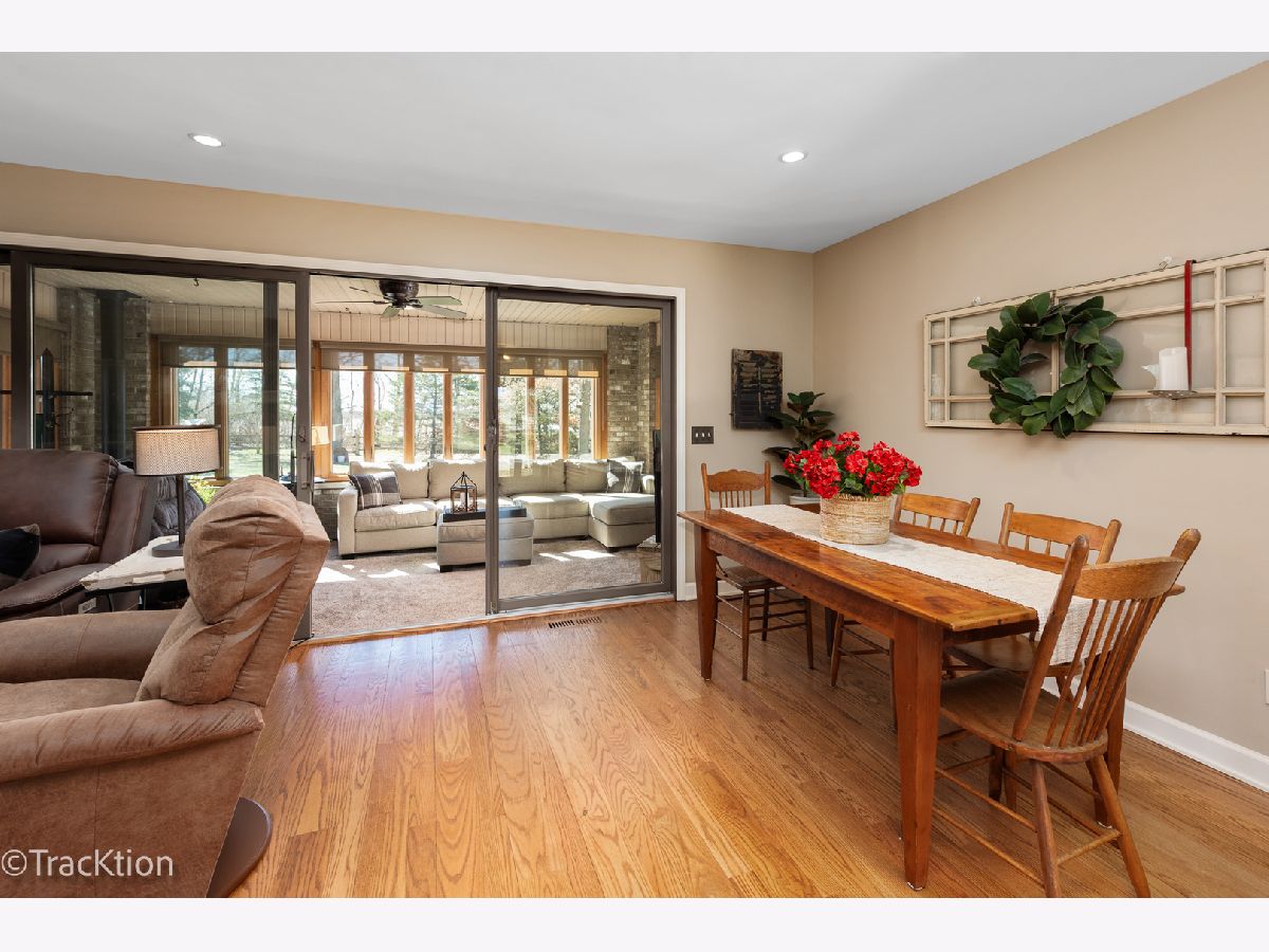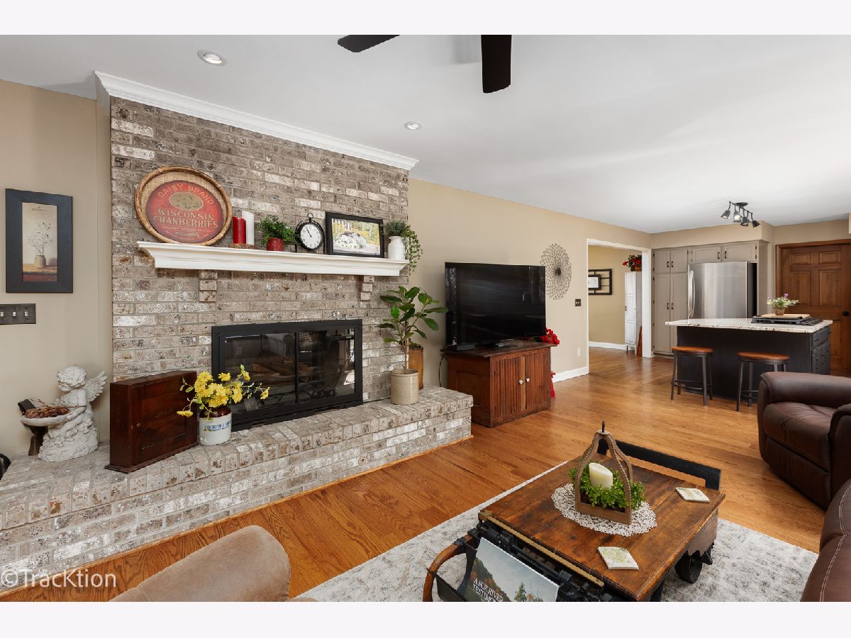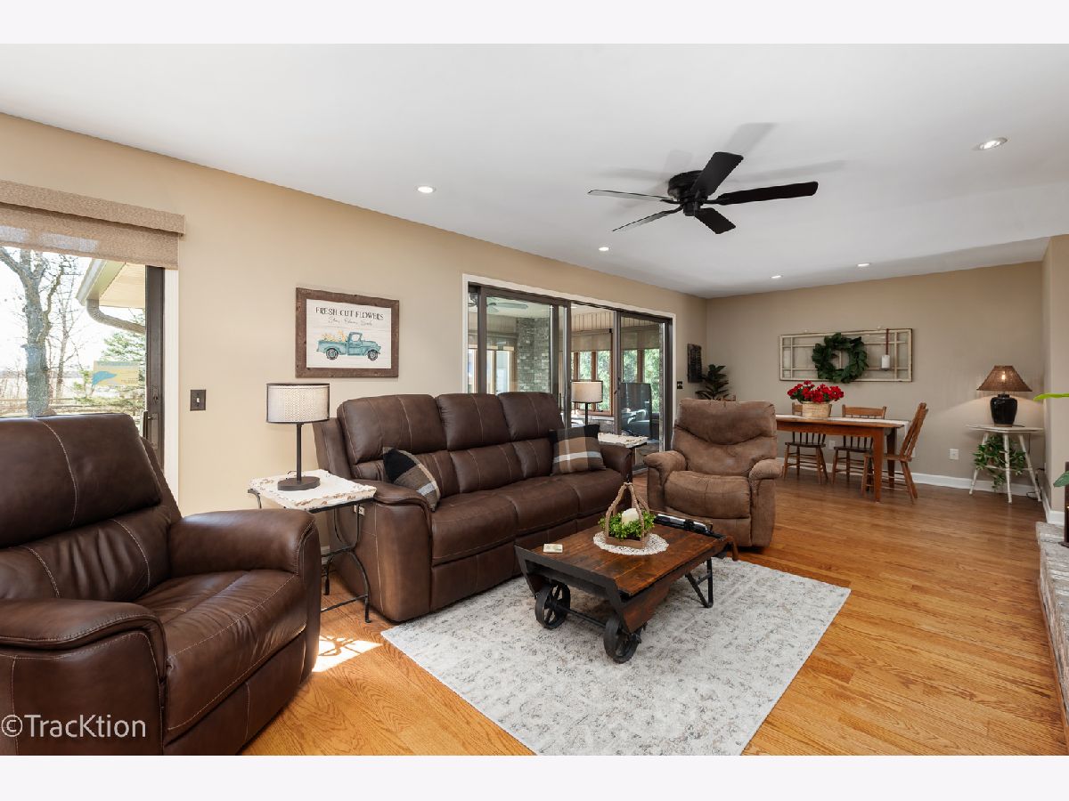 Quality built 3-4 bedroom, 2.5 bath brick ranch set on a private, picturesque wooded acre. A striking circular concrete driveway provides ample parking and impressive curb appeal. Step inside to a welcoming entry featuring beautiful hardwood floors and a stunning see through fireplace that creates a warm and inviting focal point. The open-concept gourmet kitchen offers granite countertops, hardwood flooring, an island, and a combination of track and recessed lighting. The kitchen is equipped with a five burner cooktop, stainless steel refrigerator and abundant cabinetry with roll out shelves. The spacious main level family room flows seamlessly into a heated sunroom with newer carpeting, custom blinds, and an additional fireplace perfect for year round enjoyment. The primary suite features a soaring vaulted ceiling, ceiling fan, and newer carpet, along with a fully updated luxury bath complete with a walk in shower, double vanity, dual sinks, lighted mirror, luxury vinyl flooring, and a custom closet. Bedrooms two and three are generously sized with newer carpeting, ceiling fans, and closet organizers. A flexible main floor den can easily serve as a fourth bedroom or home office. Convenient first-floor laundry includes washer, dryer, and additional cabinetry. Additional highlights include six panel doors throughout, a full basement with a second gas stove and an additional washer and dryer, 200 amp electrical service, central humidifier, smart thermostat, and radon mitigation system. The attached 2.5 car garage offers extra storage, and the refrigerator in the garage will remain. Enjoy outdoor living on the expansive 960 sq ft deck overlooking the serene, wooded yard. The newer 40x30 pole barn with concrete floor provides excellent additional storage or parking options and includes RV hookup. The property is completed with a split rail fence. Located in an award-winning school district with convenient access to expressways, this home offers the perfect blend of privacy, functionality, and quality craftsmanship.