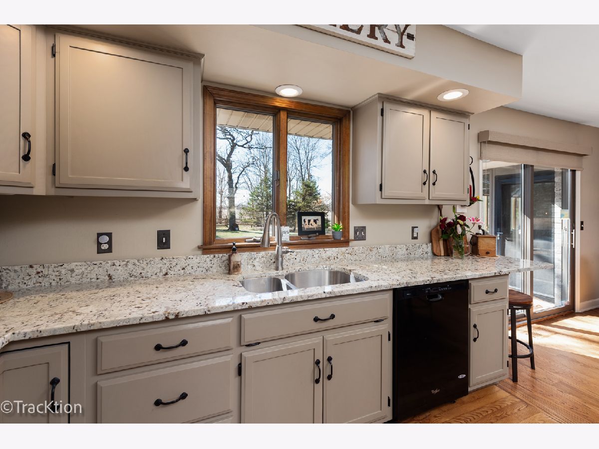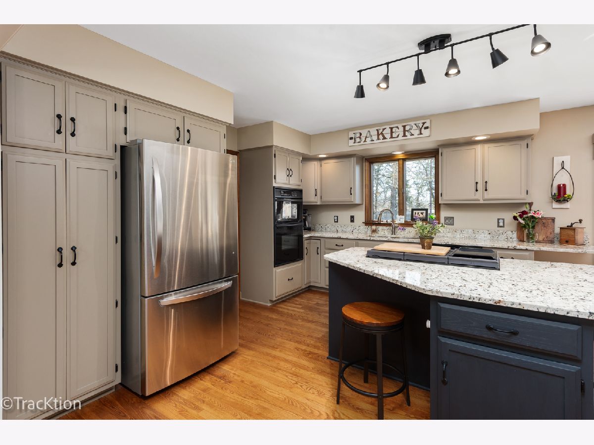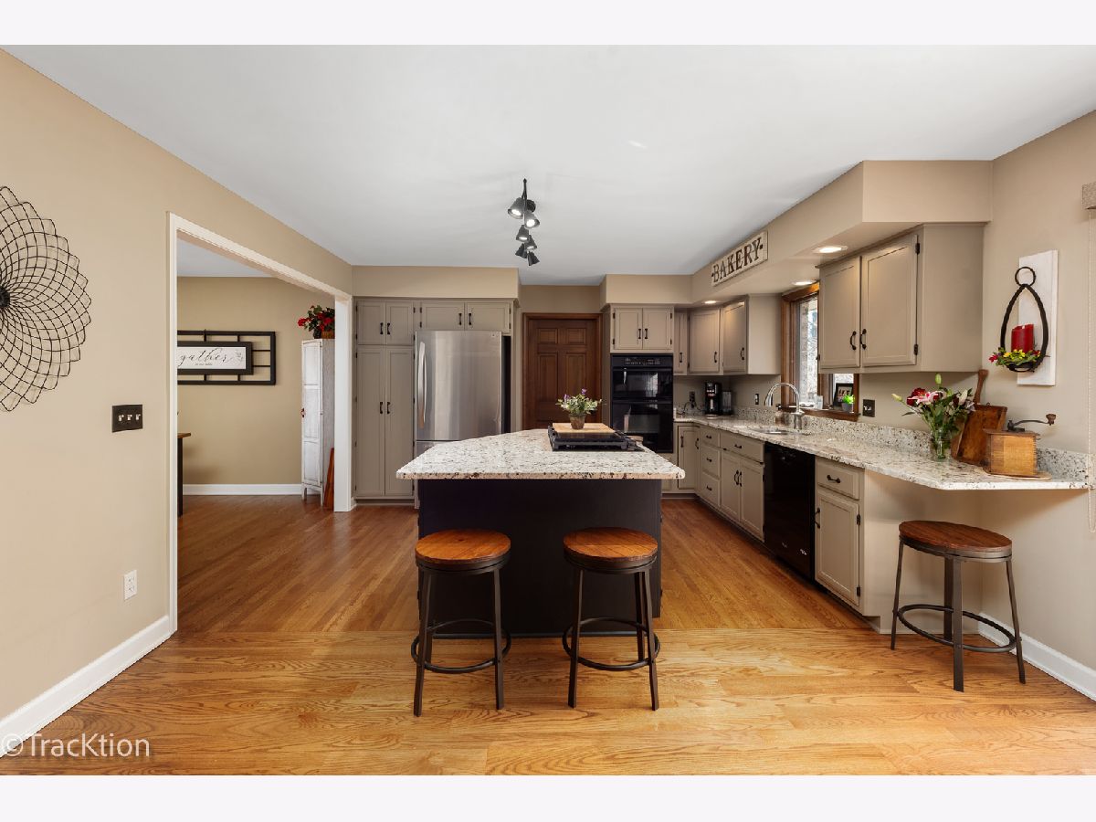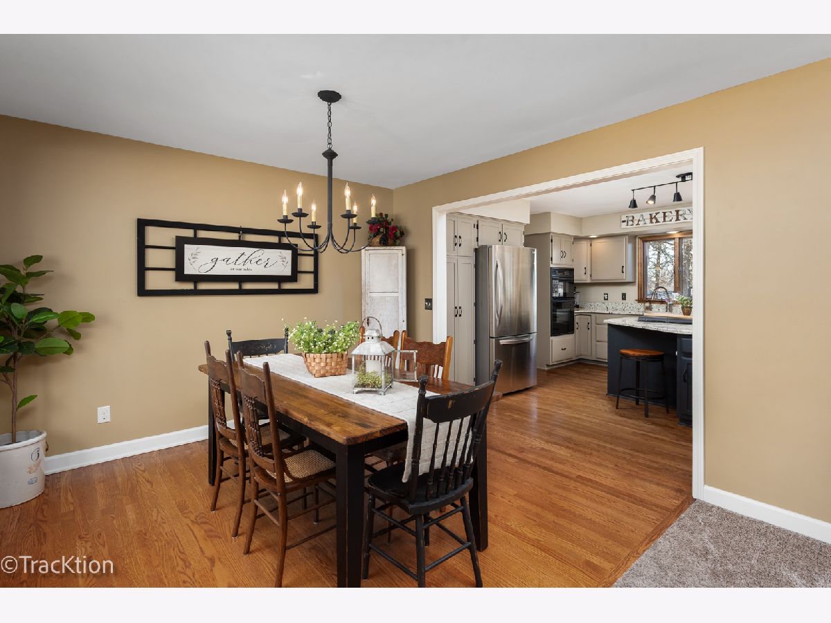Quality built 3-4 bedroom, 2.5 bath brick ranch set on a private, picturesque wooded acre. A striking circular concrete driveway provides ample parking and impressive curb appeal. Step inside to a welcoming entry featuring beautiful hardwood floors and a stunning see through fireplace that creates a warm and inviting focal point. The open-concept gourmet kitchen offers granite countertops, hardwood flooring, an island, and a combination of track and recessed lighting. The kitchen is equipped with a five burner cooktop, stainless steel refrigerator and abundant cabinetry with roll out shelves. The spacious main level family room flows seamlessly into a heated sunroom with newer carpeting, custom blinds, and an additional fireplace perfect for year round enjoyment. The primary suite features a soaring vaulted ceiling, ceiling fan, and newer carpet, along with a fully updated luxury bath complete with a walk in shower, double vanity, dual sinks, lighted mirror, luxury vinyl flooring, and a custom closet. Bedrooms two and three are generously sized with newer carpeting, ceiling fans, and closet organizers. A flexible main floor den can easily serve as a fourth bedroom or home office. Convenient first-floor laundry includes washer, dryer, and additional cabinetry. Additional highlights include six panel doors throughout, a full basement with a second gas stove and an additional washer and dryer, 200 amp electrical service, central humidifier, smart thermostat, and radon mitigation system. The attached 2.5 car garage offers extra storage, and the refrigerator in the garage will remain. Enjoy outdoor living on the expansive 960 sq ft deck overlooking the serene, wooded yard. The newer 40x30 pole barn with concrete floor provides excellent additional storage or parking options and includes RV hookup. The property is completed with a split rail fence. Located in an award-winning school district with convenient access to expressways, this home offers the perfect blend of privacy, functionality, and quality craftsmanship.