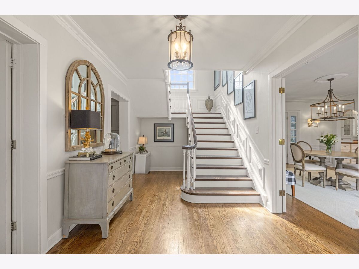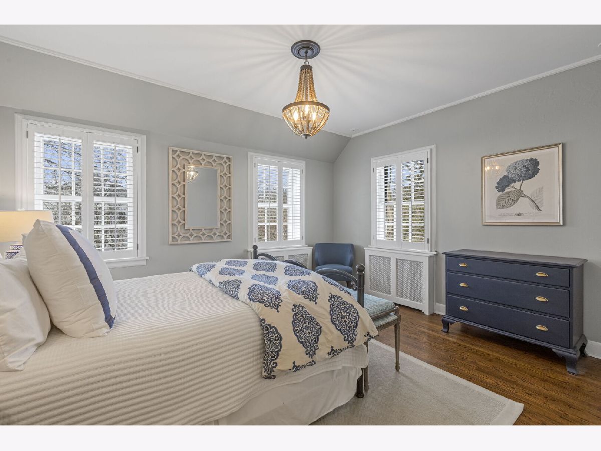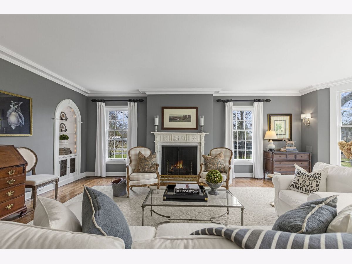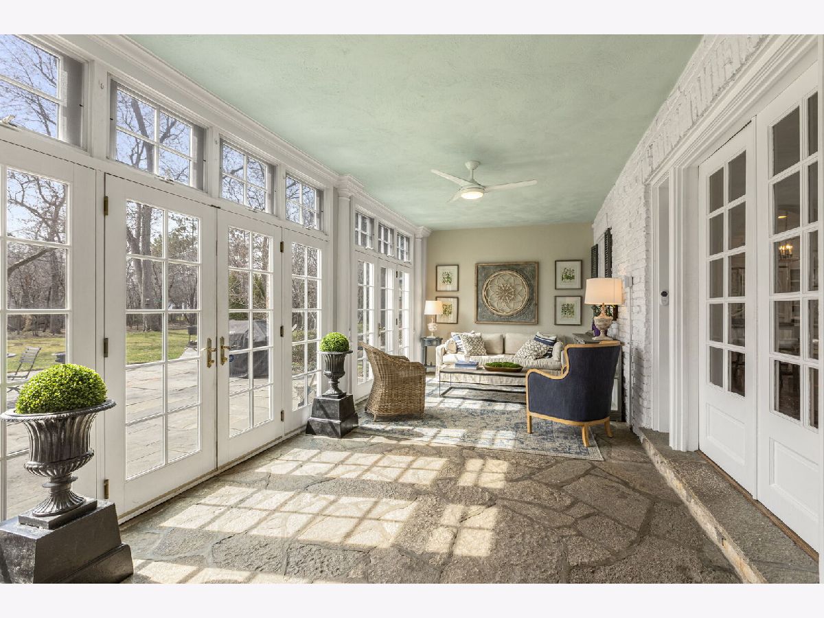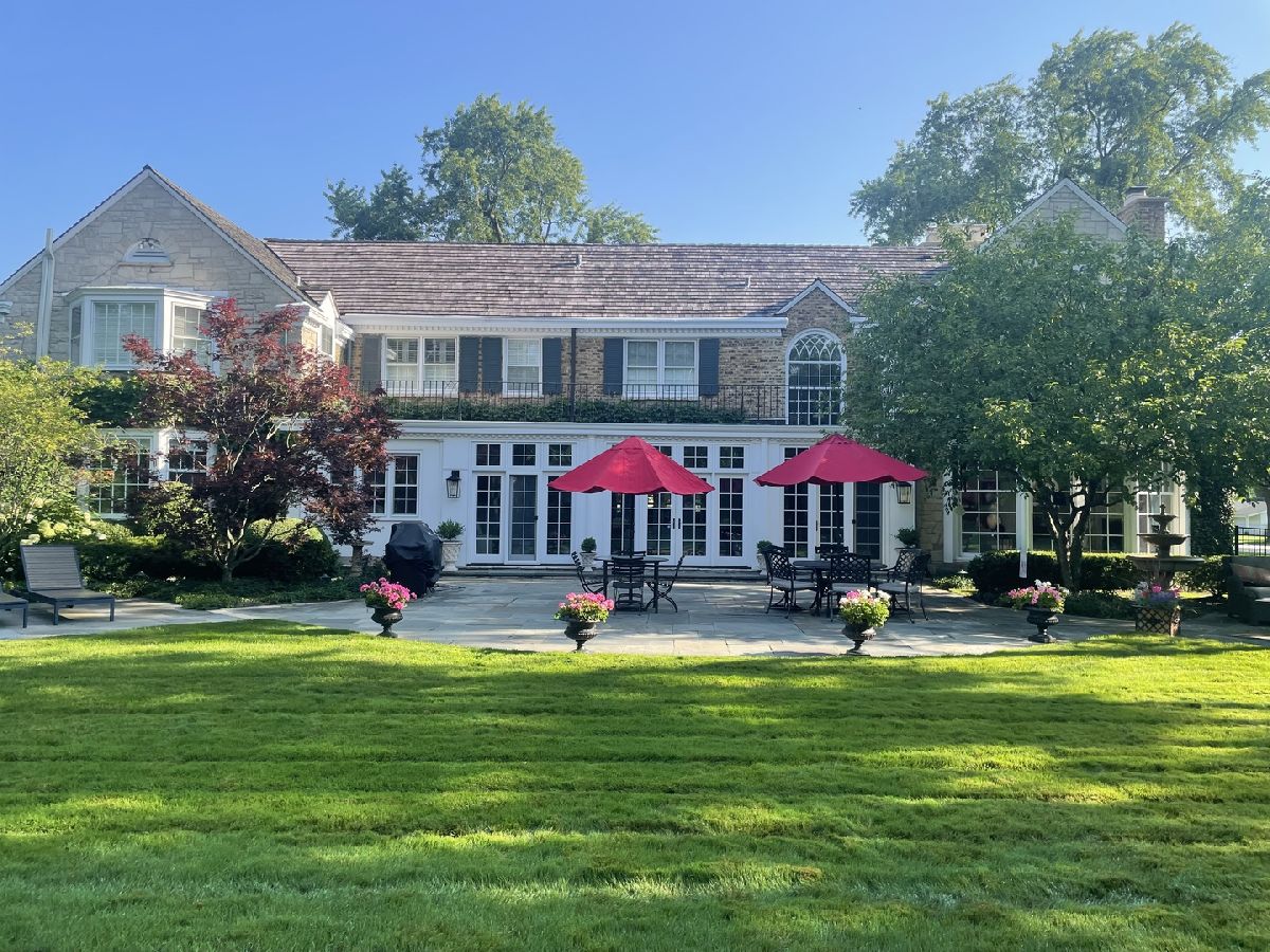 Designed by the highly regarded architect Stanley Anderson and built in 1930, this classic Colonial Revival estate in North King Muir represents one of Lake Forest's finest examples of preserved historic architecture. Restored to its original splendor and meticulously reimagined for contemporary living, the residence spans over 5,200 square feet with multiple light-filled spaces for entertaining within its historic proportions. A circular drive and Lannon stone and brick facade offer a commanding presence before one even reaches the front door. Inside, impeccable bones and vintage character throughout: hardwood floors, mouldings, wainscotting, arched doorways, original re-plated brass hardware. The main level flows beautifully from the grand foyer to a front office/den, sunny living room, and spacious dining room. Extending from the living and dining rooms, the heated sunroom creates a year-round connection to the grounds and opens to the bluestone patio just beyond. The classically inspired Christopher Peacock kitchen is the heart of the home. Commercial-grade appliances, abundant cabinetry, marble, granite, and teak countertops, two sinks and a generous center island anchor the space. A thoughtfully placed pantry with barn door rests off the kitchen, as does a breakfast room which opens directly into the family room via a charming cased pass-through bar. A bonus room with an ideal first-floor guest bedroom or office, large sunny laundry room, and full bathroom complete the first floor. Upstairs, five generously sized bedrooms each enjoy their own ensuite bath featuring vintage-style tile and traditional details. One bedroom opens onto a deck overlooking the yard. The primary suite functions as its own private wing: a boutique-worthy walk-in closet and dressing area, a fully remodeled spa-inspired bath, a private staircase to the kitchen below and a view overlooking the backyard. Outside, an expansive bluestone patio opens to a professionally landscaped lawn framed by a wooded setting and wrought iron fence, creating a true private sanctuary on nearly an acre. A two-car garage, full basement, and a long list of upgrades complete this extraordinary property.
