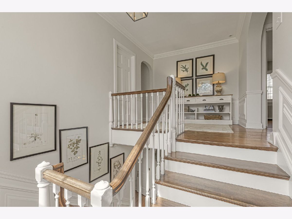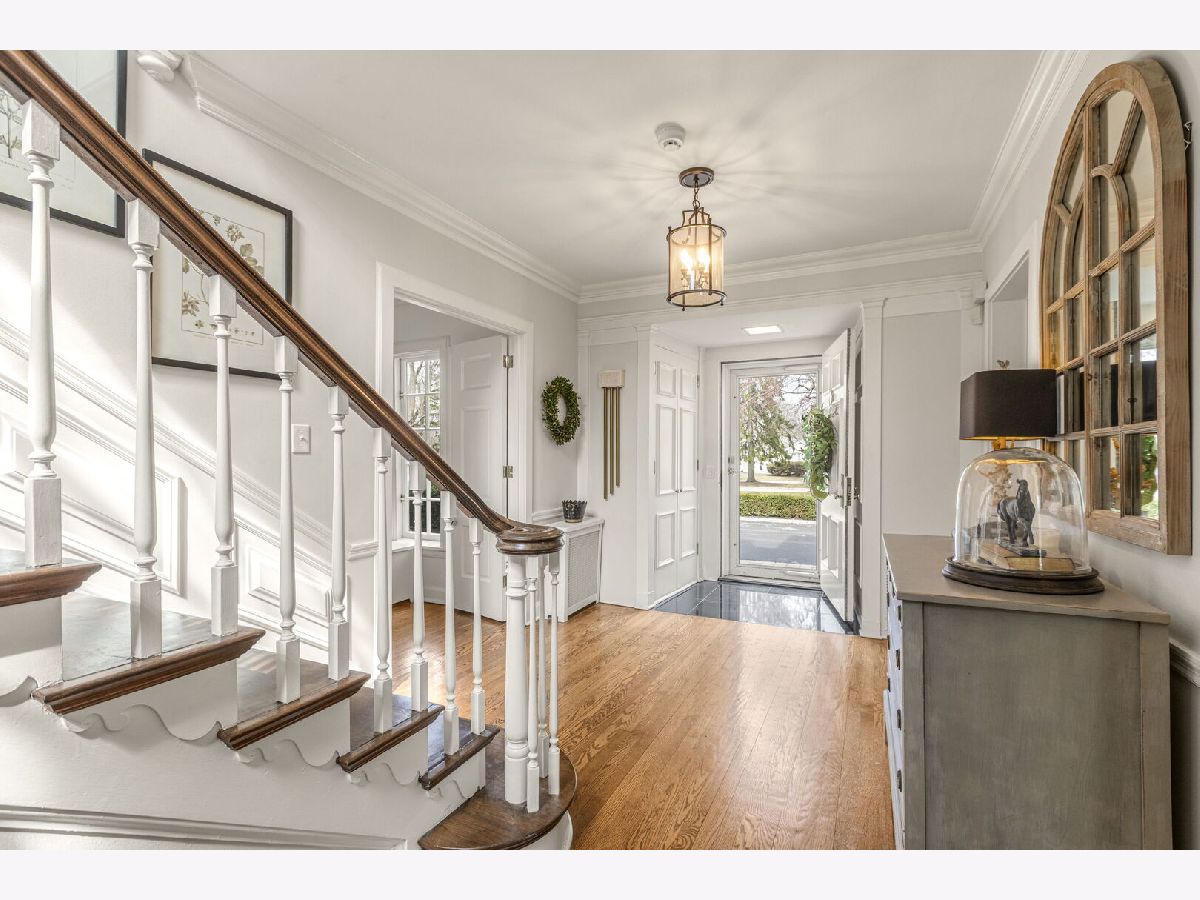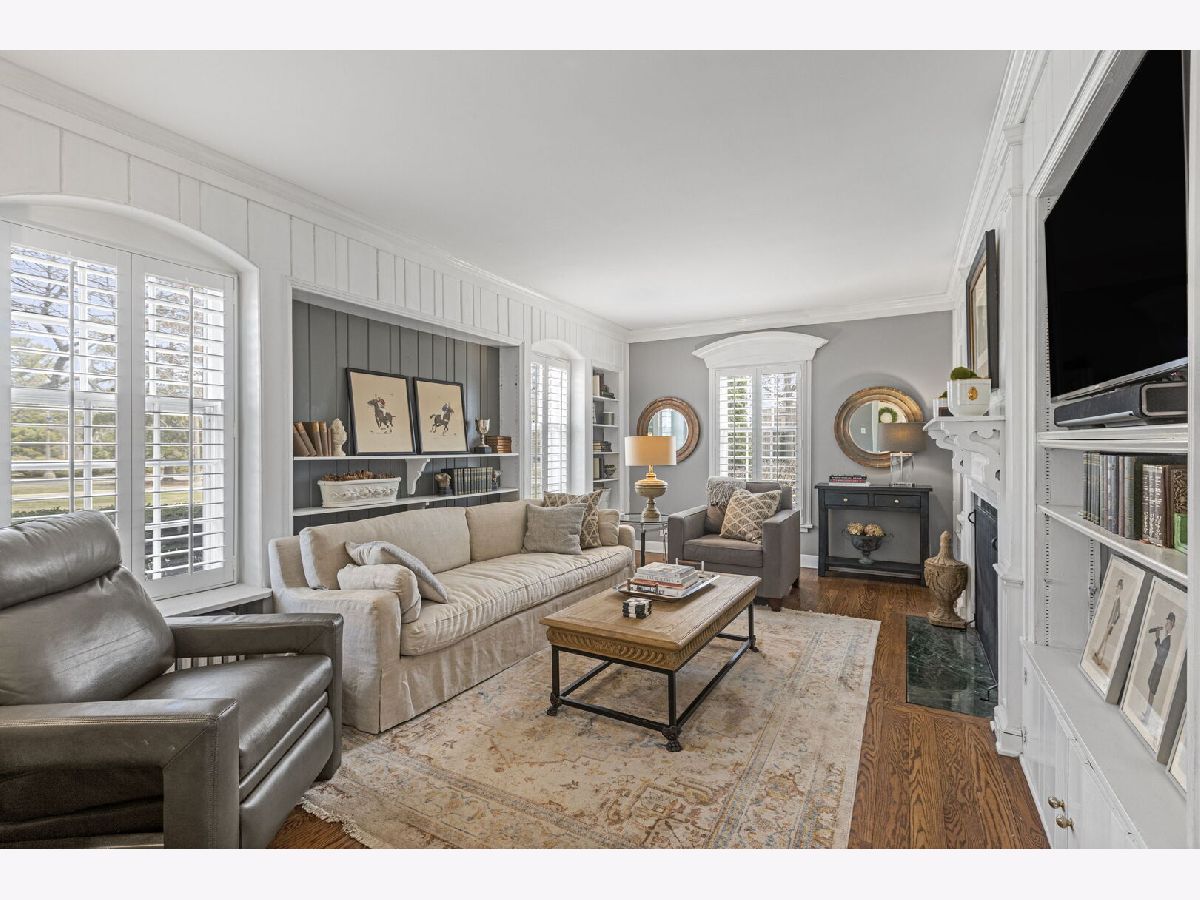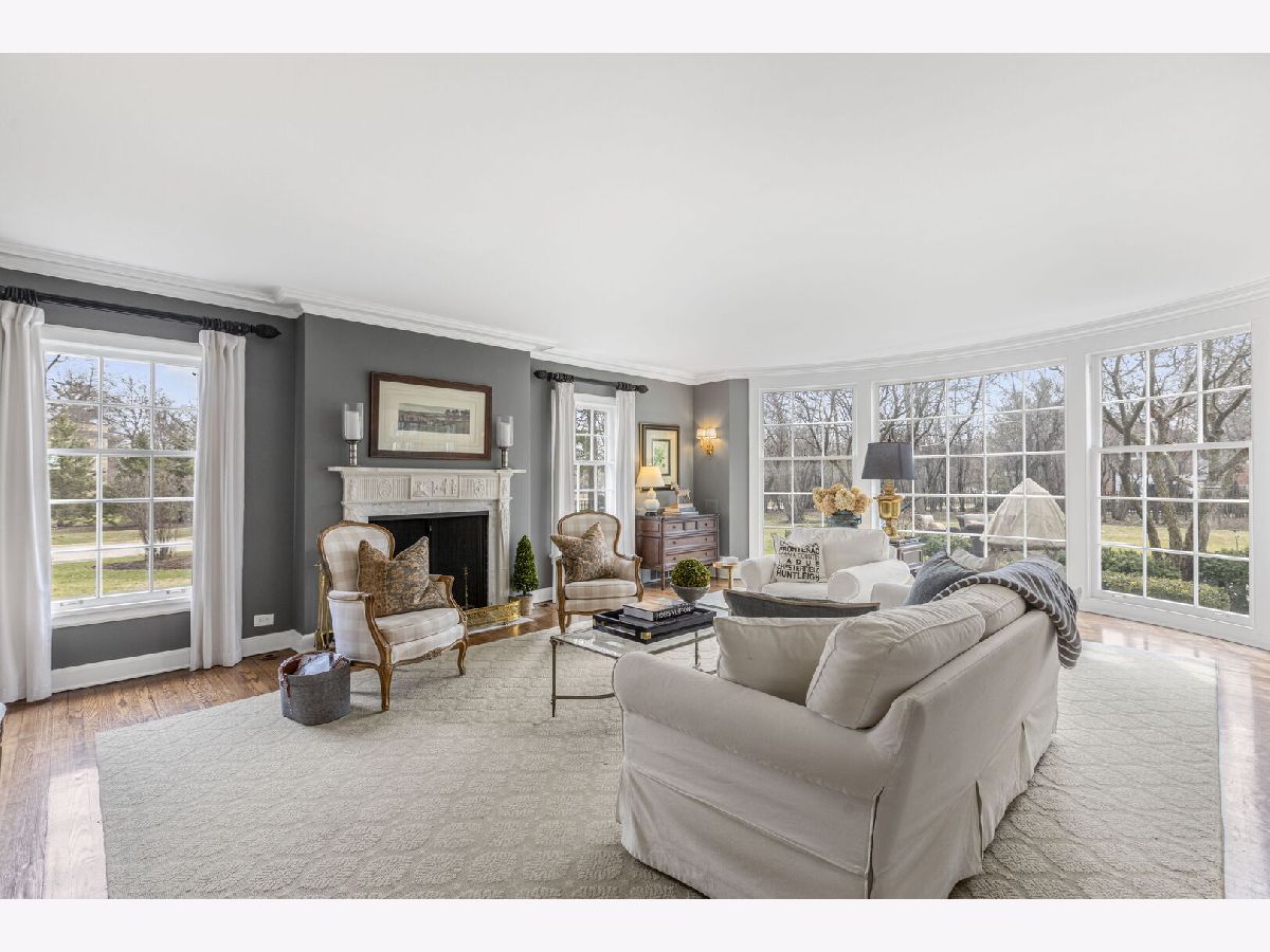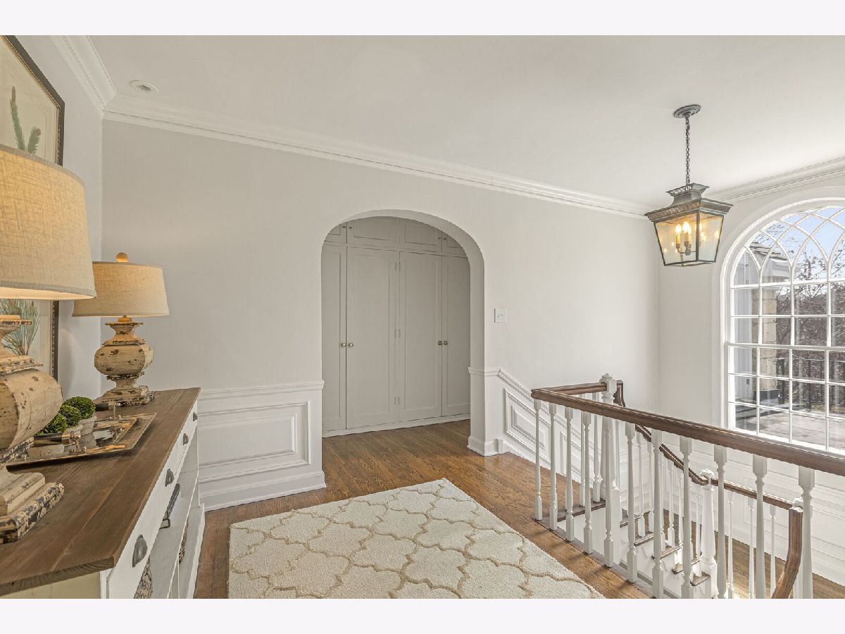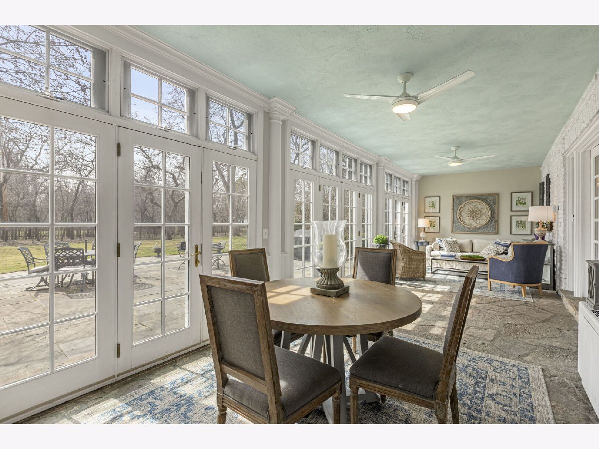 Designed by the highly regarded architect Stanley Anderson and built in 1930, this classic Colonial Revival estate in North King Muir represents one of Lake Forest's finest examples of preserved historic architecture. Restored to its original splendor and meticulously reimagined for contemporary living, the residence spans over 5,200 square feet with multiple light-filled spaces for entertaining within its historic proportions. A circular drive and Lannon stone and brick facade offer a commanding presence before one even reaches the front door. Inside, impeccable bones and vintage character throughout: hardwood floors, mouldings, wainscotting, arched doorways, original re-plated brass hardware. The main level flows beautifully from the grand foyer to a front office/den, sunny living room, and spacious dining room. Extending from the living and dining rooms, the heated sunroom creates a year-round connection to the grounds and opens to the bluestone patio just beyond. The classically inspired Christopher Peacock kitchen is the heart of the home. Commercial-grade appliances, abundant cabinetry, marble, granite, and teak countertops, two sinks and a generous center island anchor the space. A thoughtfully placed pantry with barn door rests off the kitchen, as does a breakfast room which opens directly into the family room via a charming cased pass-through bar. A bonus room with an ideal first-floor guest bedroom or office, large sunny laundry room, and full bathroom complete the first floor. Upstairs, five generously sized bedrooms each enjoy their own ensuite bath featuring vintage-style tile and traditional details. One bedroom opens onto a deck overlooking the yard. The primary suite functions as its own private wing: a boutique-worthy walk-in closet and dressing area, a fully remodeled spa-inspired bath, a private staircase to the kitchen below and a view overlooking the backyard. Outside, an expansive bluestone patio opens to a professionally landscaped lawn framed by a wooded setting and wrought iron fence, creating a true private sanctuary on nearly an acre. A two-car garage, full basement, and a long list of upgrades complete this extraordinary property.