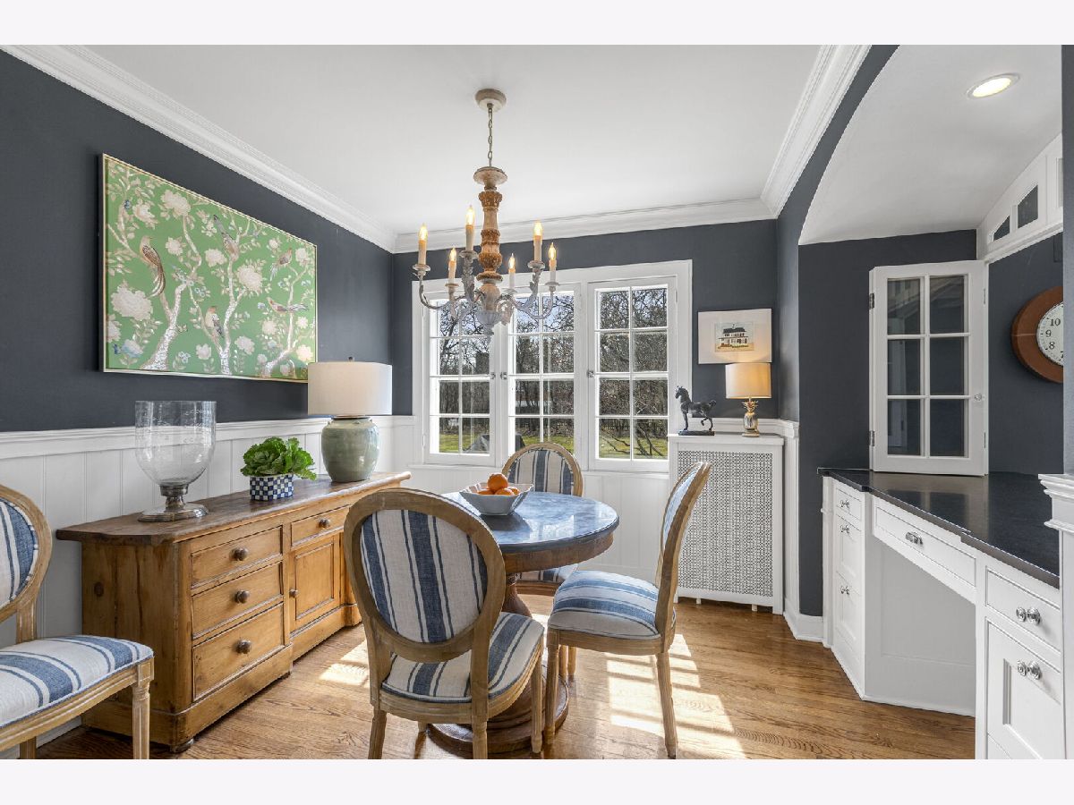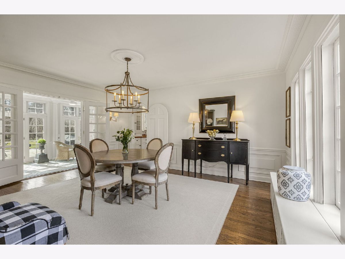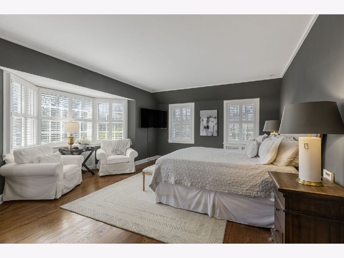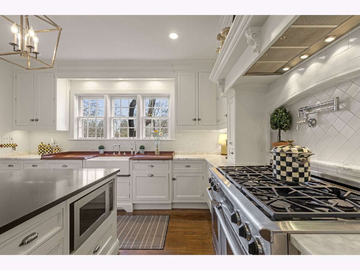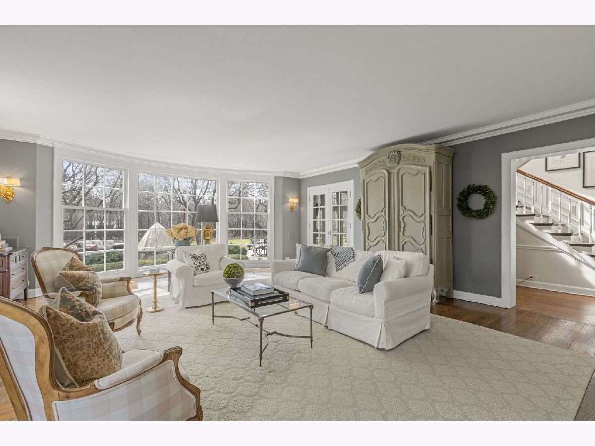 Designed by the highly regarded architect Stanley Anderson and built in 1930, this classic Colonial Revival estate in North King Muir represents one of Lake Forest's finest examples of preserved historic architecture. Restored to its original splendor and meticulously reimagined for contemporary living, the residence spans over 5,200 square feet with multiple light-filled spaces for entertaining within its historic proportions. A circular drive and Lannon stone and brick facade offer a commanding presence before one even reaches the front door. Inside, impeccable bones and vintage character throughout: hardwood floors, mouldings, wainscotting, arched doorways, original re-plated brass hardware. The main level flows beautifully from the grand foyer to a front office/den, sunny living room, and spacious dining room. Extending from the living and dining rooms, the heated sunroom creates a year-round connection to the grounds and opens to the bluestone patio just beyond. The classically inspired Christopher Peacock kitchen is the heart of the home. Commercial-grade appliances, abundant cabinetry, marble, granite, and teak countertops, two sinks and a generous center island anchor the space. A thoughtfully placed pantry with barn door rests off the kitchen, as does a breakfast room which opens directly into the family room via a charming cased pass-through bar. A bonus room with an ideal first-floor guest bedroom or office, large sunny laundry room, and full bathroom complete the first floor. Upstairs, five generously sized bedrooms each enjoy their own ensuite bath featuring vintage-style tile and traditional details. One bedroom opens onto a deck overlooking the yard. The primary suite functions as its own private wing: a boutique-worthy walk-in closet and dressing area, a fully remodeled spa-inspired bath, a private staircase to the kitchen below and a view overlooking the backyard. Outside, an expansive bluestone patio opens to a professionally landscaped lawn framed by a wooded setting and wrought iron fence, creating a true private sanctuary on nearly an acre. A two-car garage, full basement, and a long list of upgrades complete this extraordinary property.