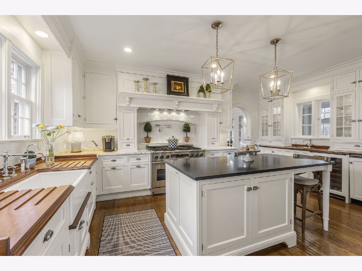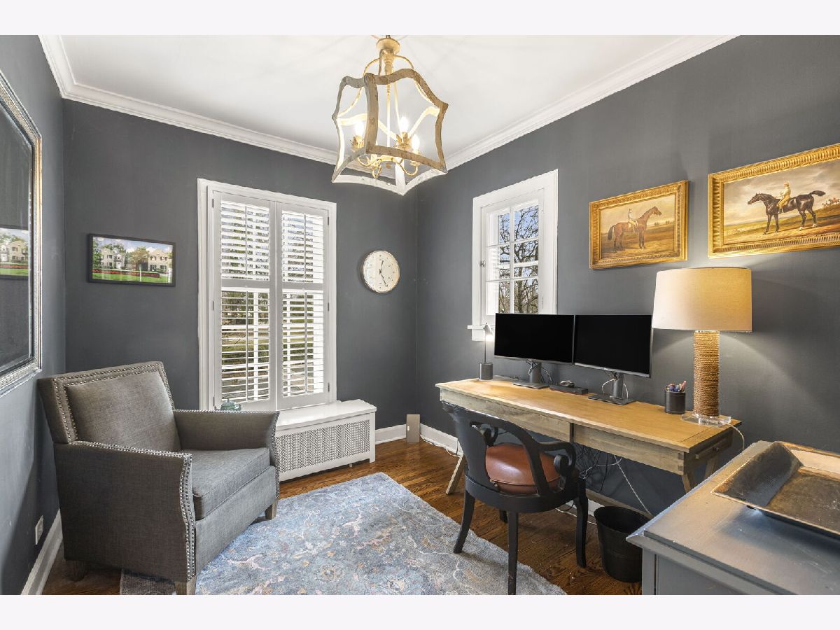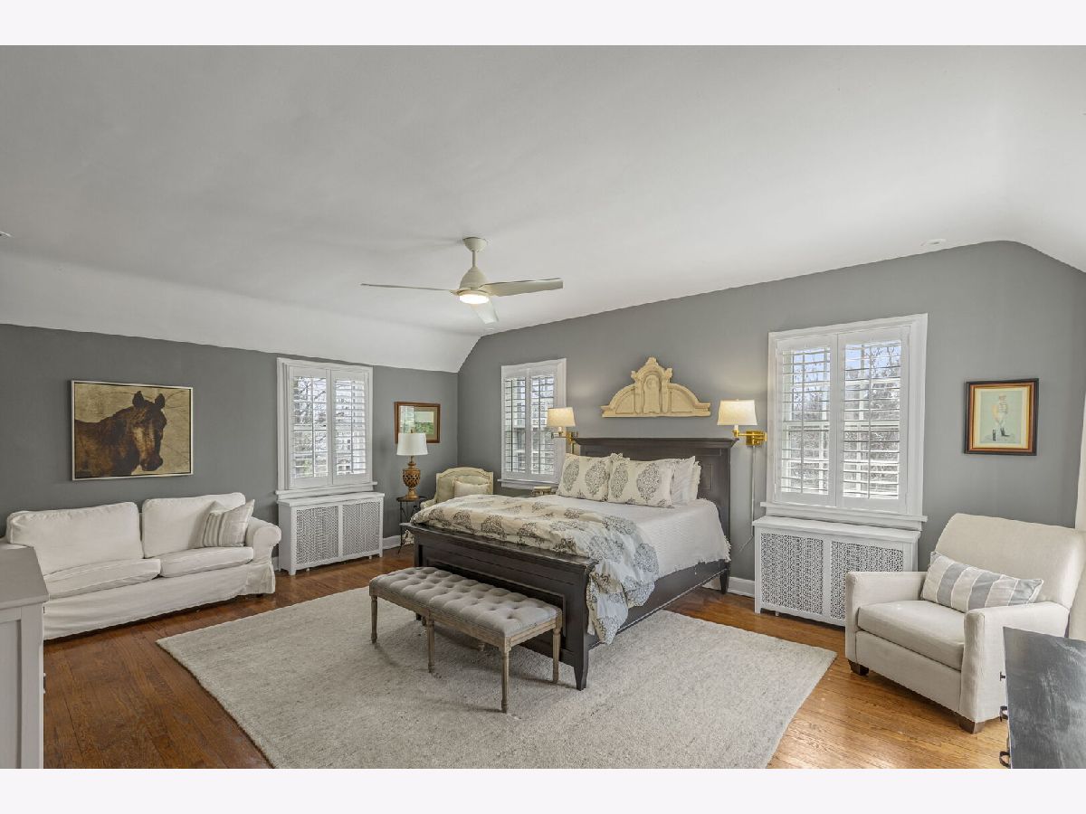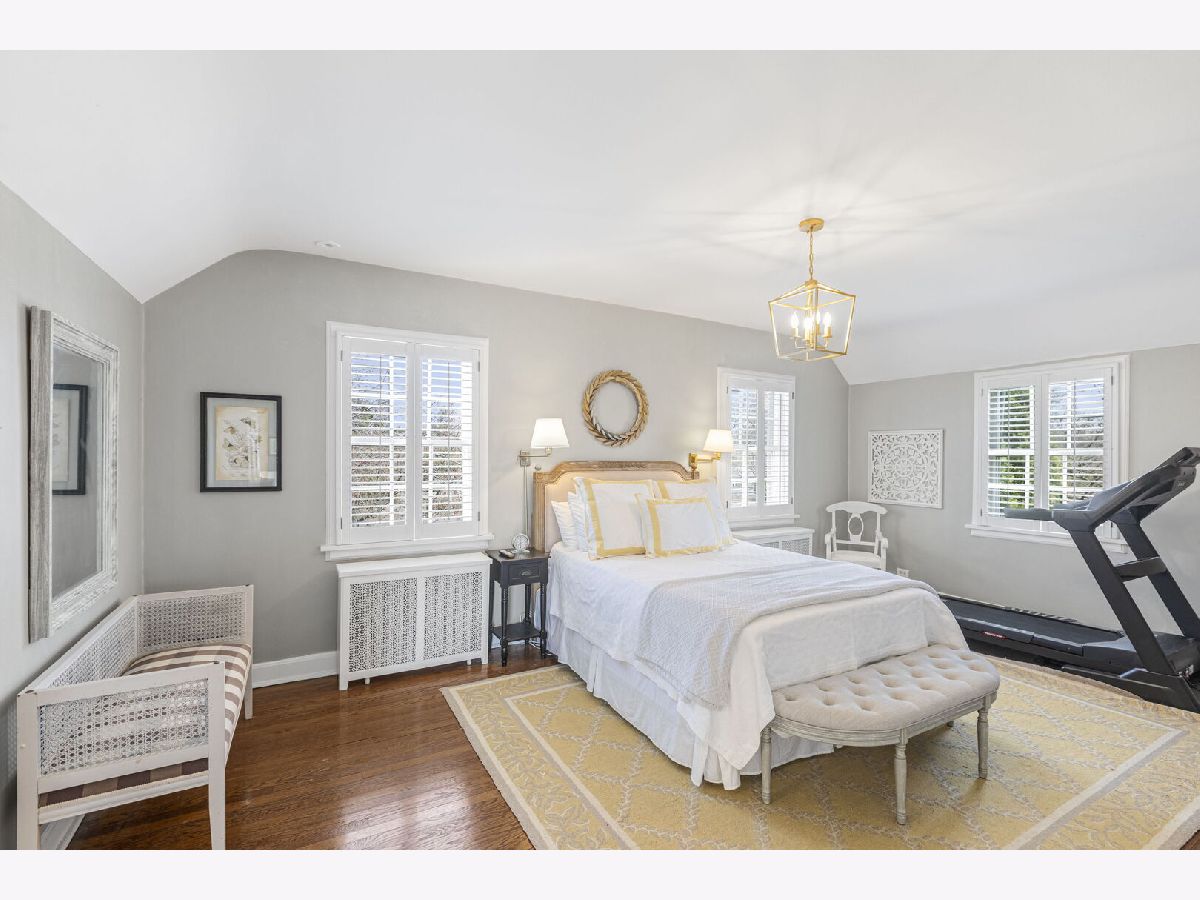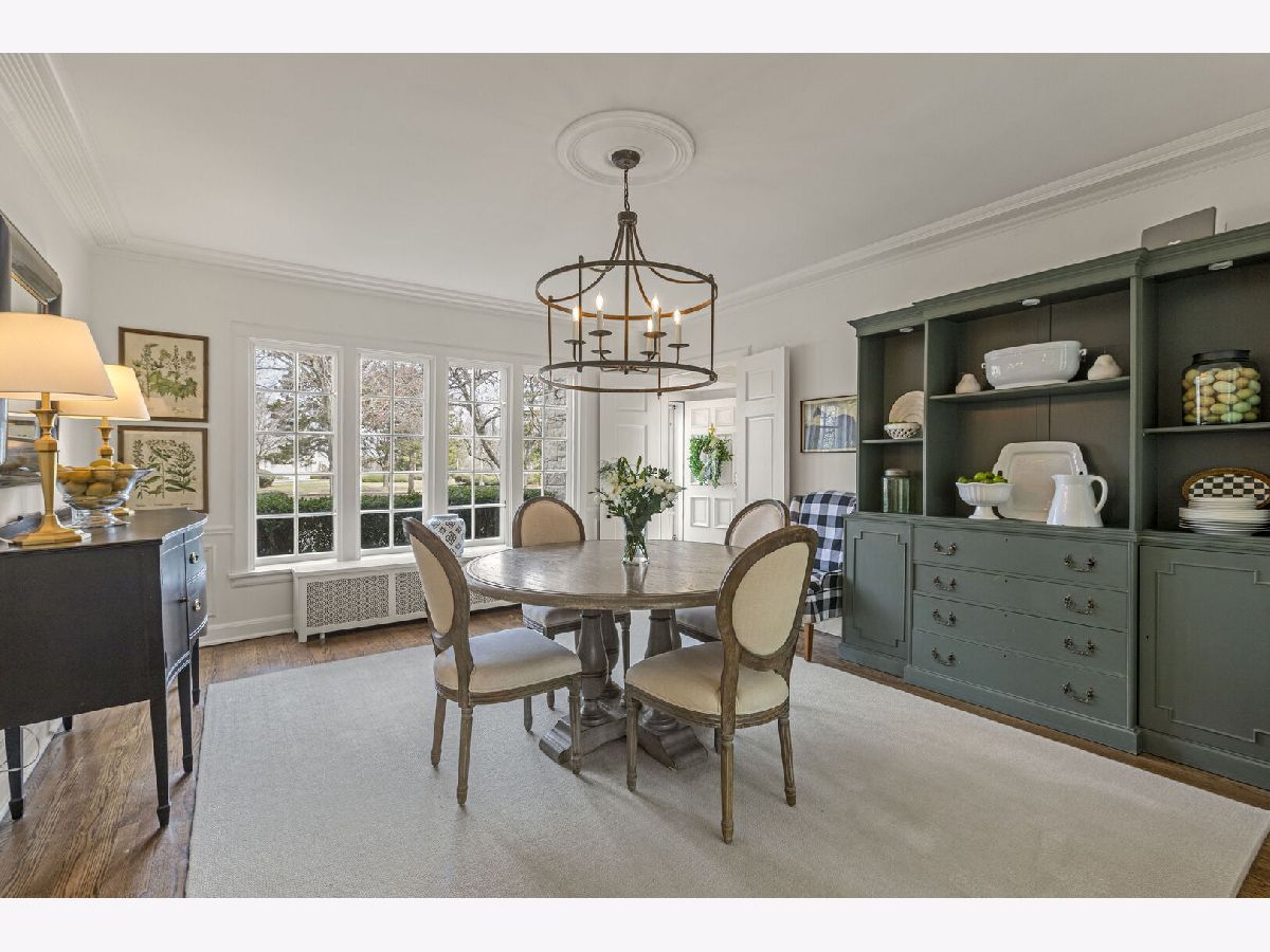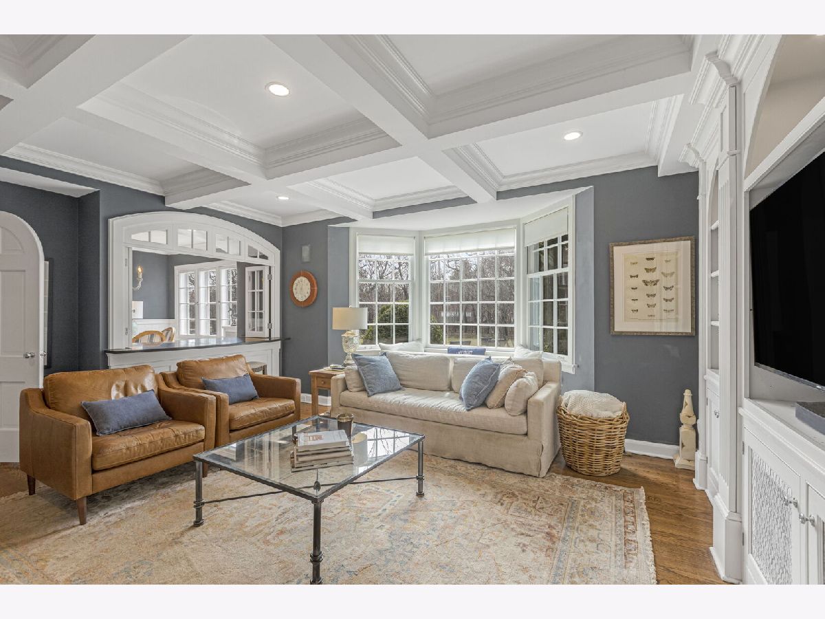 Designed by the highly regarded architect Stanley Anderson and built in 1930, this classic Colonial Revival estate in North King Muir represents one of Lake Forest's finest examples of preserved historic architecture. Restored to its original splendor and meticulously reimagined for contemporary living, the residence spans over 5,200 square feet with multiple light-filled spaces for entertaining within its historic proportions. A circular drive and Lannon stone and brick facade offer a commanding presence before one even reaches the front door. Inside, impeccable bones and vintage character throughout: hardwood floors, mouldings, wainscotting, arched doorways, original re-plated brass hardware. The main level flows beautifully from the grand foyer to a front office/den, sunny living room, and spacious dining room. Extending from the living and dining rooms, the heated sunroom creates a year-round connection to the grounds and opens to the bluestone patio just beyond. The classically inspired Christopher Peacock kitchen is the heart of the home. Commercial-grade appliances, abundant cabinetry, marble, granite, and teak countertops, two sinks and a generous center island anchor the space. A thoughtfully placed pantry with barn door rests off the kitchen, as does a breakfast room which opens directly into the family room via a charming cased pass-through bar. A bonus room with an ideal first-floor guest bedroom or office, large sunny laundry room, and full bathroom complete the first floor. Upstairs, five generously sized bedrooms each enjoy their own ensuite bath featuring vintage-style tile and traditional details. One bedroom opens onto a deck overlooking the yard. The primary suite functions as its own private wing: a boutique-worthy walk-in closet and dressing area, a fully remodeled spa-inspired bath, a private staircase to the kitchen below and a view overlooking the backyard. Outside, an expansive bluestone patio opens to a professionally landscaped lawn framed by a wooded setting and wrought iron fence, creating a true private sanctuary on nearly an acre. A two-car garage, full basement, and a long list of upgrades complete this extraordinary property.
