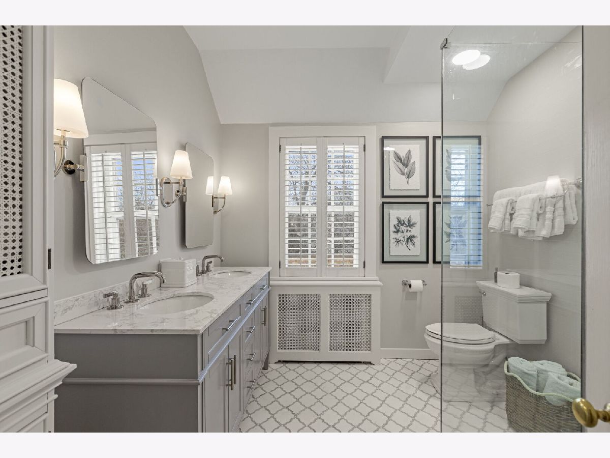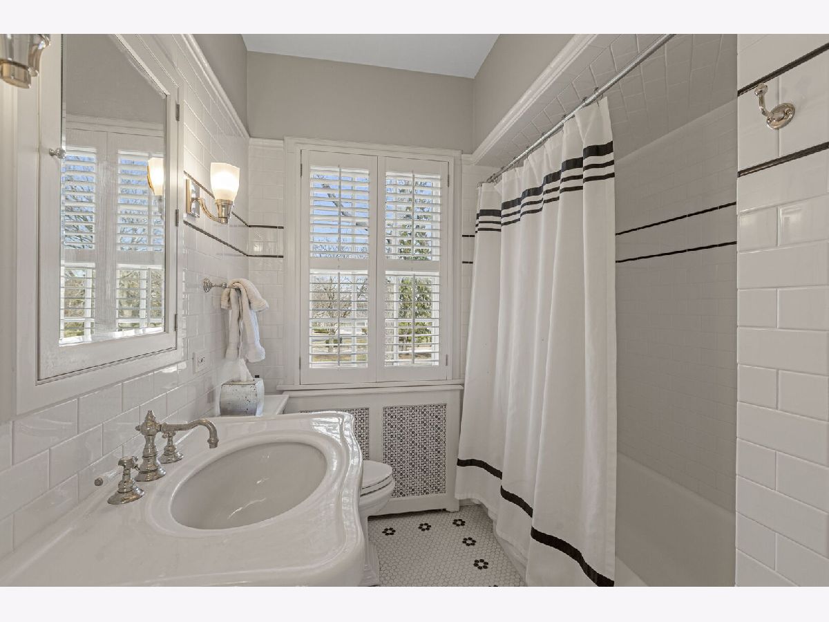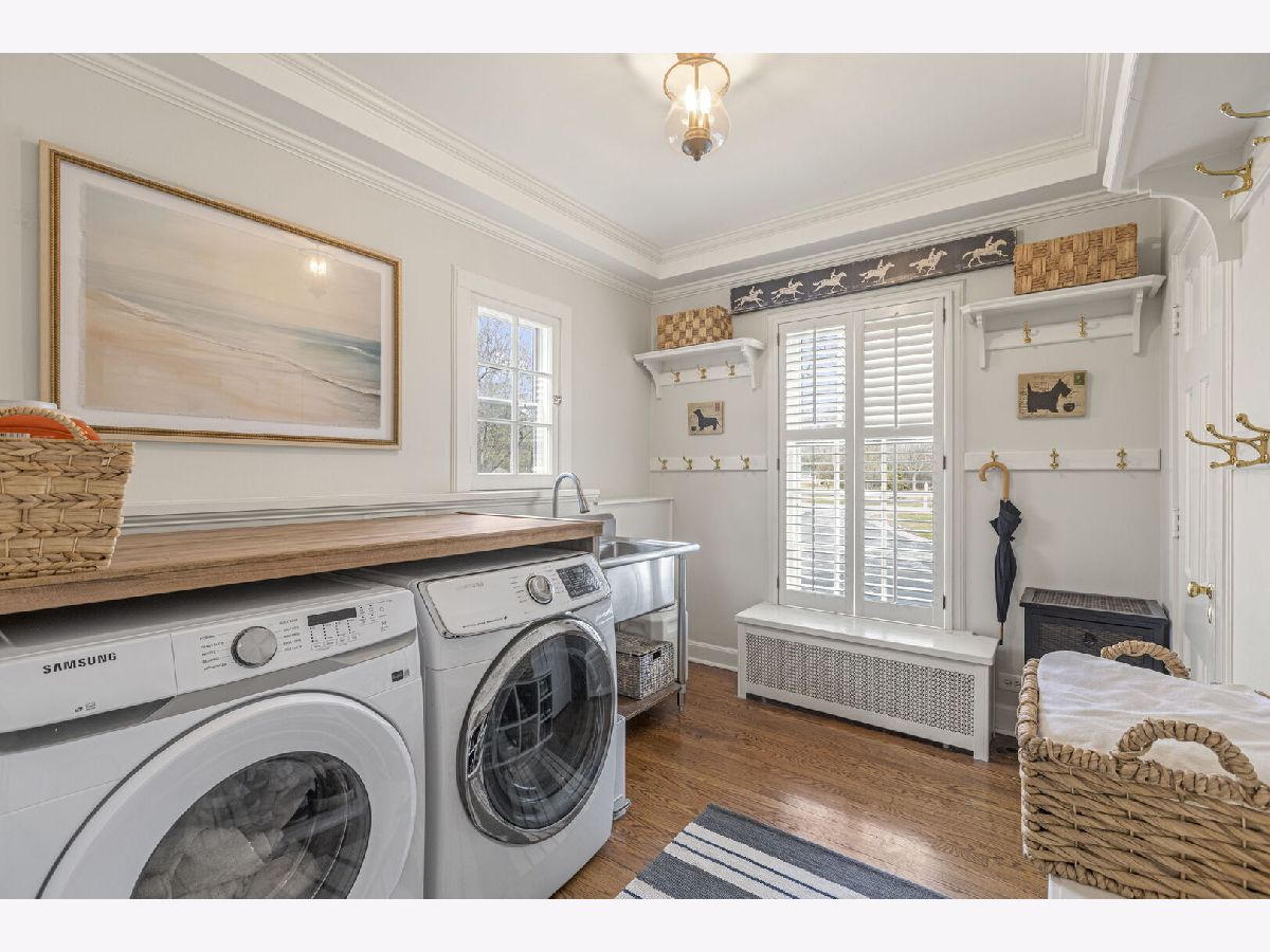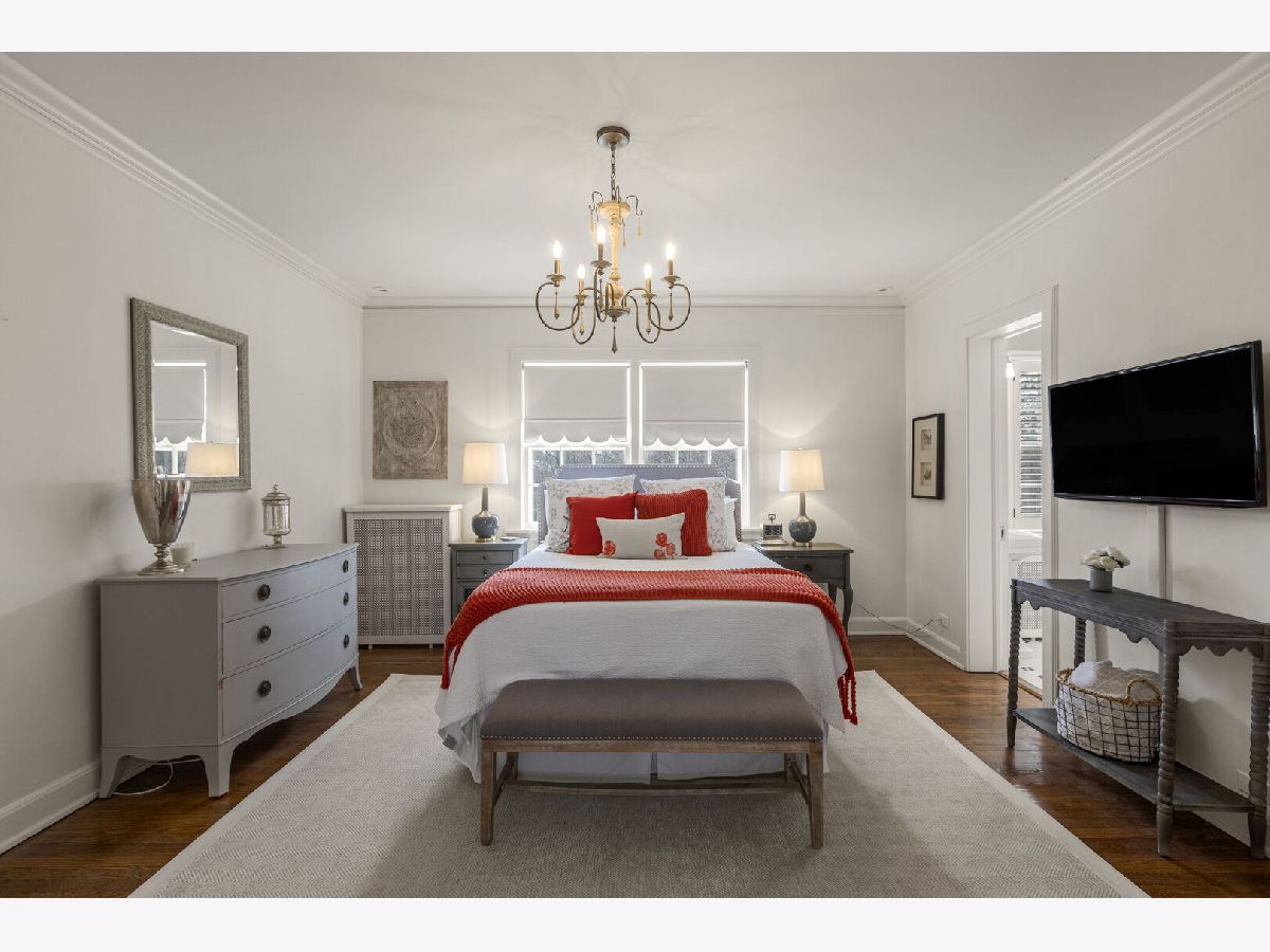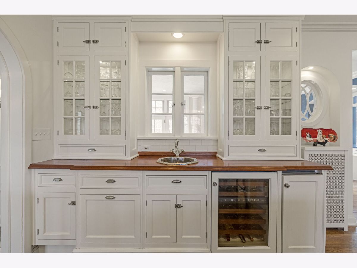 Designed by the highly regarded architect Stanley Anderson and built in 1930, this classic Colonial Revival estate in North King Muir represents one of Lake Forest's finest examples of preserved historic architecture. Restored to its original splendor and meticulously reimagined for contemporary living, the residence spans over 5,200 square feet with multiple light-filled spaces for entertaining within its historic proportions. A circular drive and Lannon stone and brick facade offer a commanding presence before one even reaches the front door. Inside, impeccable bones and vintage character throughout: hardwood floors, mouldings, wainscotting, arched doorways, original re-plated brass hardware. The main level flows beautifully from the grand foyer to a front office/den, sunny living room, and spacious dining room. Extending from the living and dining rooms, the heated sunroom creates a year-round connection to the grounds and opens to the bluestone patio just beyond. The classically inspired Christopher Peacock kitchen is the heart of the home. Commercial-grade appliances, abundant cabinetry, marble, granite, and teak countertops, two sinks and a generous center island anchor the space. A thoughtfully placed pantry with barn door rests off the kitchen, as does a breakfast room which opens directly into the family room via a charming cased pass-through bar. A bonus room with an ideal first-floor guest bedroom or office, large sunny laundry room, and full bathroom complete the first floor. Upstairs, five generously sized bedrooms each enjoy their own ensuite bath featuring vintage-style tile and traditional details. One bedroom opens onto a deck overlooking the yard. The primary suite functions as its own private wing: a boutique-worthy walk-in closet and dressing area, a fully remodeled spa-inspired bath, a private staircase to the kitchen below and a view overlooking the backyard. Outside, an expansive bluestone patio opens to a professionally landscaped lawn framed by a wooded setting and wrought iron fence, creating a true private sanctuary on nearly an acre. A two-car garage, full basement, and a long list of upgrades complete this extraordinary property.