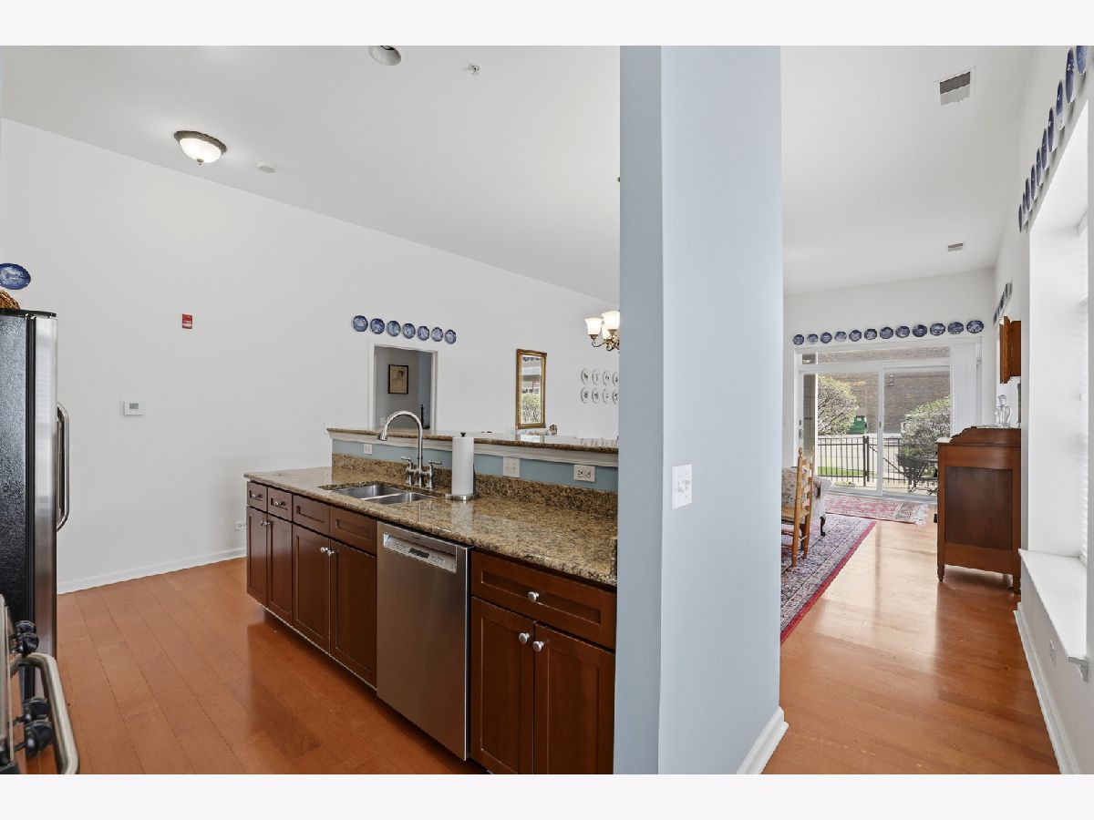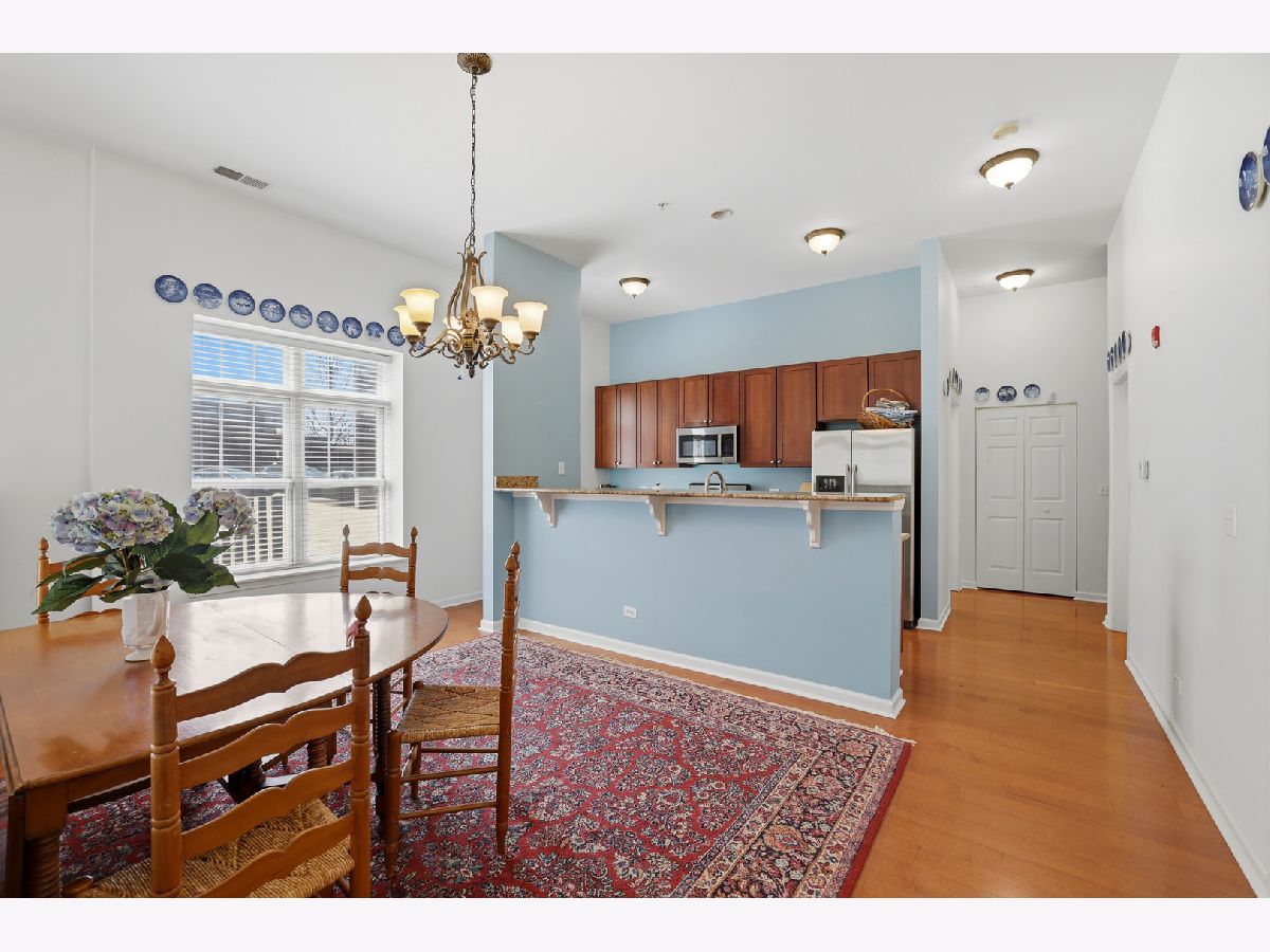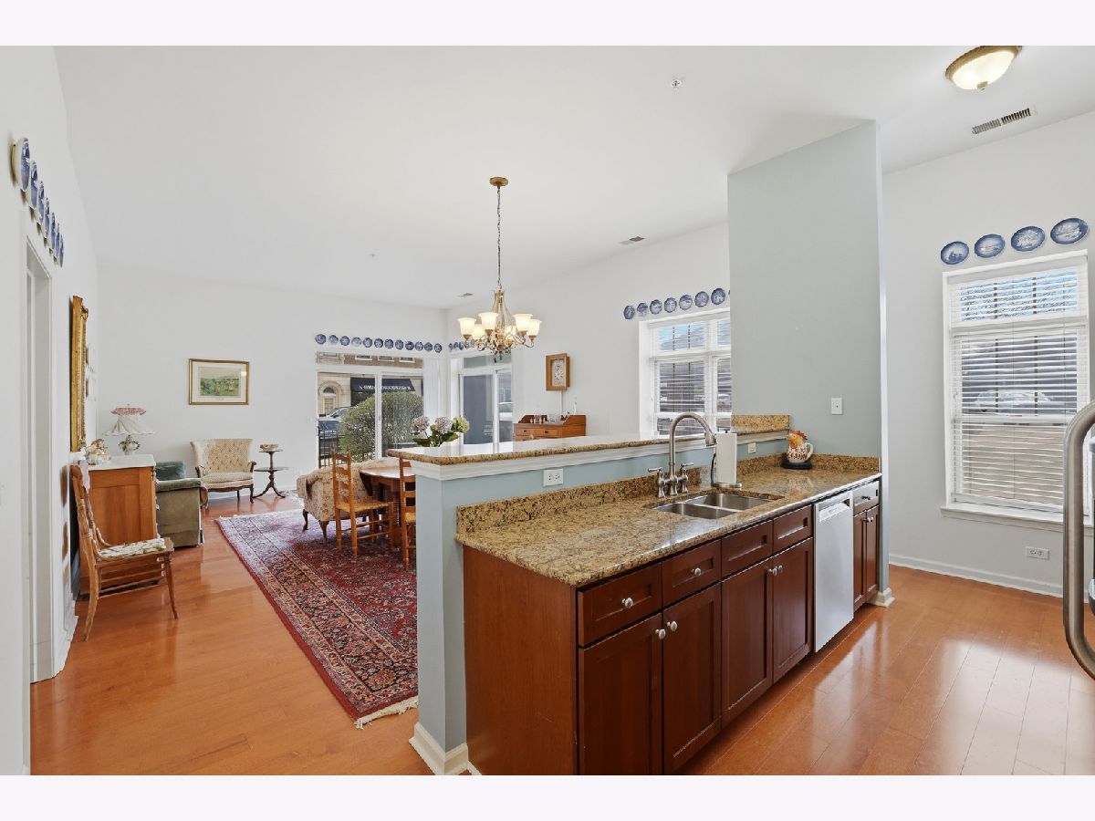 Your wait is over, Largest Corner Main Floor Unit (2 Bed + Den & 2 Bath) model, 1,725 SqFt in the heart of Downers Grove! Enjoy pleasant Eastern & amazing Southern views from the covered, corner wrap-around twin patio doors of all vibrant Downtown DG has to offer. The main floor level at Station Crossing Condominium offers noticeably taller 11' ceiling heights creating a much more expansive feel to this wonderfully open floor plan. Spacious room sizes throughout, including grand-size Great room, and an all purpose (Den or formal Dining room) having quality wood laminate flooring. The updated Kitchen has huge seating island, solid granite surfaces, rich Cherry cabinetry, stainless/steel appliances and quality light fixtures & finishes. Newly painted interior has neutral color scheme. Primary Bedroom has centered ceiling fan, ensuite bath with dual bowl vanity, large walk-in Shower and WIC! 2nd Bedroom is generous in size and closet space with lovely natural light. In-unit Laundry with full size W/D. Underground heated Garage space #52, plus convenient storage area on the same main floor as the condo. Well run Association, with no special assessments, newer roof, exterior tuck-pointing, balconies, carpet in hallways have all been done! Best Location-with boutique shopping, fine dining, fun Cafes/Pubs, historic Tivoli Theatre & Bowling Alley, summer Farmers Market, Public Library, and the timely Metra Train Station with express train schedule to Chicago, All just a short stroll away from this premier location. Welcome Home!