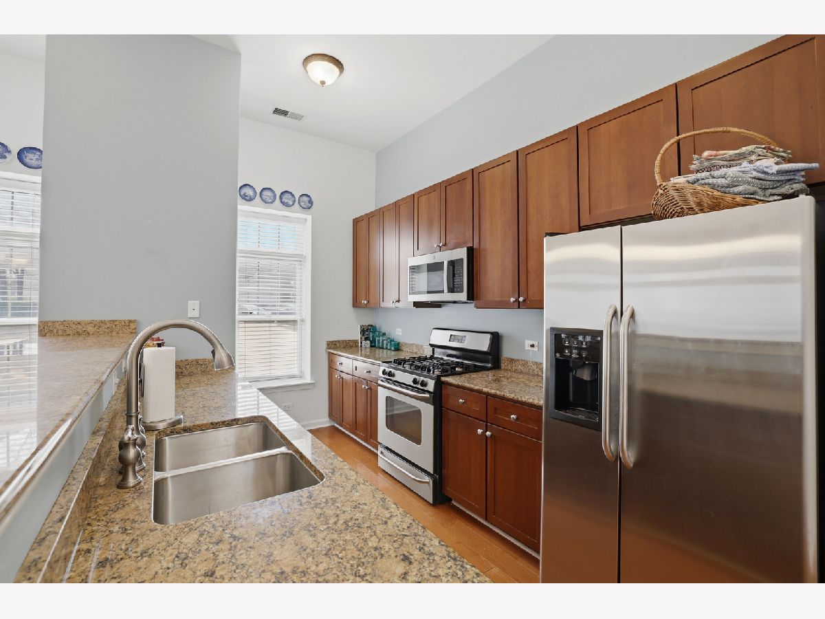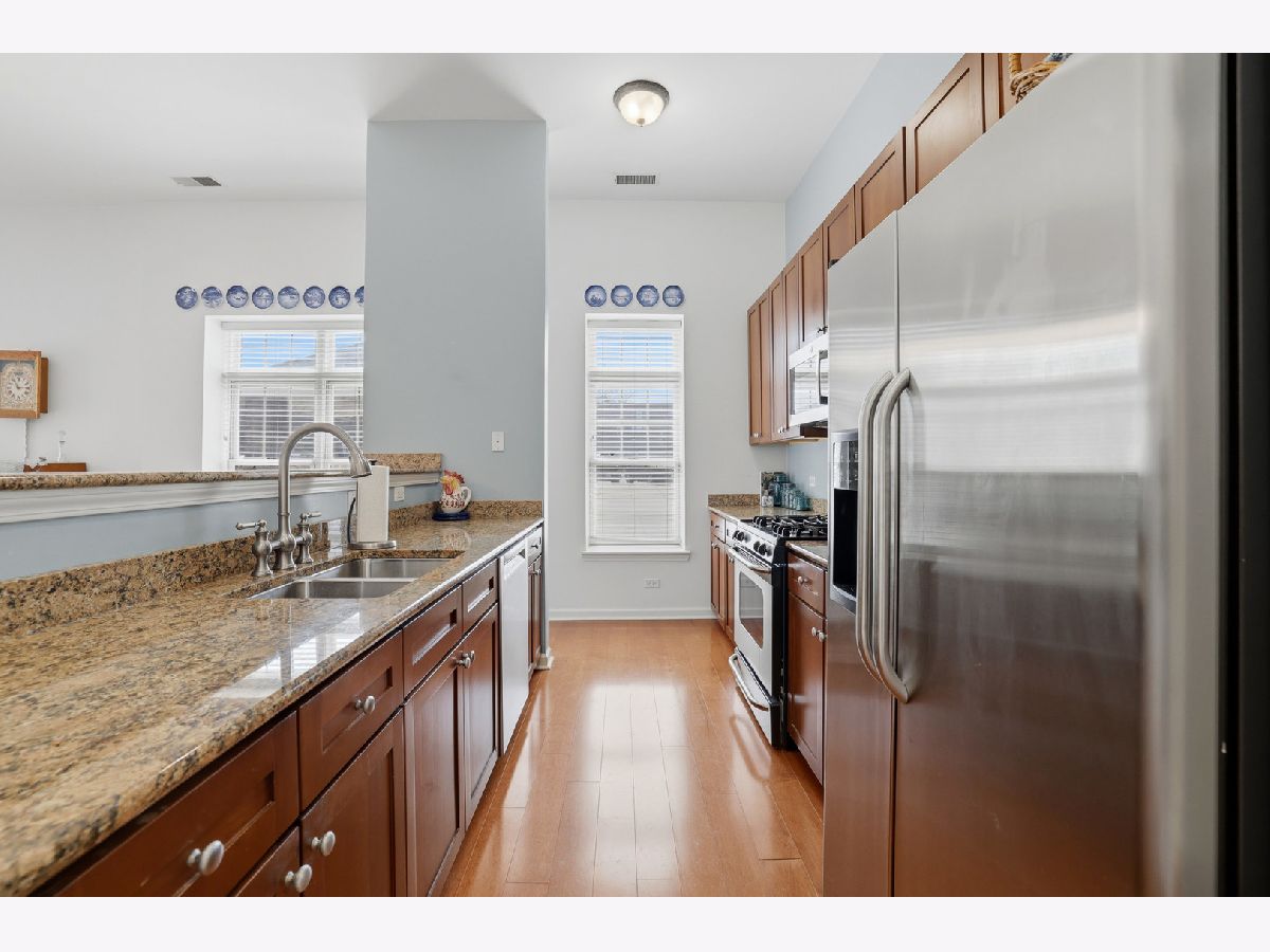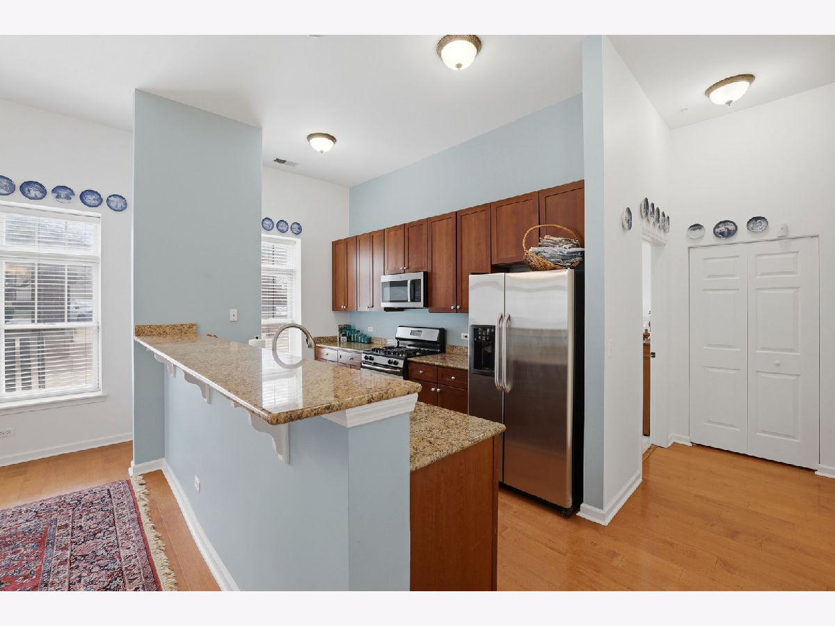 Your wait is over, Largest Corner Main Floor Unit (2 Bed + Den & 2 Bath) model, 1,725 SqFt in the heart of Downers Grove! Enjoy pleasant Eastern & amazing Southern views from the covered, corner wrap-around twin patio doors of all vibrant Downtown DG has to offer. The main floor level at Station Crossing Condominium offers noticeably taller 11' ceiling heights creating a much more expansive feel to this wonderfully open floor plan. Spacious room sizes throughout, including grand-size Great room, and an all purpose (Den or formal Dining room) having quality wood laminate flooring. The updated Kitchen has huge seating island, solid granite surfaces, rich Cherry cabinetry, stainless/steel appliances and quality light fixtures & finishes. Newly painted interior has neutral color scheme. Primary Bedroom has centered ceiling fan, ensuite bath with dual bowl vanity, large walk-in Shower and WIC! 2nd Bedroom is generous in size and closet space with lovely natural light. In-unit Laundry with full size W/D. Underground heated Garage space #52, plus convenient storage area on the same main floor as the condo. Well run Association, with no special assessments, newer roof, exterior tuck-pointing, balconies, carpet in hallways have all been done! Best Location-with boutique shopping, fine dining, fun Cafes/Pubs, historic Tivoli Theatre & Bowling Alley, summer Farmers Market, Public Library, and the timely Metra Train Station with express train schedule to Chicago, All just a short stroll away from this premier location. Welcome Home!