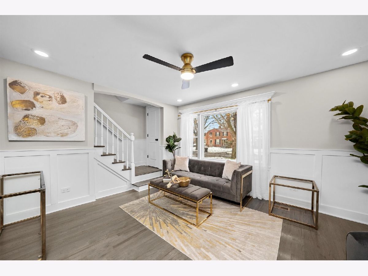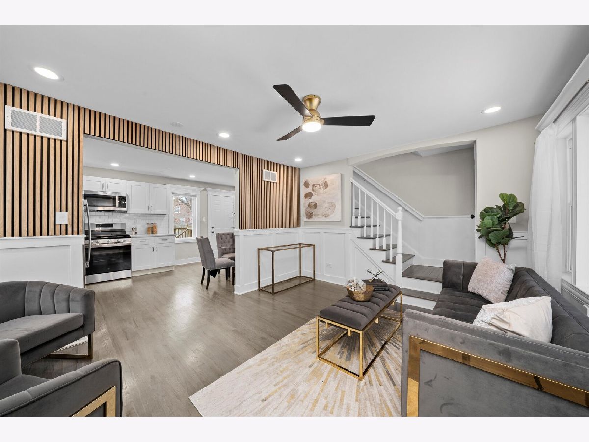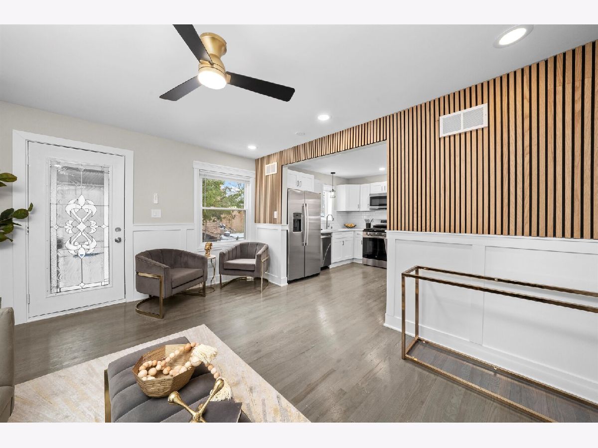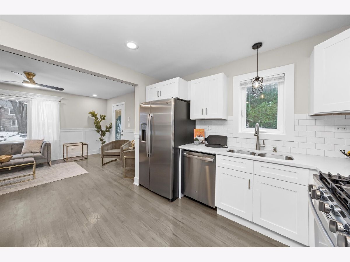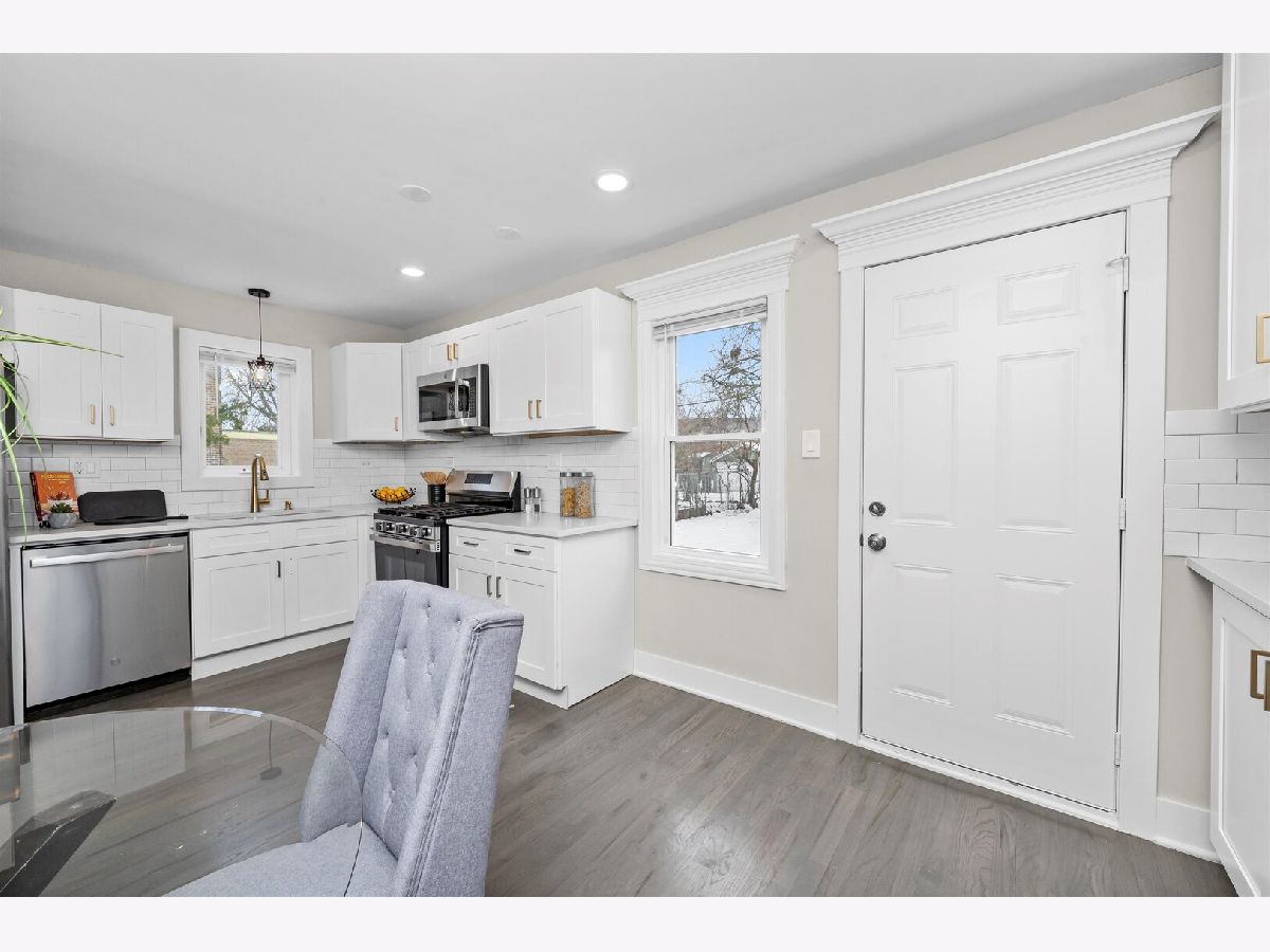 WELCOME TO 9656 CHAPPEL!. Beautiful 2 story rowhouse plus finished basement! WOW! As soon as you enter this beautifully decorated home you will be amazed by the NEW gleaming hardwood floors, big picture window bringing in a ton of natural light, the open space layout combining the living room with the kitchen with modern shaker white cabinetry, quartz countertops and NEW GE stainless steel applianaces. Upstairs you have 2 good size bedrooms and a full bath. The big bedroom with 2 closets. NEW hardwood floors. The bathroom is so nice! with modern tile work and fixtures. The basement will give you a cozy family room and yet another full bath and a finished area for your washer and dryer. New hot water heater. Newly painted in warm neutral colors. Custom window moldings. New lighting fixtures.Recent (aprox 2020) roof and windows/ NEW (2025) concrete driveway and patio in the back. Partially Fenced in yard. Enclosed entryway. Broker owned.