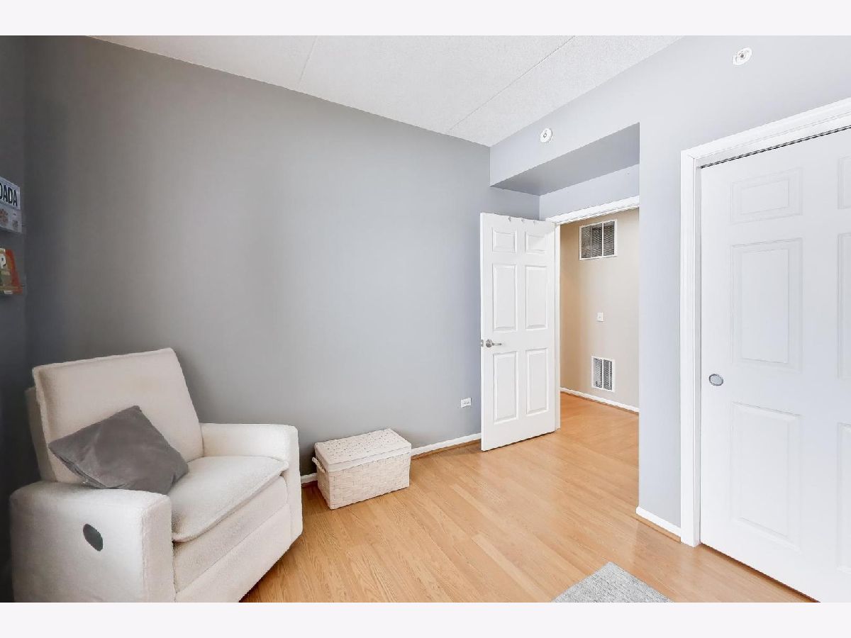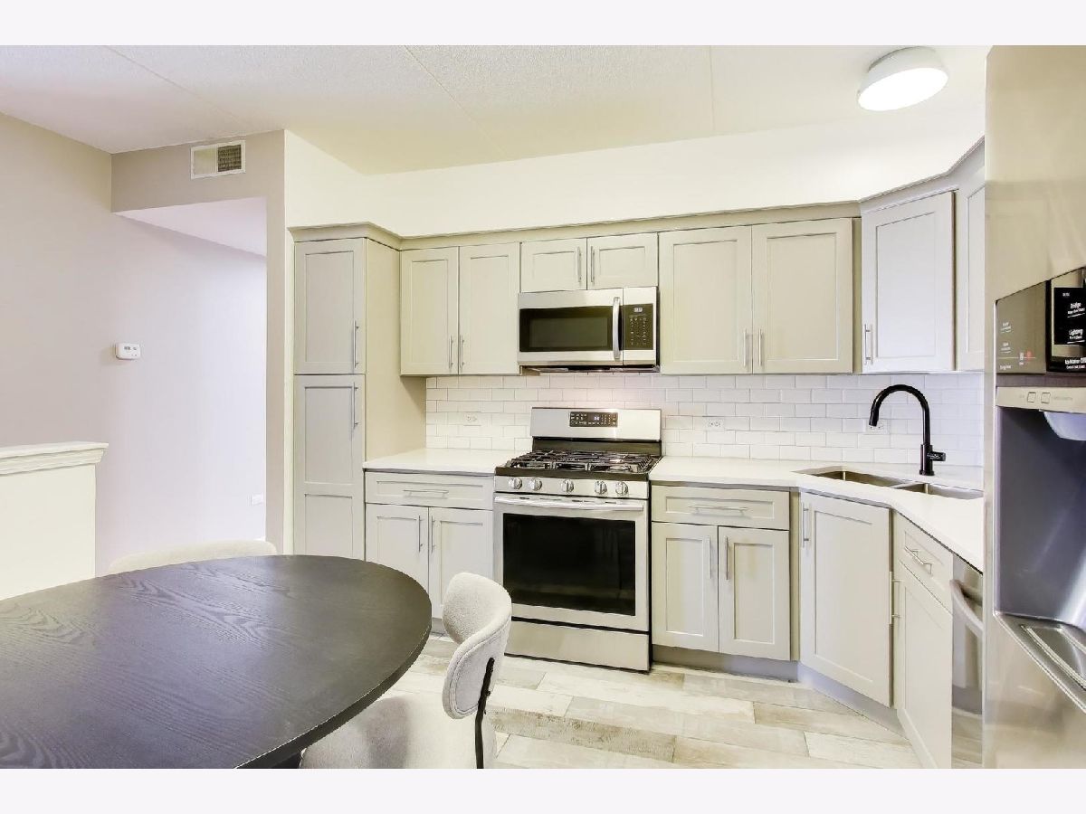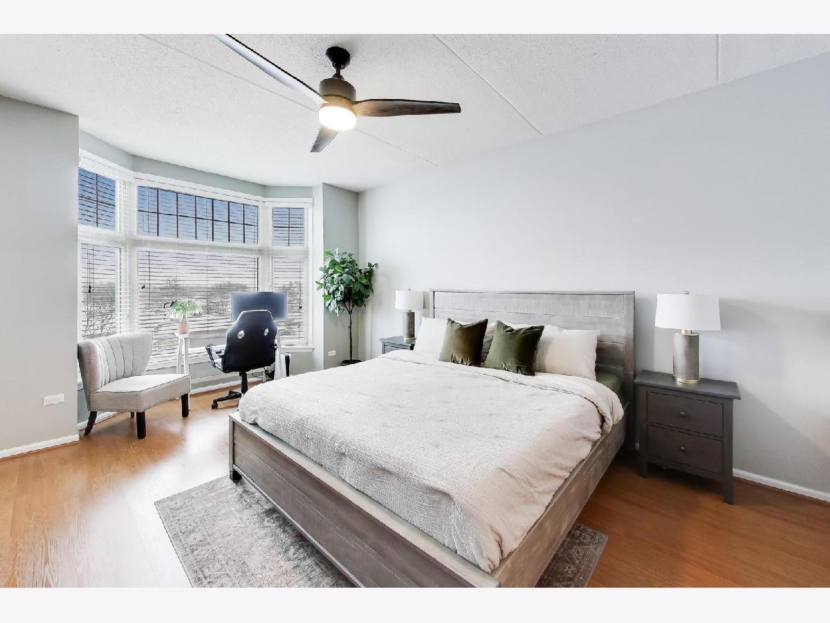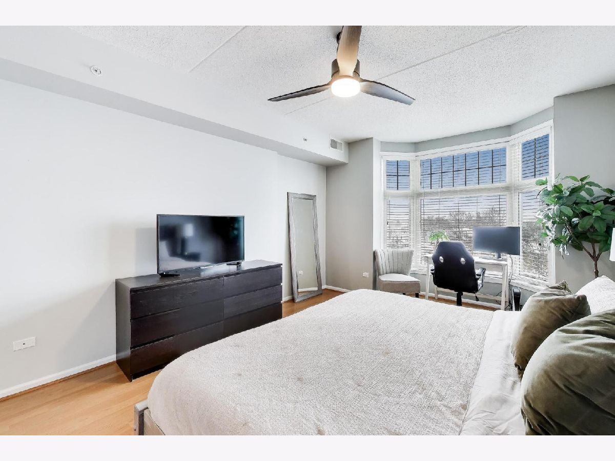 The Crossings awaits your arrival! This 2-bed, 2-bath fifth floor stunner boasts an open layout combined with modern, clean aesthetics. Offering an eat-in kitchen experience with accommodating countertop space for prep/cooking, all SS apps (new DW), deep and wide sink, and stacked shaker cabinetry, this kitchen is ready to go! The adjacent living/dining combo allows for large furniture configurations, connected to the spacious all-concrete balcony, and superb southern sunlight which keeps it light and bright all day long! Roam around in the ensuited primary bedroom's generous floorspace that allows for a king-size bed, wide nightstands, bulky dressers, and a day desk while never feeling crammed. Store all your clothes in its custom built walk-in closet showings off three-walled/floor-to-ceiling compartmentalization - all concealed neatly behind the modern sliding barn door! Wide and bright, the primary bathroom lays out a dual-vanity and a standard sized bathtub and shower stall with easy to clean finishes. Its second bedroom fits a queen bed with ease, also perfect for an office or its present day role as a nursery. The home's second full bathroom boasts more ample space and functionality as well! And the newer full size stackable W/D isn't fits clothes aplenty. And throughout, you'll store all your needs in its tall, deep closets around every corner. Lastly, the home greets you with calming paint vibes which'll readily put you at ease after a long day's work. Hard surfaced, unscratched flooring below and soundproofed concrete ceilings above, this high ceilinged sanctuary of a home is exactly what you've been seeking! Backed by meticulously maintained common areas throughout the building, your unit is tied to its own standard sized parking spot with a truly spacious storage unit (and a second storage unit near the garage elevator!) all within the confines of its heated, indoor garage. There's so much to love in this full brick building conveniently located to the downtown train station, shops, parks, and high school. A rare gem nearby to both the city and airport! See it now while you still can. Bring your enthusiasm! Bring your offer!