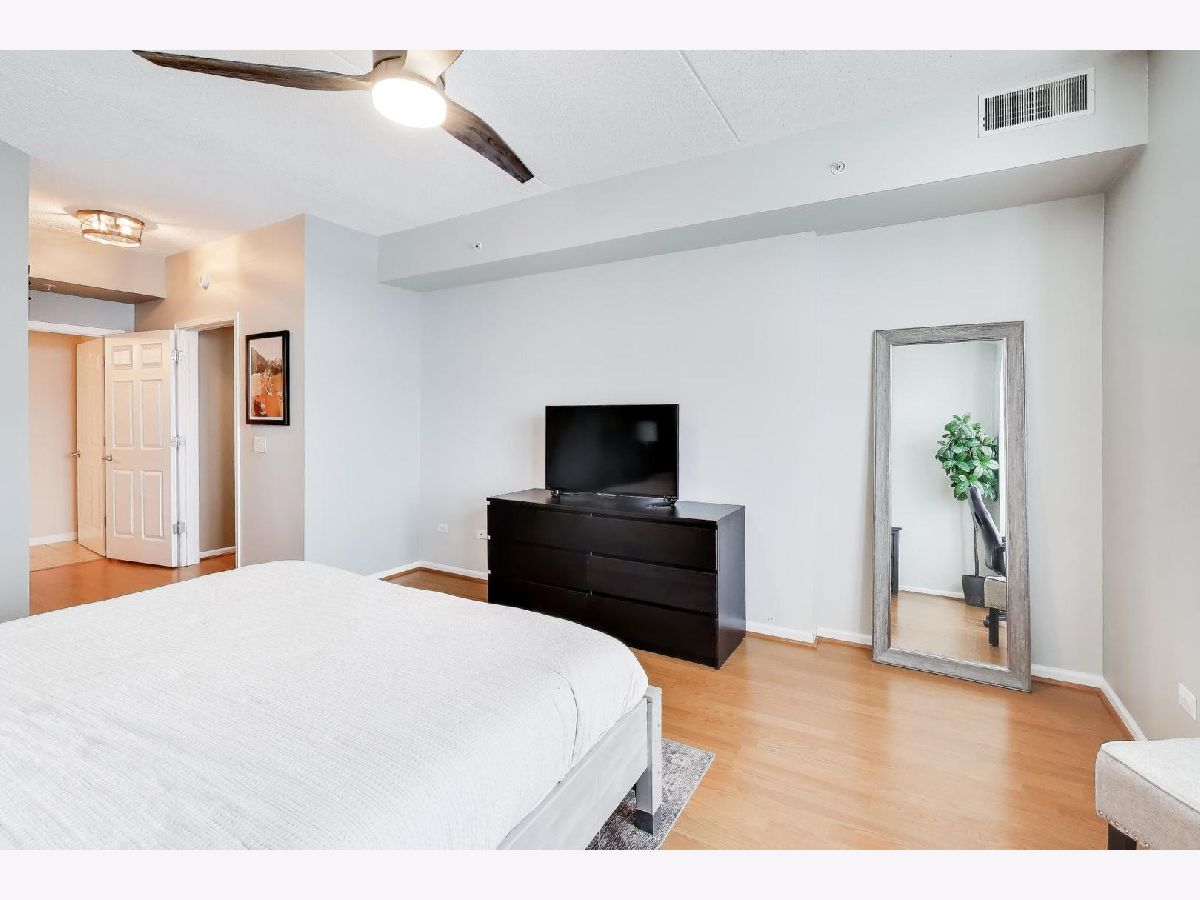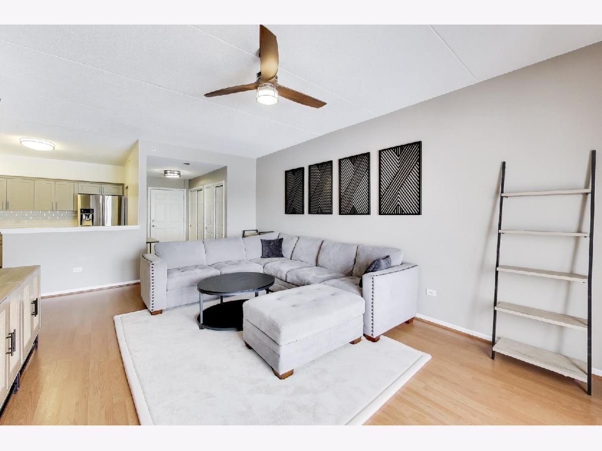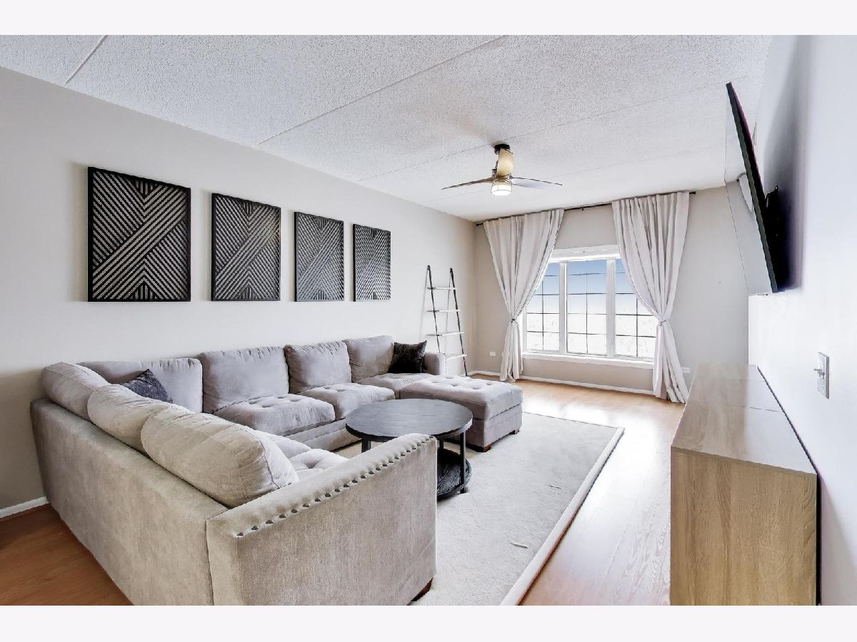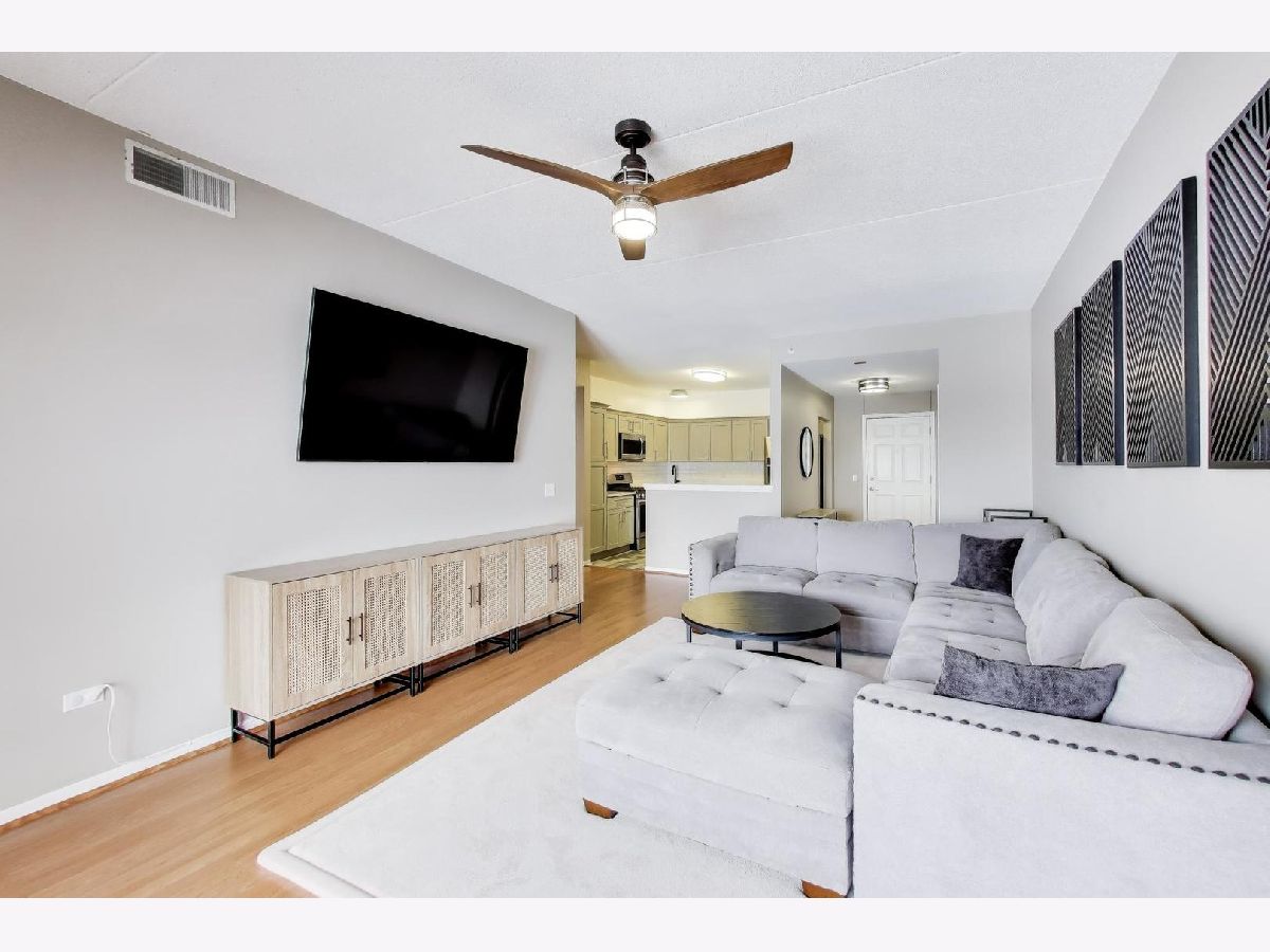 The Crossings awaits your arrival! This 2-bed, 2-bath fifth floor stunner boasts an open layout combined with modern, clean aesthetics. Offering an eat-in kitchen experience with accommodating countertop space for prep/cooking, all SS apps (new DW), deep and wide sink, and stacked shaker cabinetry, this kitchen is ready to go! The adjacent living/dining combo allows for large furniture configurations, connected to the spacious all-concrete balcony, and superb southern sunlight which keeps it light and bright all day long! Roam around in the ensuited primary bedroom's generous floorspace that allows for a king-size bed, wide nightstands, bulky dressers, and a day desk while never feeling crammed. Store all your clothes in its custom built walk-in closet showings off three-walled/floor-to-ceiling compartmentalization - all concealed neatly behind the modern sliding barn door! Wide and bright, the primary bathroom lays out a dual-vanity and a standard sized bathtub and shower stall with easy to clean finishes. Its second bedroom fits a queen bed with ease, also perfect for an office or its present day role as a nursery. The home's second full bathroom boasts more ample space and functionality as well! And the newer full size stackable W/D isn't fits clothes aplenty. And throughout, you'll store all your needs in its tall, deep closets around every corner. Lastly, the home greets you with calming paint vibes which'll readily put you at ease after a long day's work. Hard surfaced, unscratched flooring below and soundproofed concrete ceilings above, this high ceilinged sanctuary of a home is exactly what you've been seeking! Backed by meticulously maintained common areas throughout the building, your unit is tied to its own standard sized parking spot with a truly spacious storage unit (and a second storage unit near the garage elevator!) all within the confines of its heated, indoor garage. There's so much to love in this full brick building conveniently located to the downtown train station, shops, parks, and high school. A rare gem nearby to both the city and airport! See it now while you still can. Bring your enthusiasm! Bring your offer!