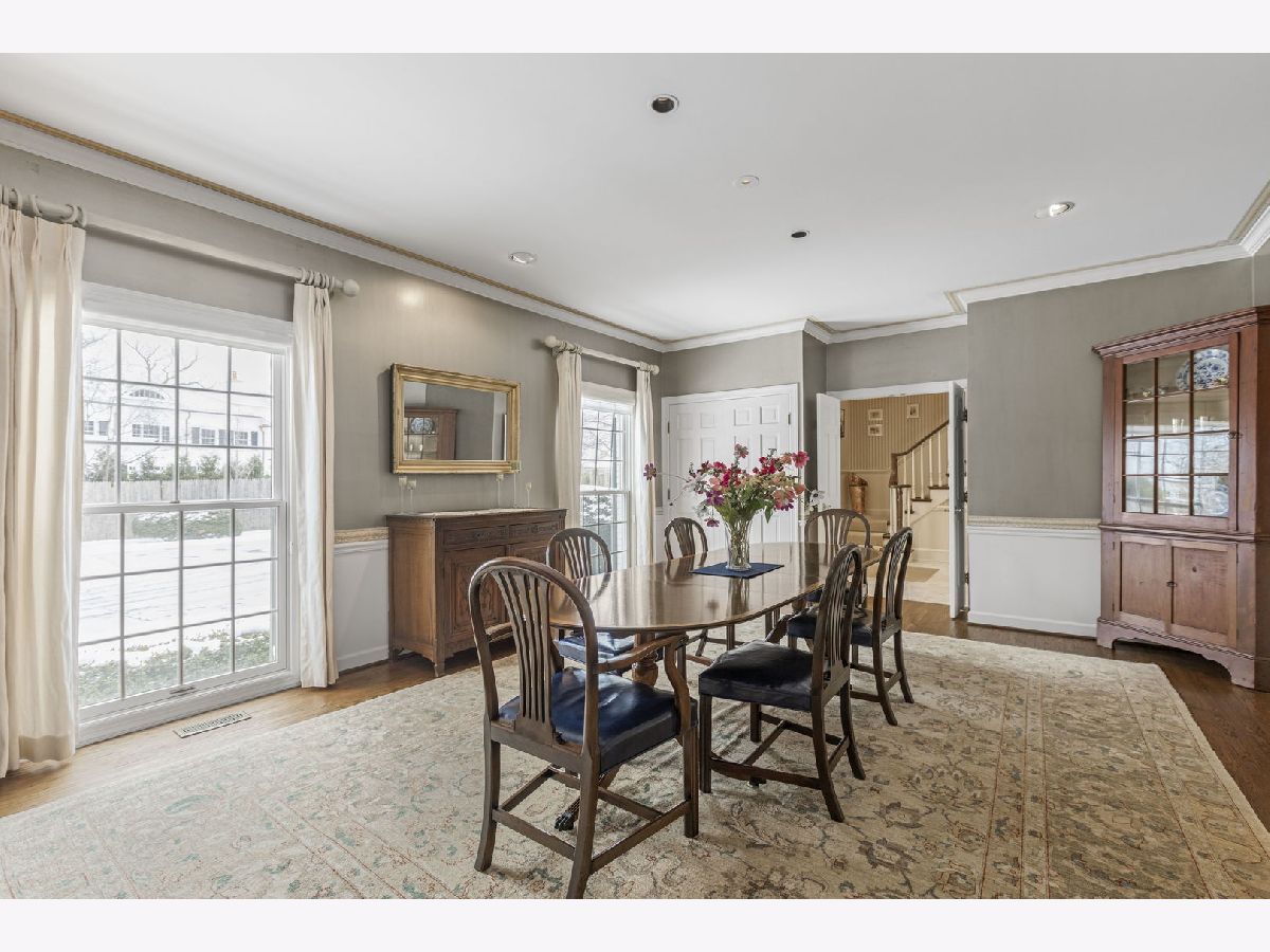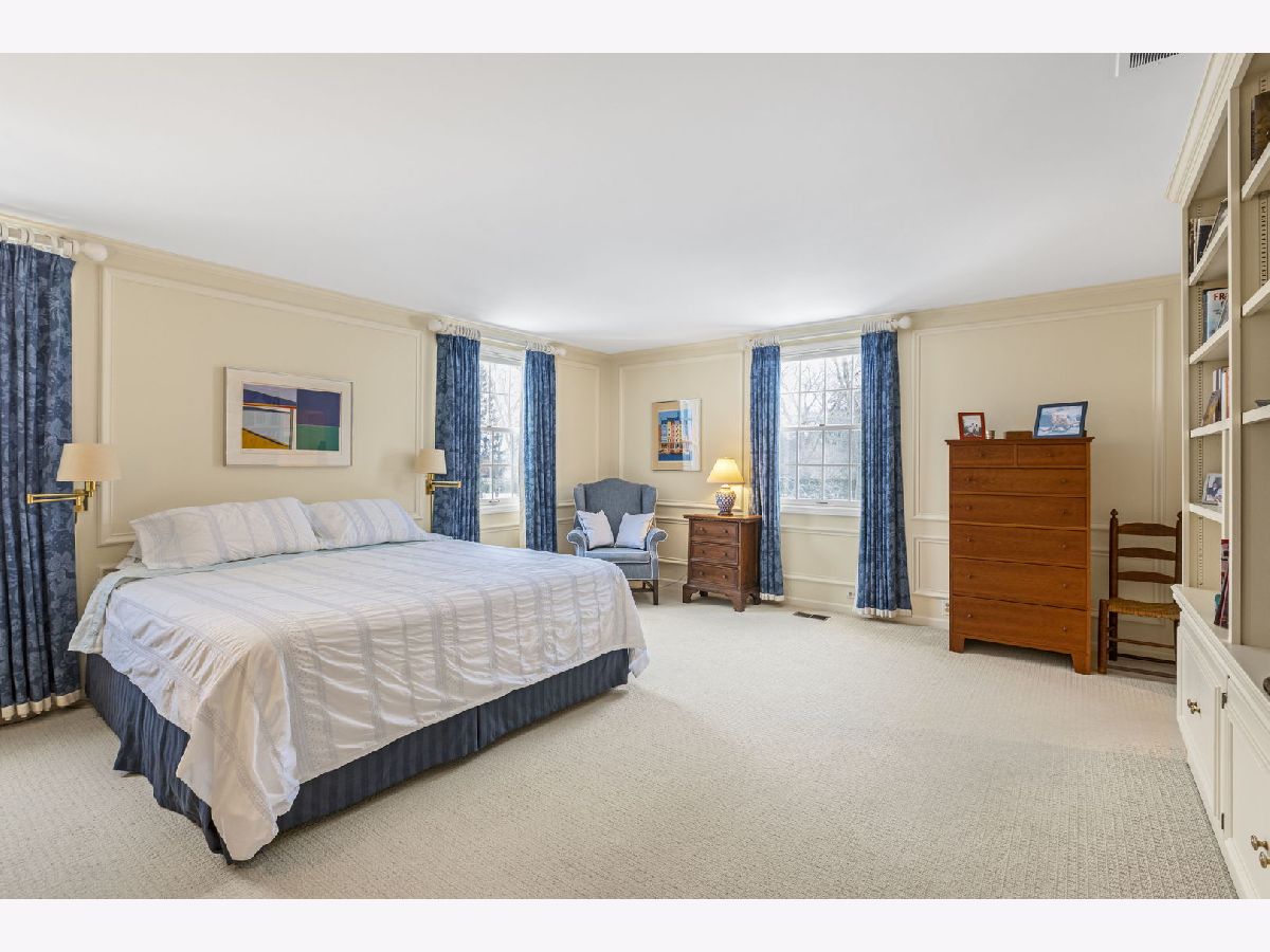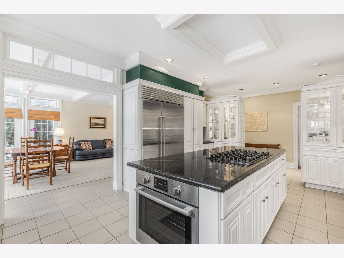 An elegant retreat near the shores of Lake Michigan, this beautifully designed four-bedroom all-brick residence with a separate study offers refined living in a coveted setting. Enjoy seasonal lake views from the second floor. The house offers 5,200 square feet above ground, and is sited on just under one acre. Built in 1980, the home blends classic architecture with generous proportions, highlighted by 9-foot ceilings on the first floor, that create an immediate sense of light and openness. Thoughtfully laid out for both everyday comfort and gracious entertaining, the residence features expansive living areas, well-appointed bedrooms, and a private study that includes a full bathroom. This room could be used as a first-floor bedroom. The classic kitchen includes large island with storage, high-end stainless-steel appliances, two ovens, wine cooler, two glass display/storage cabinets, and granite counters. Built-in bookshelves and cabinets featured in living room, sunroom, study, and main bedroom, provide extra storage and perfect place to display your treasures. The full, finished 2,400 square foot basement includes recreation areas, an exercise room, stage and dance floor, and abundant storage. The property boasts a three-car garage, and patios off the family room, living room, and sunroom. Gorgeous perennial gardens and pristine landscaping complement this stately home. Set amid the natural beauty and serenity of the lake area, this home offers a rare opportunity to enjoy space, sophistication, and proximity to Lake Michigan in a timeless, welcoming environment. Close to downtown Lake Forest and train station.