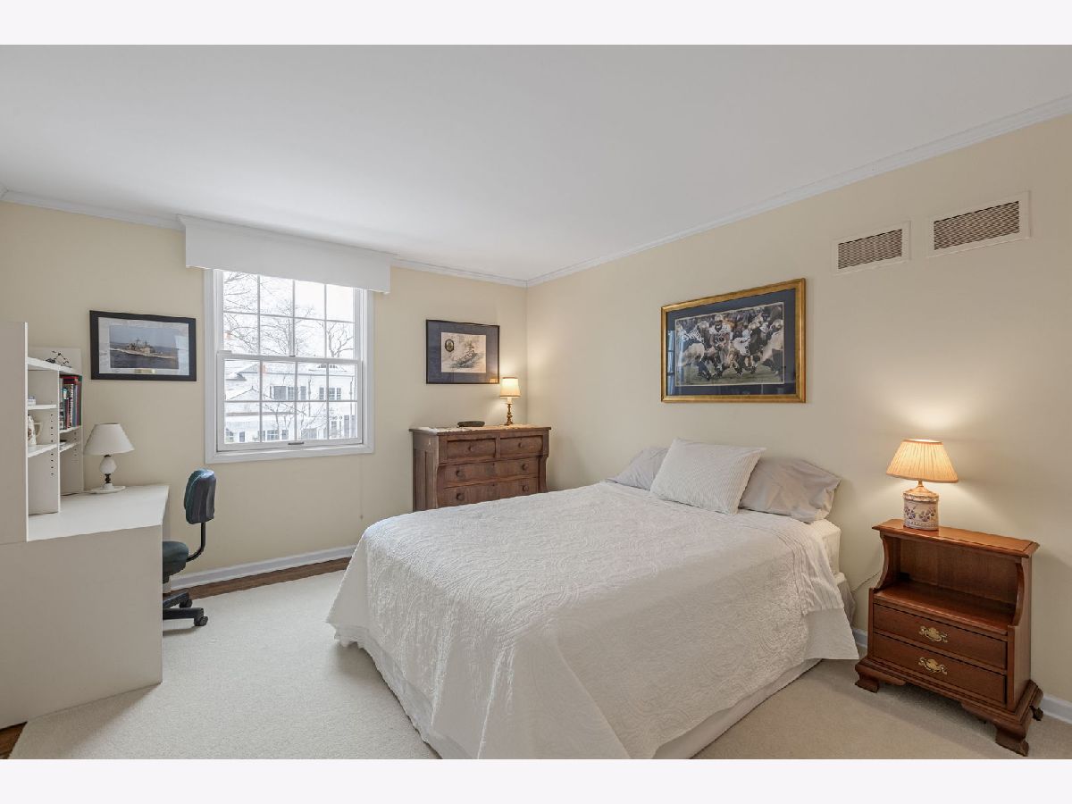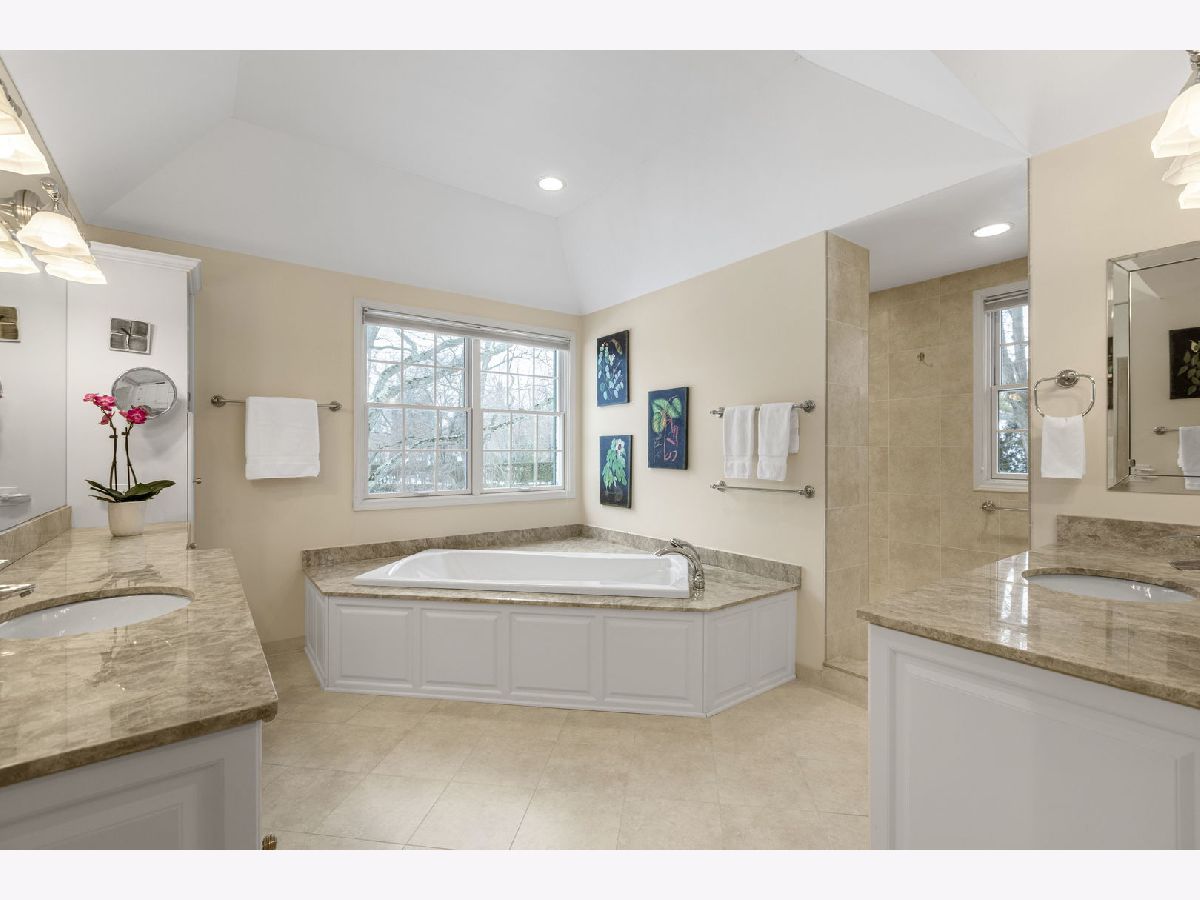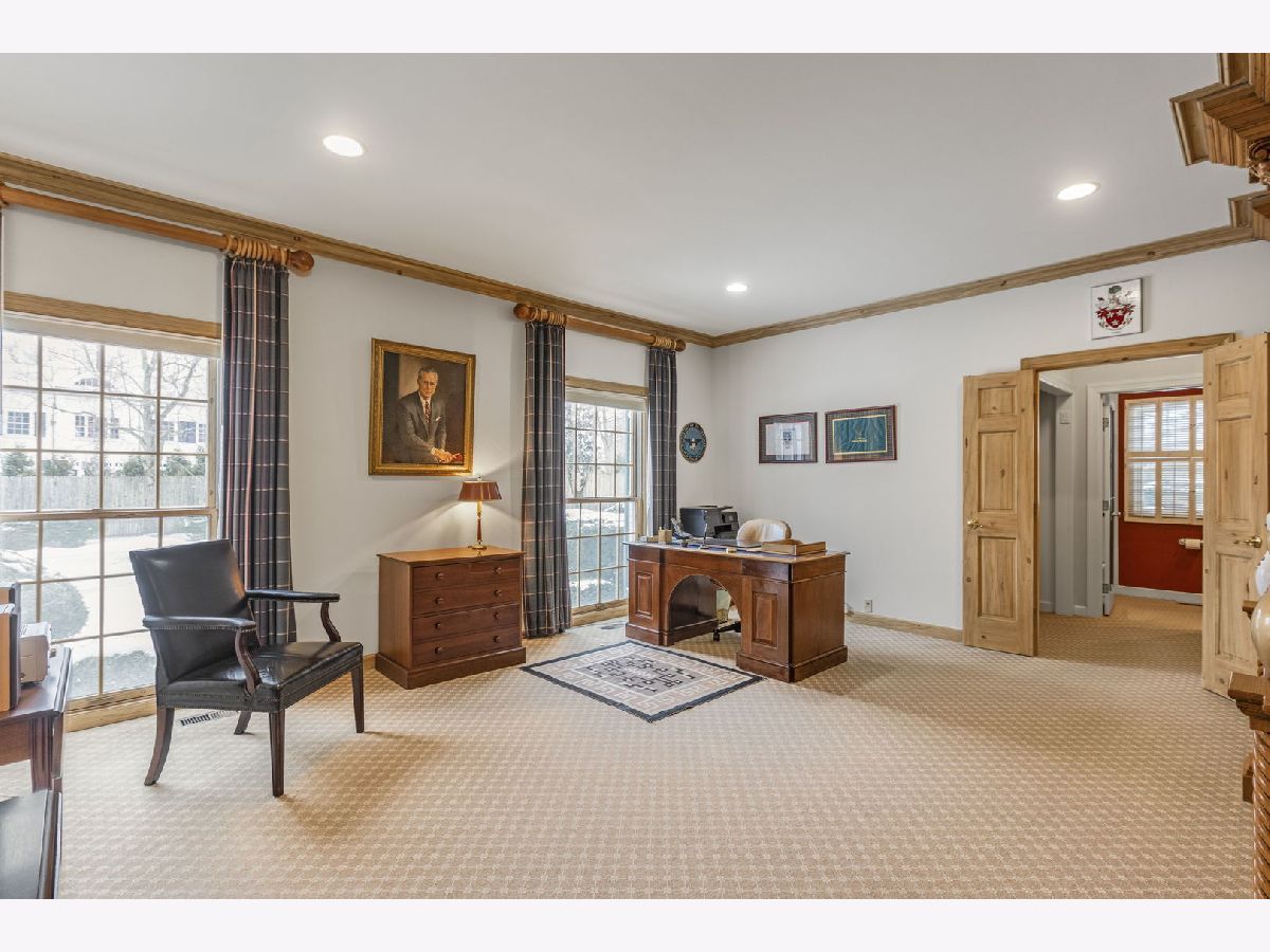 An elegant retreat near the shores of Lake Michigan, this beautifully designed four-bedroom all-brick residence with a separate study offers refined living in a coveted setting. Enjoy seasonal lake views from the second floor. The house offers 5,200 square feet above ground, and is sited on just under one acre. Built in 1980, the home blends classic architecture with generous proportions, highlighted by 9-foot ceilings on the first floor, that create an immediate sense of light and openness. Thoughtfully laid out for both everyday comfort and gracious entertaining, the residence features expansive living areas, well-appointed bedrooms, and a private study that includes a full bathroom. This room could be used as a first-floor bedroom. The classic kitchen includes large island with storage, high-end stainless-steel appliances, two ovens, wine cooler, two glass display/storage cabinets, and granite counters. Built-in bookshelves and cabinets featured in living room, sunroom, study, and main bedroom, provide extra storage and perfect place to display your treasures. The full, finished 2,400 square foot basement includes recreation areas, an exercise room, stage and dance floor, and abundant storage. The property boasts a three-car garage, and patios off the family room, living room, and sunroom. Gorgeous perennial gardens and pristine landscaping complement this stately home. Set amid the natural beauty and serenity of the lake area, this home offers a rare opportunity to enjoy space, sophistication, and proximity to Lake Michigan in a timeless, welcoming environment. Close to downtown Lake Forest and train station.