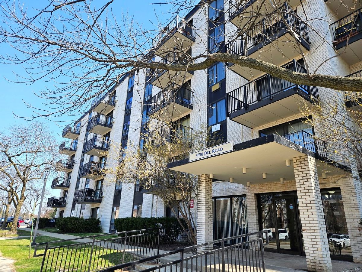 Welcome to 9701 N Dee Rd, located in the heart of Niles, IL, which offers a convenient and comfortable living experience. With 2 large bedrooms (huge walk-in closet like a mini-room in primary suite), 2 FULL bathrooms, and a finished area of 1,218 sq. ft., this CORNER UNIT ON TOP FLOOR property is perfect for individuals or families looking for a cozy place to call home. The unit itself features a spacious layout with plenty of natural light, fresh air, an east-facing entrance, and a spacious balcony in the West with beautiful sunset views as seen in pictures. The kitchen is equipped with all appliances, ample cabinet space, and a breakfast bar. This 6-story building offers a SECURE and private living environment, with amenities such as elevators, a nice swimming pool, a fitness center, and a community room. Pet-friendly - HOA allows 2 pets, (dogs and/or cats) per unit. The unit could be rented after the owner has occupied it for at least 2 years. Location could not have been better with Golf Road, only a few steps away. Walmart, Target, Golf Mill mall. Golf Glen Mart Plaza with Big Cinemas and a variety of restaurants is literally next door. There is a Niles village free shuttle that passes through these condominiums and circles around in the neighborhood. Dee Park, a large public park with all sports and facilities, is very close by. Don't miss out on the opportunity to make this your new home sweet home. Contact your agent today!