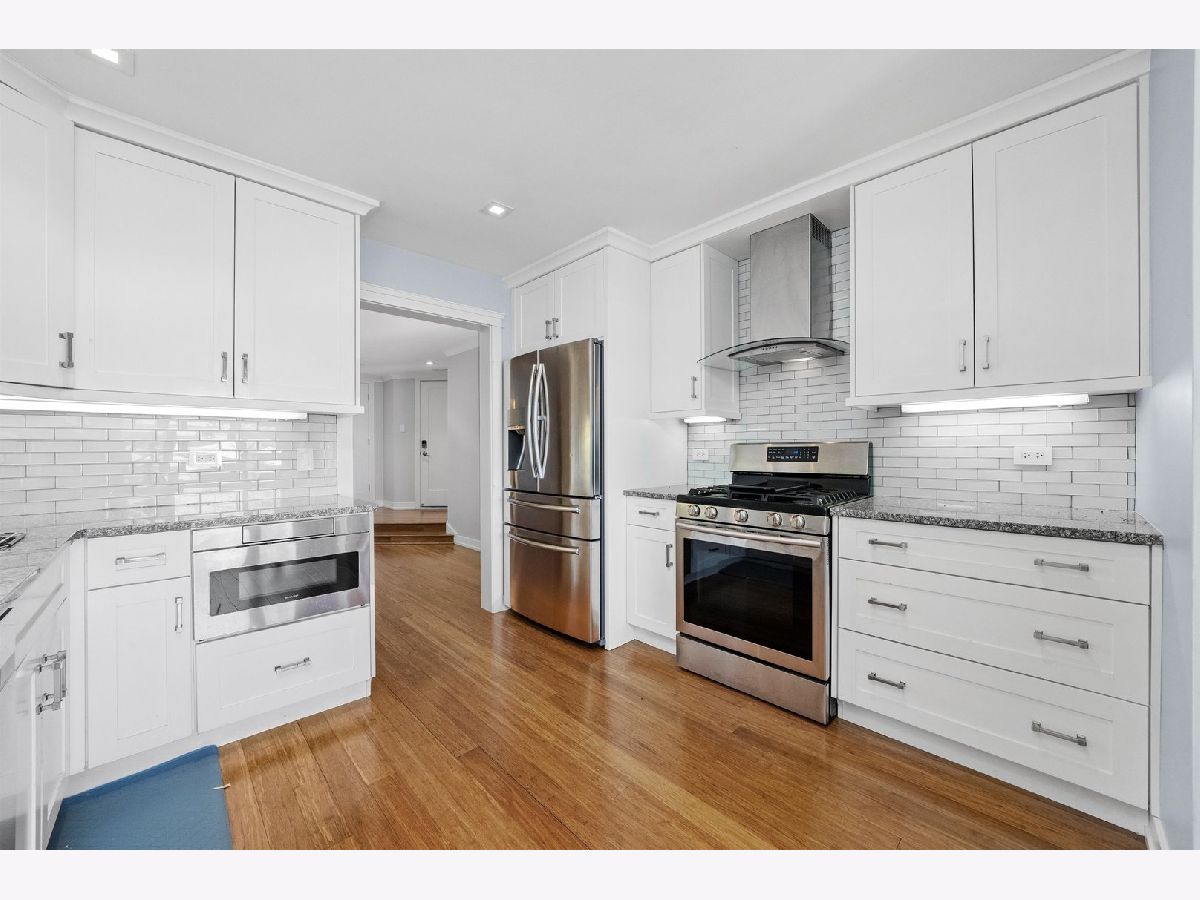 Sophisticated, fully updated 2-bedroom, 2-bath condominium in desirable Palos Park. This impeccably renovated residence showcases refined finishes and thoughtful design throughout. The expansive primary suite offers a walk-in closet and a spa-inspired en-suite bath featuring dual vanities, a custom tile shower with rain shower head, and a sleek frameless glass enclosure. The secondary bathroom is elegantly appointed with an updated vanity, tub, and designer tile surround. Rich hardwood floors extend throughout the home, complemented by crisp white interior doors, decorative white trim, and dimmable recessed lighting that enhances the home's modern ambiance. The chef-inspired kitchen boasts white cabinetry, granite countertops, built-in microwave, and ambient under-cabinet accent lighting-perfect for both everyday living and entertaining. Additional conveniences include in-unit washer and dryer and an attached garage to the building. A truly turnkey residence offering timeless elegance, comfort, and upscale living.