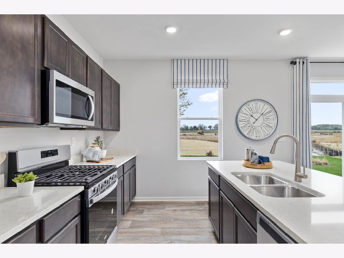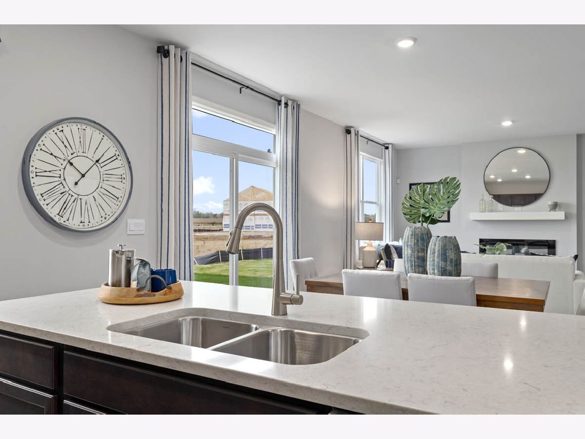 Imagine yourself at 978 Garnet Lane in Montgomery, Illinois, a picturesque new home in our Marquis Pointe community. This home is move-in ready NOW! This homesite includes a walkout basement and a fully sodded yard. The Holcombe plan offers 2,356 square foot 2 story, 4 bedrooms, 2.5 baths, 9-foot ceilings on first level. Entertaining will be easy in this open-concept kitchen and family room layout with a large island and an overhang for stools, 36-inch designer cabinetry with soft close doors and drawers. Additionally, the kitchen features a walk-in pantry, modern stainless-steel appliances, sparkling quartz countertops, and easy-to-maintain luxury vinyl plank flooring. Heading up the staircase you will find your private getaway to your large primary bedroom and en-suite bathroom with a raised height dual sink, quartz top vanity, and walk-in shower with spacious walk-in closet. Convenient second floor laundry room, 3 additional bedrooms with a full second bath and a linen closet complete the second level. Marquis Pointe is in Montgomery, IL, a charming historic town that evokes a family atmosphere with countless options for shopping, dining and entertainment. All Chicago homes include our America's Smart Home Technology, featuring a smart video doorbell, smart Honeywell thermostat, smart door lock, Deako smart light switched, Builder Warranty 1-2-10 and more. Photos are of similar home and model home. Actual home built may vary.