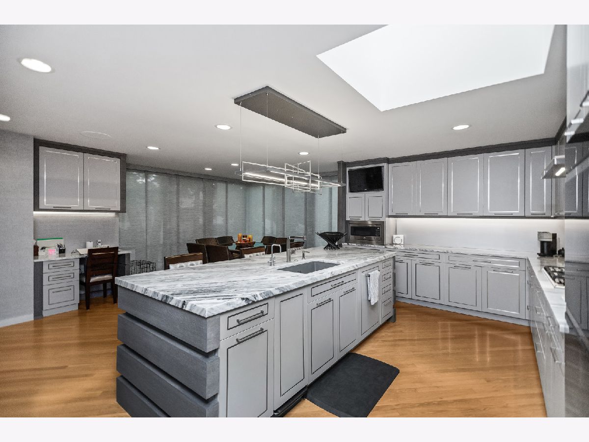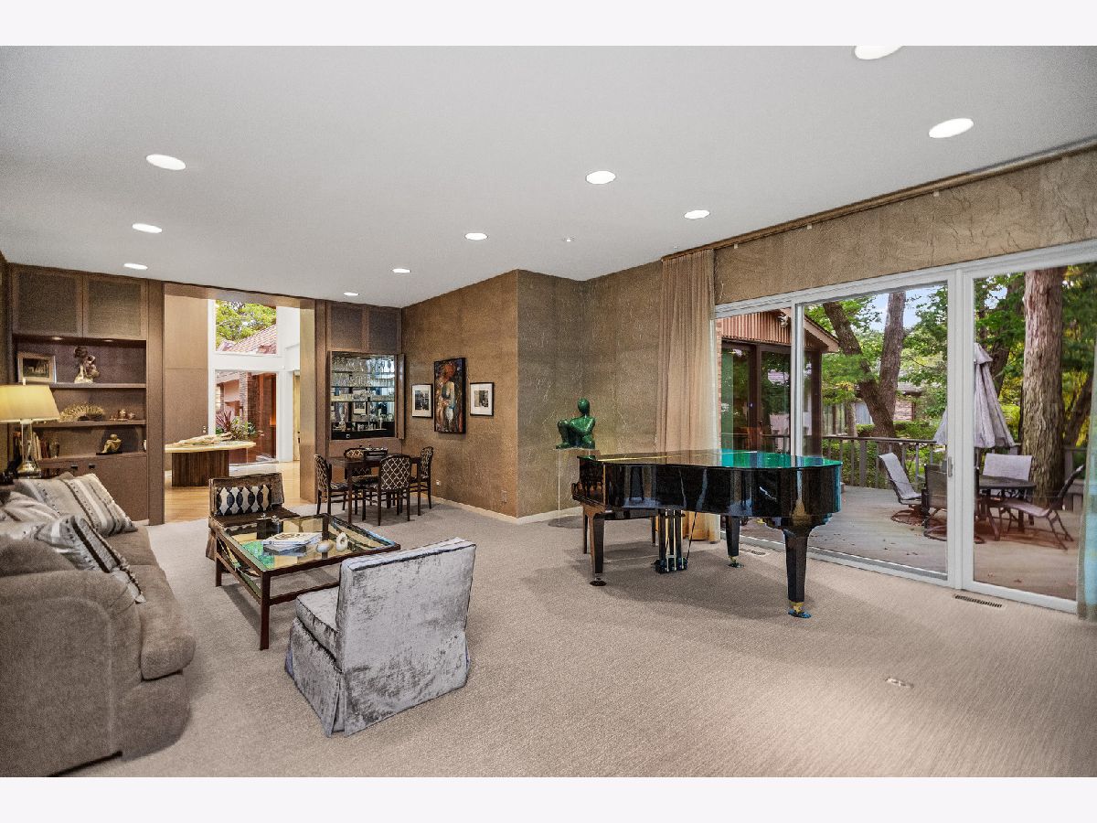 Experience the height of North Shore sophistication at 990 Sheridan Road -- an impressive ranch offering 4575 square feet of refined living space. Located down a long driveway, this exceptionally pristine ranch is set among towering trees. Three car heated garage, motor court, and circular drive awaits you. From the moment you enter, the home's grand scale is revealed through the Foyer's soaring ceiling, expansive windows and skylights, that bathe the interior in natural light, beautifully highlighting the hardwood floors and walls for art. In addition there is recessed lighting throughout the entire home. At the heart of the home is a stunning chef's Kitchen featuring a huge Island with quartzite counters, many built-ins, as well as seating, work space, sink, and built-in Dishwasher. Gorgeous custom cabinetry around the large side by side Sub Zero refrigerator/freezer, double large Wolf ovens and 5 burner gas cook top also on quartzite counters. Under cabinet lighting and skylights. Spacious eating area w/sliding doors to the Trex wrap around deck and huge yard. Convenient Laundry/Mudroom with several closets and built-ins, Refrigerator/Freezer, hanging space, one door to the heated three car garage and one to the outside. There is a very spacious separate Dining Room adjacent to the Kitchen, making entertaining easy-- and highlighting the custom buffet and lighting. The open exquisite Living Room has a spectacular doublesided fire place w/crystals, wall of sliding glass doors to the deck, wet bar, and walls for art. Beyond the Living Room is the Family Room w/built-ins, wall of windows, and the other side of the fireplace. This commitment to quality continues in the private quarters-specifically within the Primary Suite: Spacious carpeted Bedroom with sliding glass doors to the deck, luxurious Bathroom creats a spa-like retreat with whirlpool tub, steam shower wih seat, two sinks, skylight, Dressing Room with wall of built-ins and two walk-in closets--One is a giant! Completing the private area are two additional carpeted Bedrooms which are separated by a double sided ensuite bathroom. The fourth Bedroom is being used as an Office with many built-ins and ensuite bathroom with a skylight. As we turn the corner to go downstairs, we pass a beautiful Powder Room and two more coat closets. Beyond the Primary living area, the home's versatilty shines in the expansive finished Basement. The carpeted stairwell has a landing and many windows as we descend to the Lower Level. There are solid core doors, many closets and areas for storage. The Lower Level has the same 4575 sft as the main floor. There is a Bedroom, Bath, Exercise Room, Work Room, Rec Room, huge Cedar Closet, and a huge amount of space for development. There are two hotwater heaters, two furnaces, two AC(2021), two humidifiers, two new electrical panels (2026) and a Generator(2020). Upgraded irrigation system(2021). Ideally located near Rosewood Beach w/new sidewalks in progress directly across the street from the house, Ravinia Elementary school, Ravinia Festival Park, and the Ravinia Metra Station, this exceptional home offers a rare blend of comfort, sophistication, and secure, stylish living.