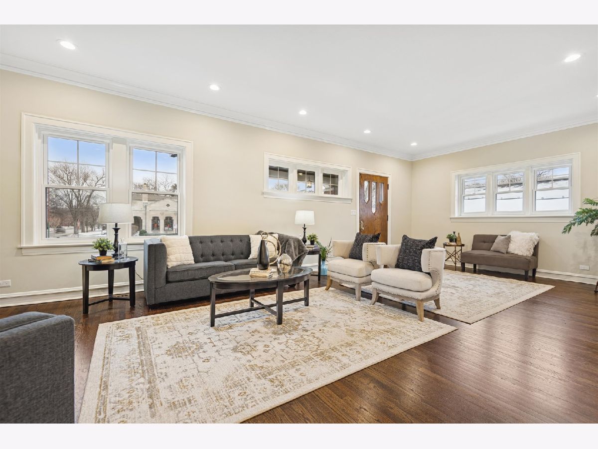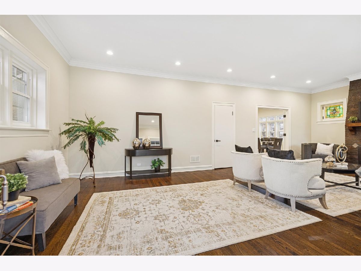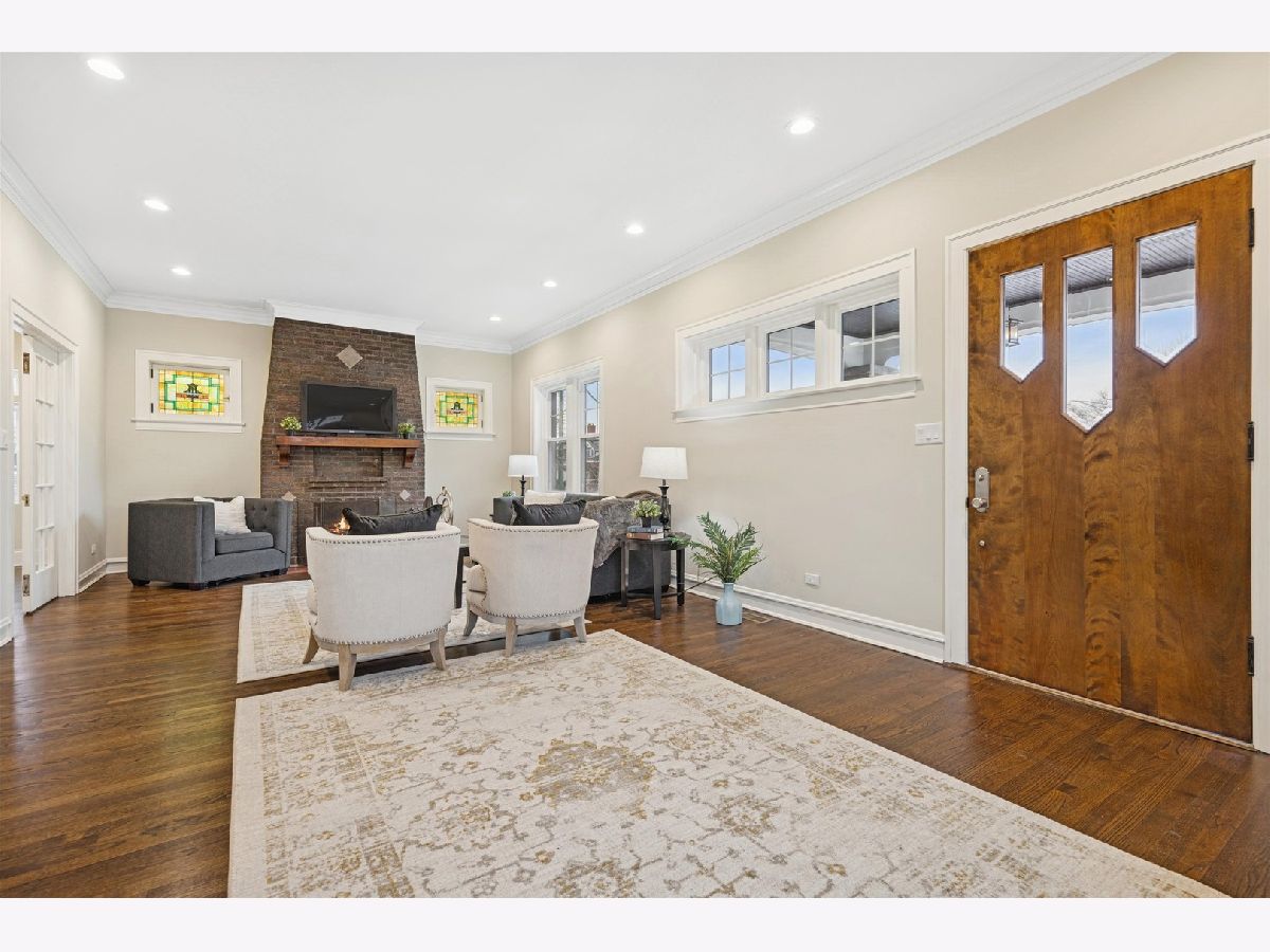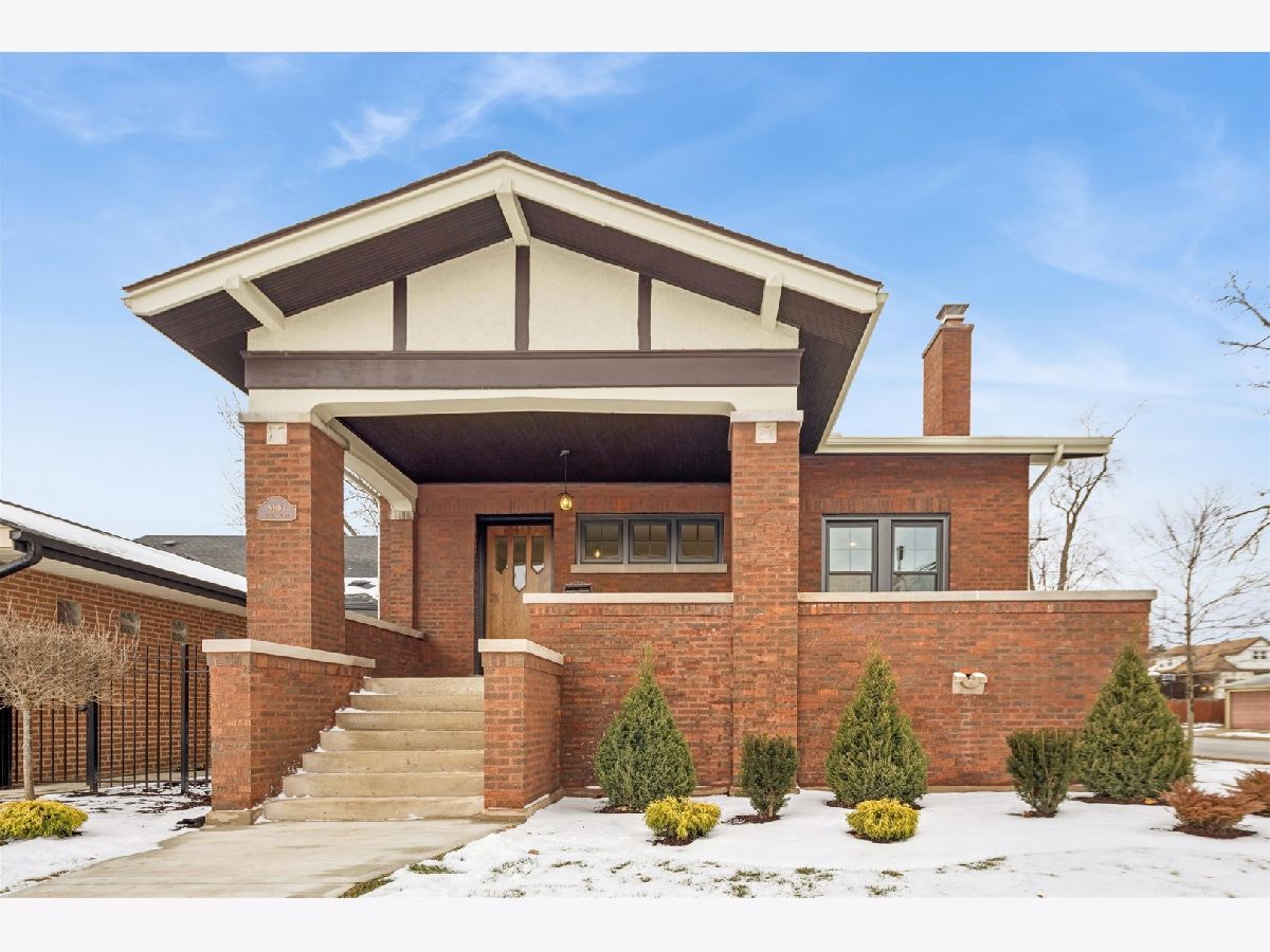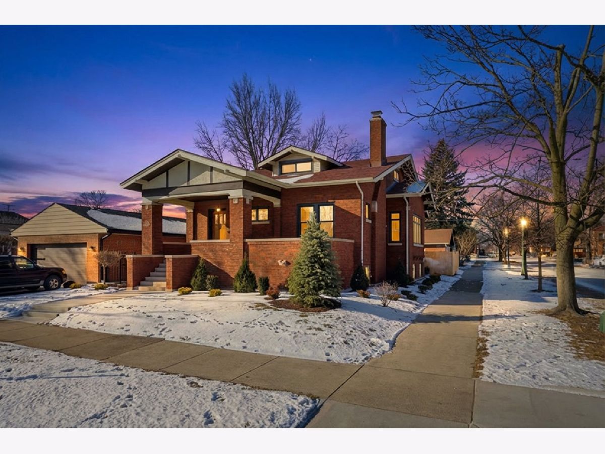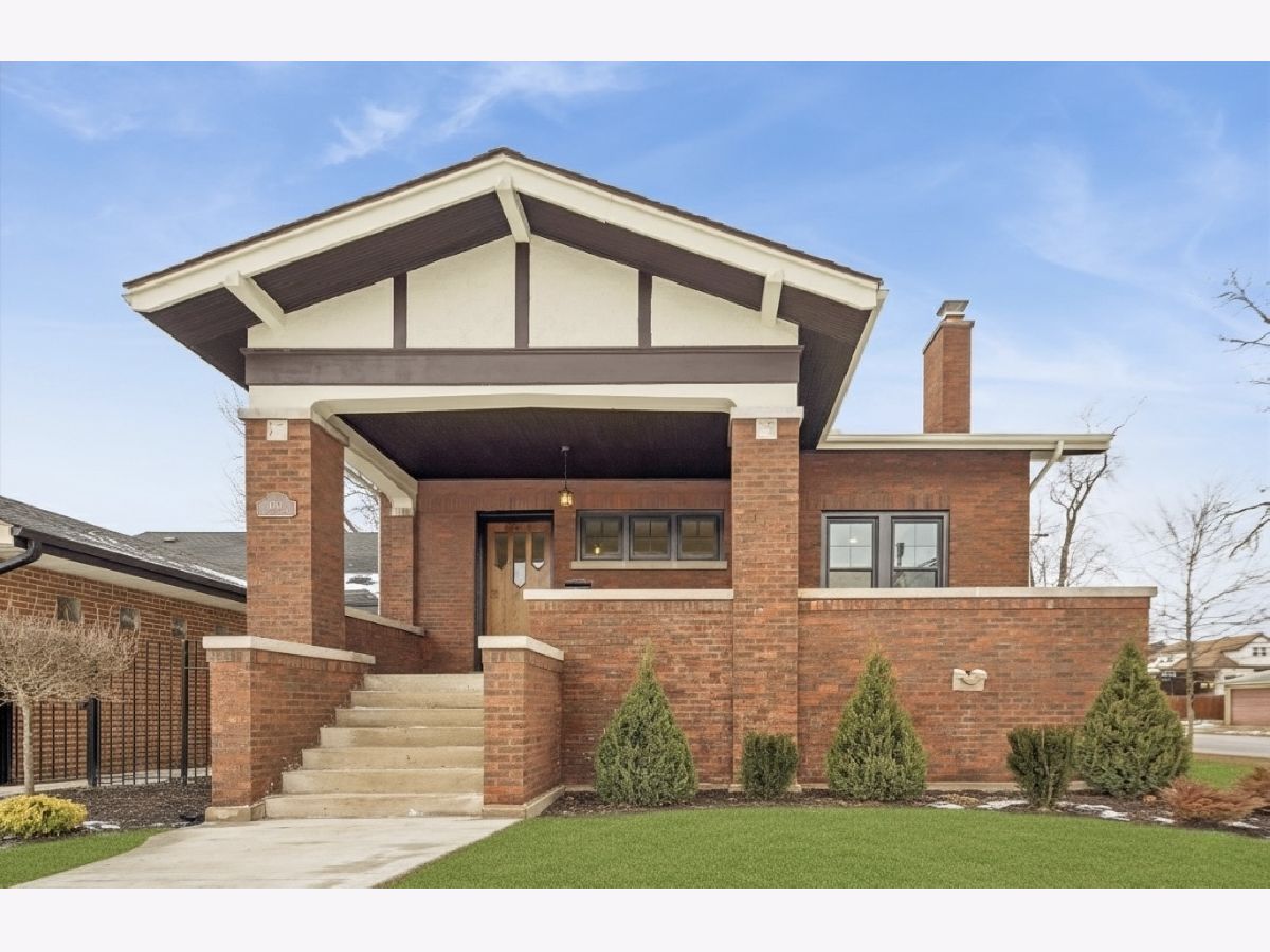 Meticulously Renovated 1920's Craftsman 5 Bedrm 4 Bath Bungalow located in prime Beverly location surrounded by a rich mix of architectural styles. It includes timeless home designs such as a 30-foot covered Front Porch, long overhanging eaves, and a broad band of windows across the front. Step into the Grand Living Room. featuring an original fireplace flanked by 2 original stained-glass windows. 10-foot ceilings and hardwood floors span the main level, highlighted by a first-floor primary ensuite offering a spa-like bath with dual sinks, Carrara marble shower, and an expansive walk-in closet. The inviting custom kitchen showcases 42" white Shaker cabinetry, quartz countertops, Samsung Bespoke appliances, a striking recycled-glass backsplash, and an impressive 10-foot center island-perfect for everyday living and entertaining. A refined staircase leads to the second level featuring two additional bedrooms with walk-in closets and a beautifully designed third bath with dual sinks and a soaking tub. The fully finished 1,600-sq-ft basement expands your living space with an enormous family room, fifth bedroom, and a generous flex room ideal for a home office, gym, or playroom. Updates include: windows, roof, high-efficiency HVAC, plumbing, electrical, doors, trim, hardware, carpeting, recessed lighting, and a basement check valve. The restored and tuck-pointed brick exterior is complemented by an updated front walkway, professional landscaping, and a picture-perfect backyard with a privacy fence a brick paver patio.& a refreshed brick two-car garage. Unbeatable location near top-rated schools, parks, and shopping, with a short walk to the Metra for easy commuting. A true gem-welcome home. Additional Photos being Posted 1/26