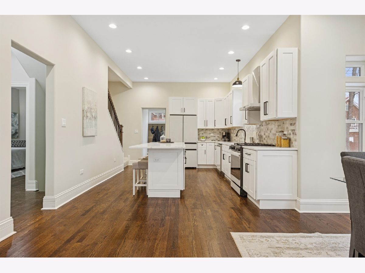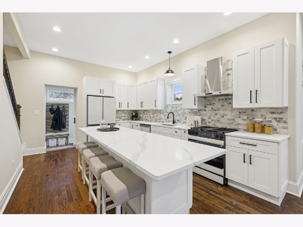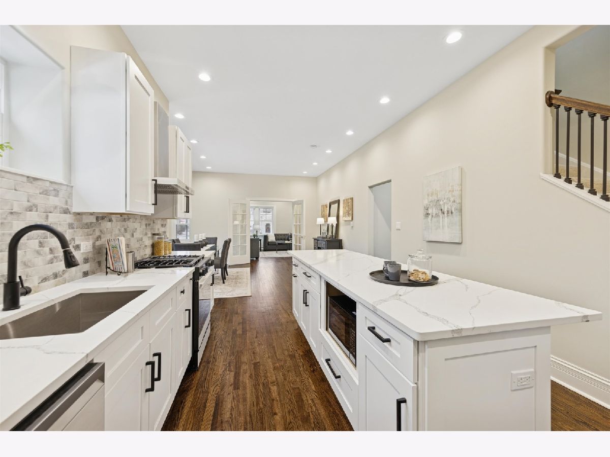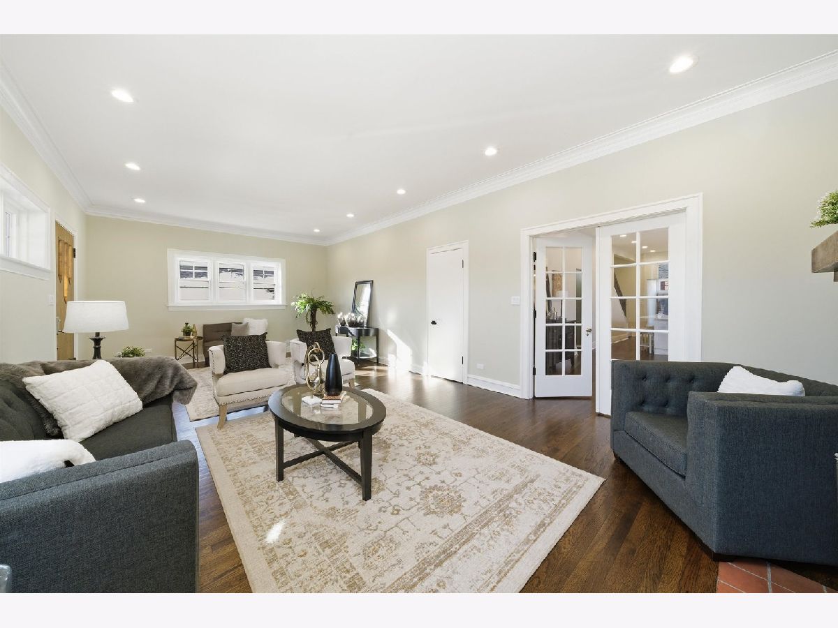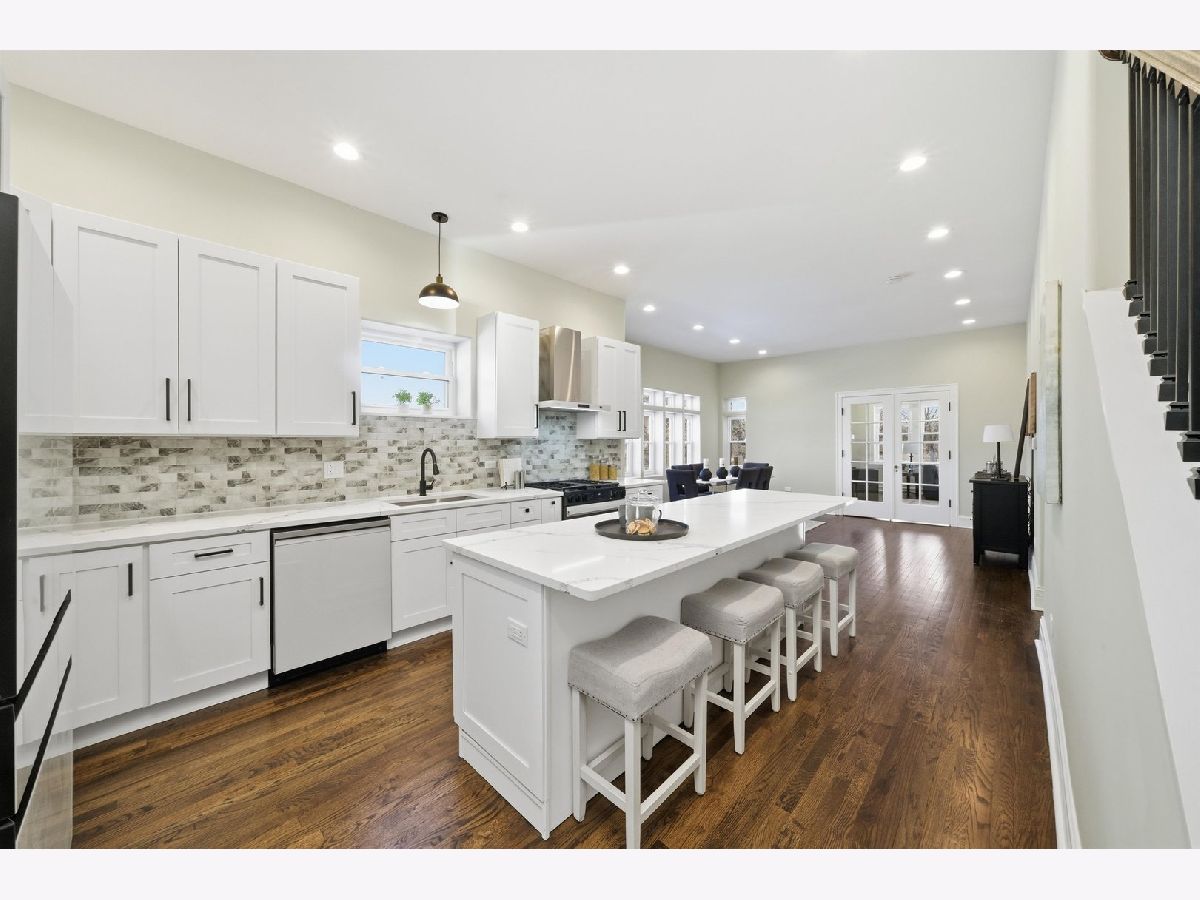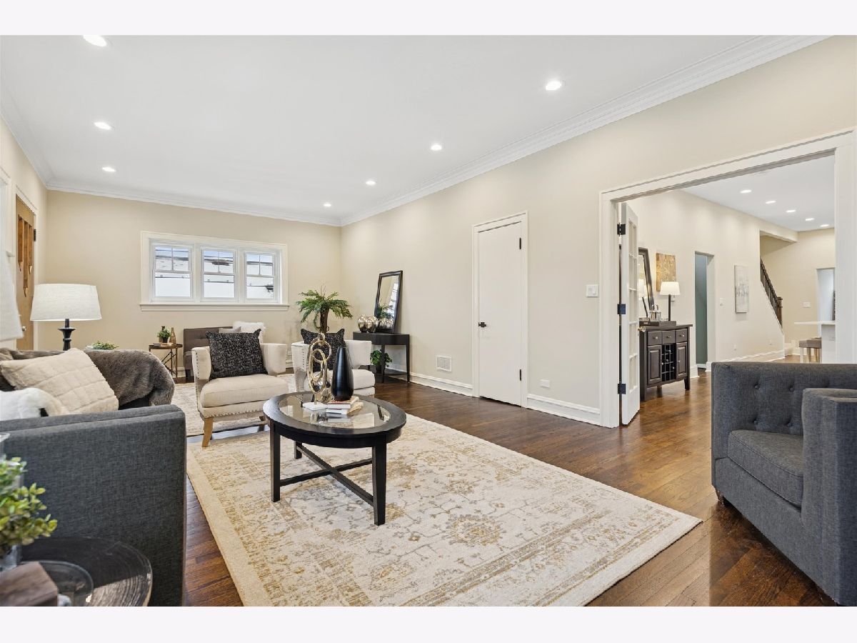 Meticulously Renovated 1920's Craftsman 5 Bedrm 4 Bath Bungalow located in prime Beverly location surrounded by a rich mix of architectural styles. It includes timeless home designs such as a 30-foot covered Front Porch, long overhanging eaves, and a broad band of windows across the front. Step into the Grand Living Room. featuring an original fireplace flanked by 2 original stained-glass windows. 10-foot ceilings and hardwood floors span the main level, highlighted by a first-floor primary ensuite offering a spa-like bath with dual sinks, Carrara marble shower, and an expansive walk-in closet. The inviting custom kitchen showcases 42" white Shaker cabinetry, quartz countertops, Samsung Bespoke appliances, a striking recycled-glass backsplash, and an impressive 10-foot center island-perfect for everyday living and entertaining. A refined staircase leads to the second level featuring two additional bedrooms with walk-in closets and a beautifully designed third bath with dual sinks and a soaking tub. The fully finished 1,600-sq-ft basement expands your living space with an enormous family room, fifth bedroom, and a generous flex room ideal for a home office, gym, or playroom. Updates include: windows, roof, high-efficiency HVAC, plumbing, electrical, doors, trim, hardware, carpeting, recessed lighting, and a basement check valve. The restored and tuck-pointed brick exterior is complemented by an updated front walkway, professional landscaping, and a picture-perfect backyard with a privacy fence a brick paver patio.& a refreshed brick two-car garage. Unbeatable location near top-rated schools, parks, and shopping, with a short walk to the Metra for easy commuting. A true gem-welcome home. Additional Photos being Posted 1/26