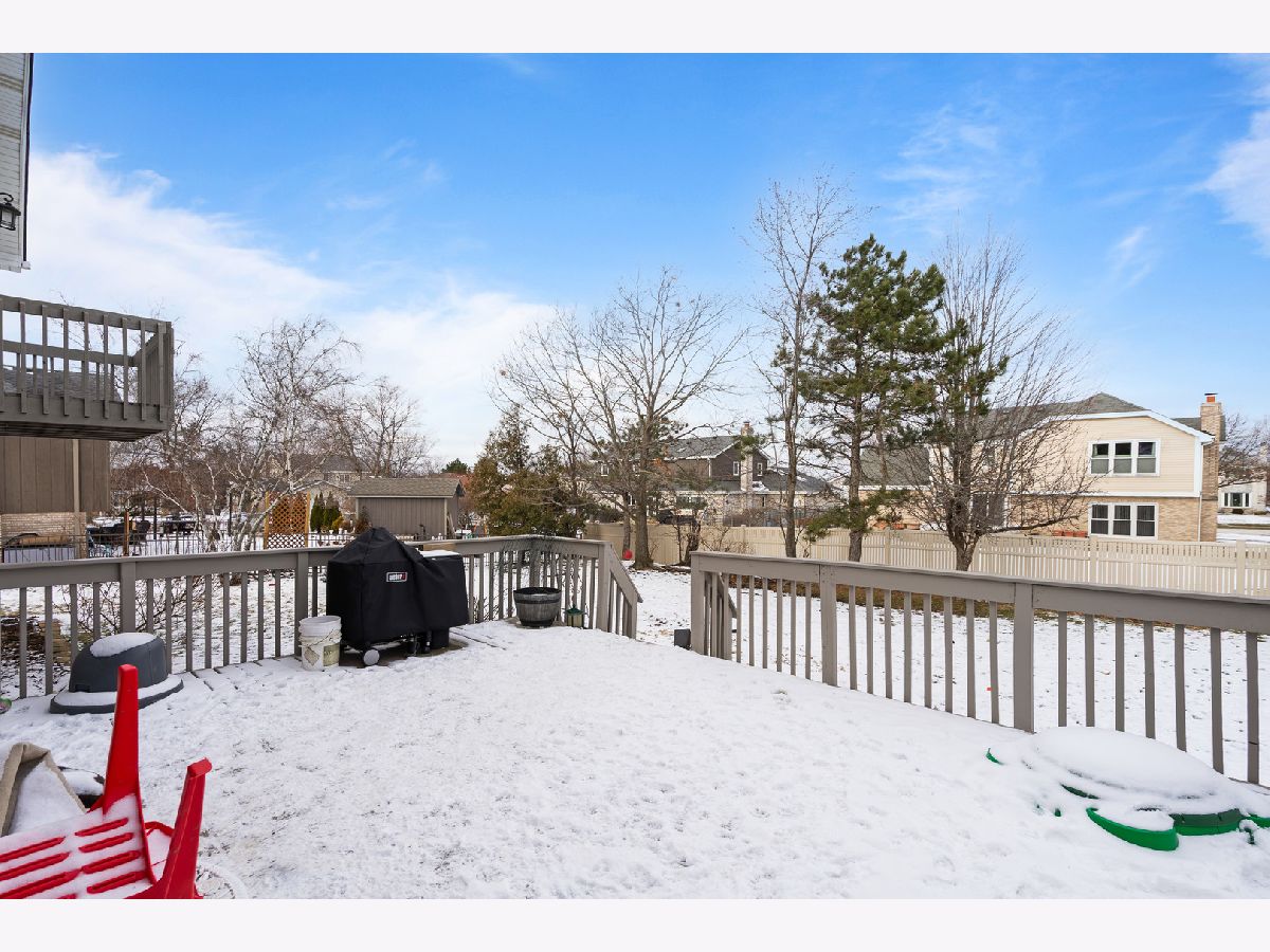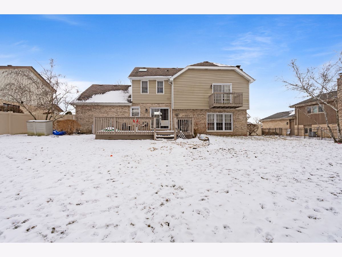 This spacious and beautifully cared-for residence offers the perfect blend of comfort, style, and function. Step into the sun-filled living and dining rooms, where a soaring vaulted ceiling and new wood laminate flooring create an inviting and elegant atmosphere. The well-designed kitchen features classic oak cabinetry, a convenient pantry closet, an island for additional prep space, and a bright breakfast area with doors leading to a large deck-perfect for morning coffee or evening gatherings overlooking the privacy-fenced backyard. The inviting family room is centered around a stunning stone fireplace with gas start, offering warmth and charm for cozy nights in. A main-level laundry room with a utility sink adds convenience, while the heated three-car garage impresses with built-in cabinets, shelving and a service door to the yard. Upstairs, the luxurious primary suite is a true retreat with its private balcony, double walk-in closets, and spa-inspired bath featuring dual vanities, a whirlpool tub, and a separate shower. Three additional bedrooms and a second full bath provide ample space for family or guests. The unfinished basement offers endless possibilities for expansion, while recent updates add peace of mind: roof (5 years), siding, soffit, facia, and gutters (5 years), A/C (10 years), and water heater (1 year), sump pump (2 years) fresh paint, newer fence. A rare combination of sophistication and practicality, this home has been lovingly maintained and thoughtfully upgraded-ready for its next discerning owner to enjoy!