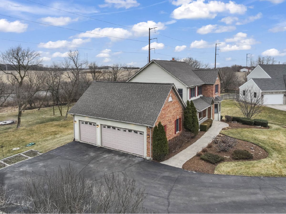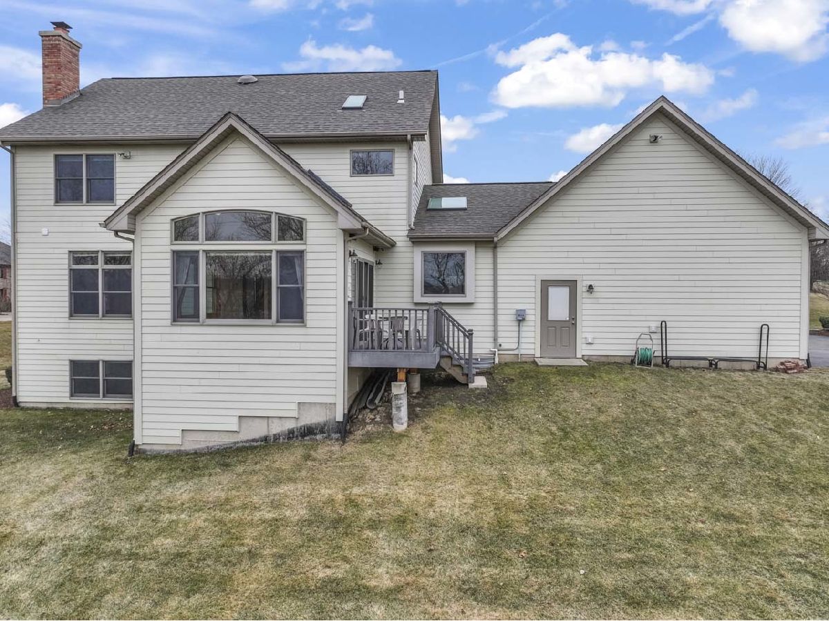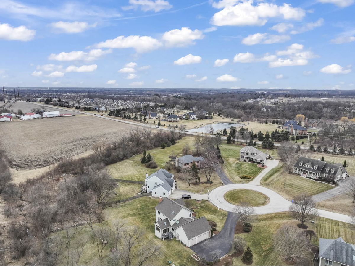 Tucked away on a quiet cul-de-sac and backing to expansive open fields, this custom-built home offers privacy, craftsmanship, and thoughtful design on a stunning 1.2-acre lot. The striking brick and Hardie board exterior sets the tone, complemented by a fiberglass front door with elegant leaded glass. Built with 2x6 exterior walls for enhanced durability, strength, and energy efficiency insulation, top-of-the-line Anderson windows, and numerous structural upgrades, this home was constructed with quality in mind. Inside, hardwood flooring flows throughout the main level. The spacious family room features a gas-start wood-burning fireplace, creating a warm and inviting gathering space. The kitchen is designed for entertaining, offering 42" cabinetry with crown molding, granite countertops, new stainless steel appliances, and a large island ideal for hosting while you cook. A flexible first-floor in-law suite option (currently featuring a Murphy bed) provides incredible versatility for guests, multi-generational living, or a private workspace. The first-floor laundry room is thoughtfully designed with two built-in desk areas, adding functional workspace to everyday living. Upstairs, the primary suite offers comfort and luxury with plush carpeting and a spa-inspired bath featuring a jetted tub, separate shower, dual vanities, and skylight. Two additional bedrooms complete the second floor. The English basement includes a dedicated office area and is plumbed for radiant heat, as is the attached 3-car garage. Additional upgrades include central vacuum, alarm system, whole-house intercom, reverse osmosis system, mechanical septic and well, and pull-down attic access for additional storage. The home has been freshly painted, hardwood floors newly refinished, new carpeting installed throughout. Step outside to enjoy the expansive yard, complete with extensive professional landscaping, a meandering creek, fire pit, raised garden bed, and wide-open views, offering both privacy and space to entertain. A rare opportunity to own a meticulously maintained, thoughtfully constructed quality custom home in a serene country setting, with great District 301 schools, just minutes from Randall Road shopping, and no HOA.