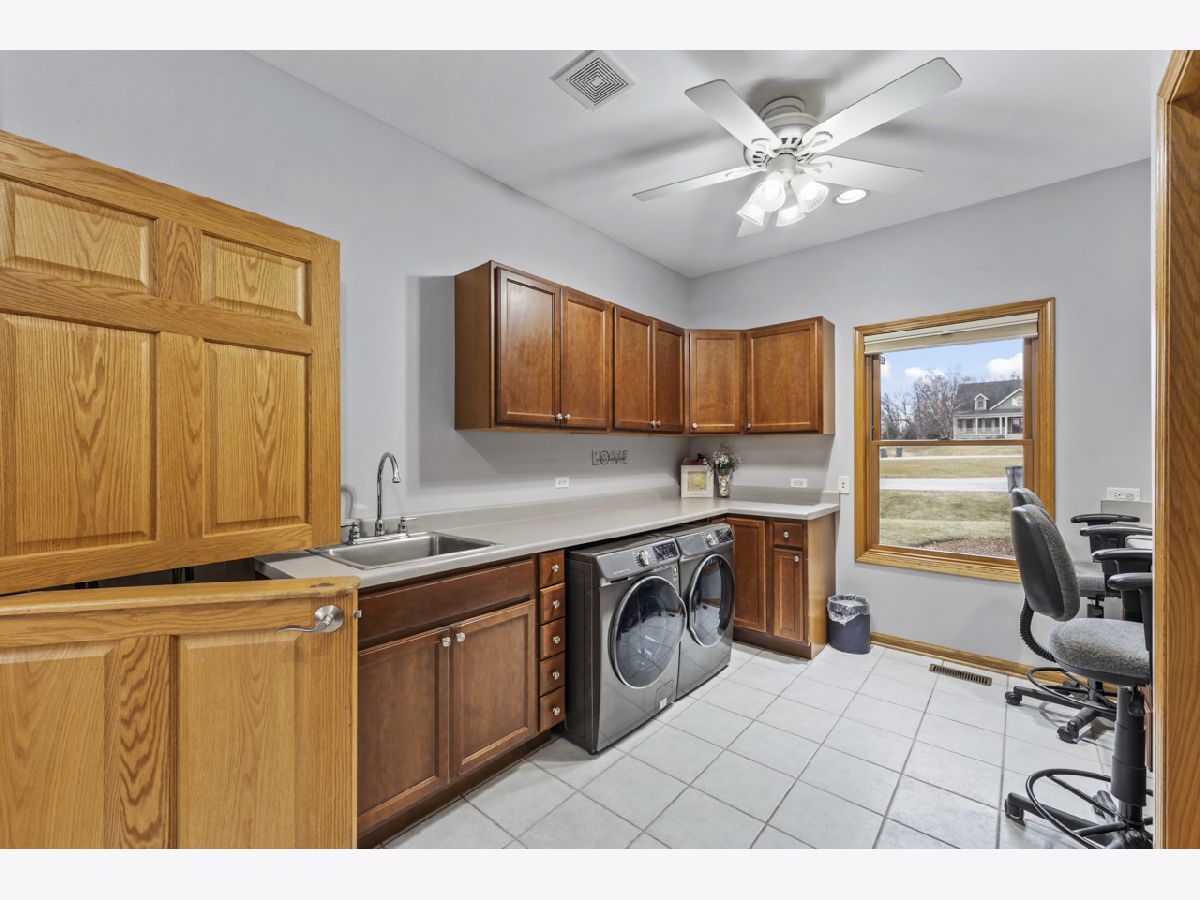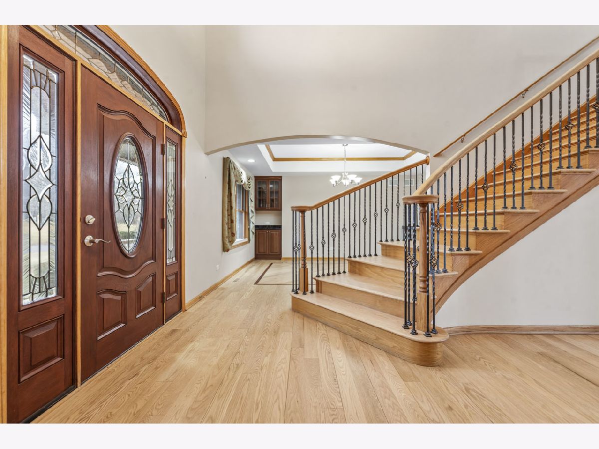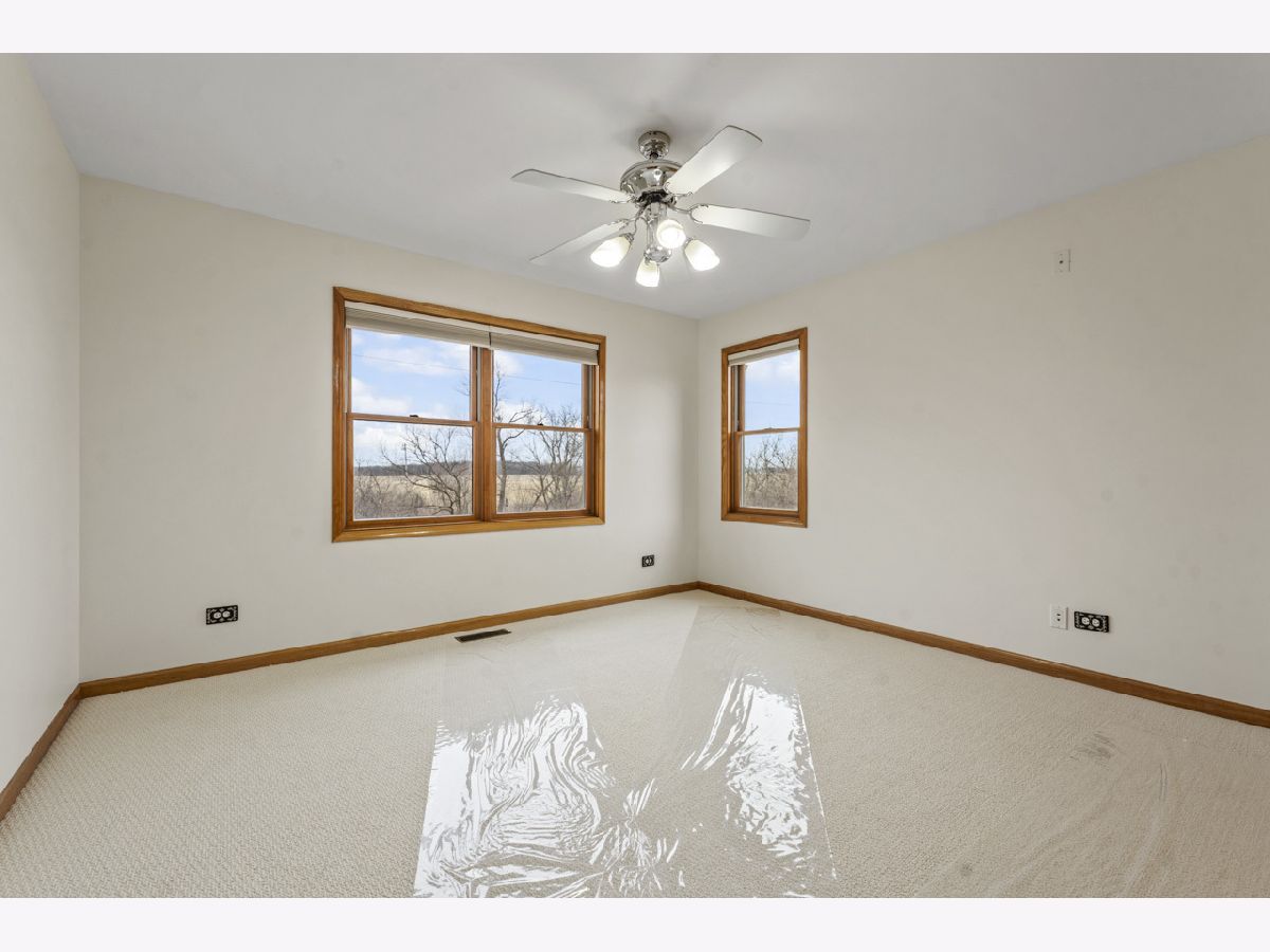 Tucked away on a quiet cul-de-sac and backing to expansive open fields, this custom-built home offers privacy, craftsmanship, and thoughtful design on a stunning 1.2-acre lot. The striking brick and Hardie board exterior sets the tone, complemented by a fiberglass front door with elegant leaded glass. Built with 2x6 exterior walls for enhanced durability, strength, and energy efficiency insulation, top-of-the-line Anderson windows, and numerous structural upgrades, this home was constructed with quality in mind. Inside, hardwood flooring flows throughout the main level. The spacious family room features a gas-start wood-burning fireplace, creating a warm and inviting gathering space. The kitchen is designed for entertaining, offering 42" cabinetry with crown molding, granite countertops, new stainless steel appliances, and a large island ideal for hosting while you cook. A flexible first-floor in-law suite option (currently featuring a Murphy bed) provides incredible versatility for guests, multi-generational living, or a private workspace. The first-floor laundry room is thoughtfully designed with two built-in desk areas, adding functional workspace to everyday living. Upstairs, the primary suite offers comfort and luxury with plush carpeting and a spa-inspired bath featuring a jetted tub, separate shower, dual vanities, and skylight. Two additional bedrooms complete the second floor. The English basement includes a dedicated office area and is plumbed for radiant heat, as is the attached 3-car garage. Additional upgrades include central vacuum, alarm system, whole-house intercom, reverse osmosis system, mechanical septic and well, and pull-down attic access for additional storage. The home has been freshly painted, hardwood floors newly refinished, new carpeting installed throughout. Step outside to enjoy the expansive yard, complete with extensive professional landscaping, a meandering creek, fire pit, raised garden bed, and wide-open views, offering both privacy and space to entertain. A rare opportunity to own a meticulously maintained, thoughtfully constructed quality custom home in a serene country setting, with great District 301 schools, just minutes from Randall Road shopping, and no HOA.