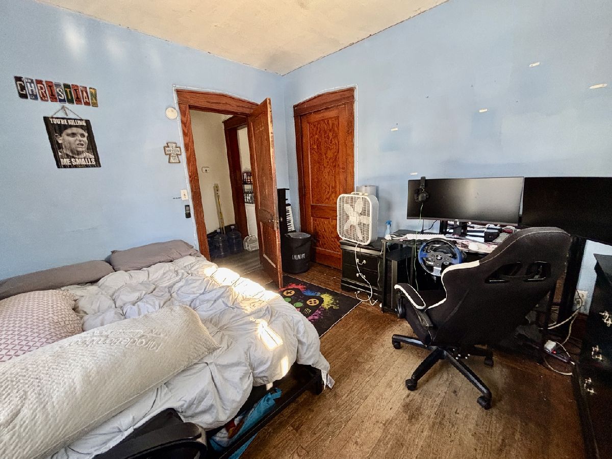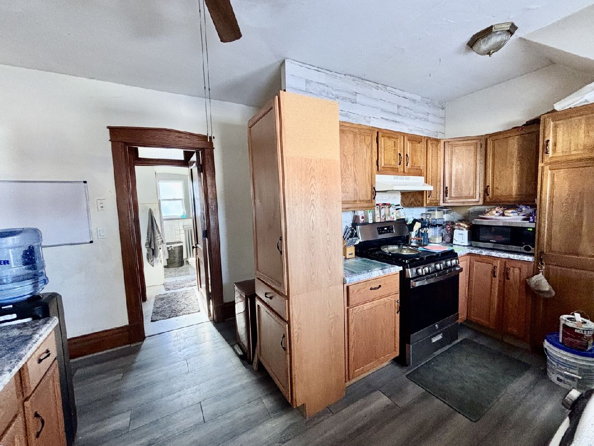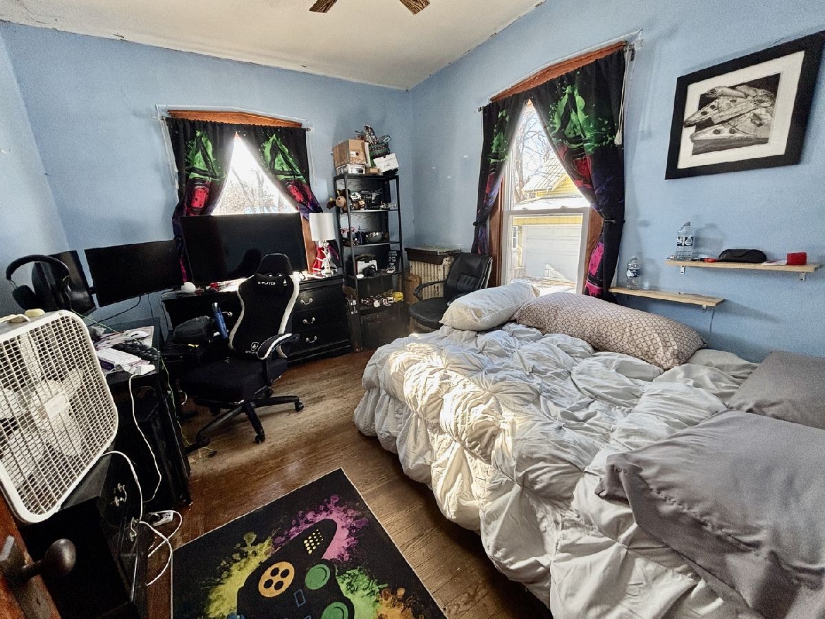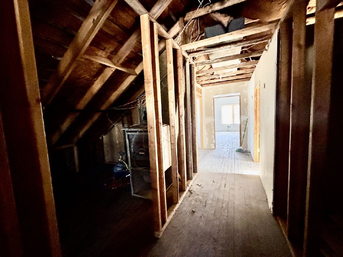 Timeless character meets renovation opportunity on this oversized corner lot. The main floor showcases beautiful natural woodwork and hardwood floors, a striking lead-glass window in the living room, and a huge dining room with a built-in buffet and mirrored backsplash - perfect for entertaining. Three main-floor bedrooms include two with walk-in closets. The full attic has been partially finished to include a full fourth bedroom and two additional rooms that can be completed as bedrooms or flexible living space; a possible additional bath could be added. Electrical has been run to the attic and a gas forced-air furnace is in place and ready to be hooked up and finished. A 2.5-car garage with attic storage completes theproperty. Ideal for buyers or investors looking to restore period detail and add modern finishes - tremendous upside andcustomization potential.