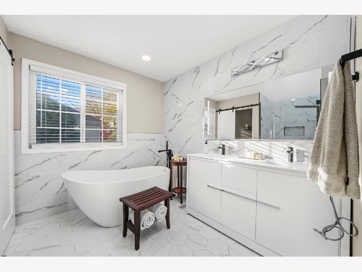 Welcome to this beautifully updated 4 bedroom 4 bathroom home on a quiet cul de sac in Bensenville. The open living room features soaring ceilings and an exposed staircase, and the main level boasts new hardwood flooring. The newly renovated kitchen offers stainless steel appliances, a farmhouse sink, subway tile backsplash, custom cabinetry and abundant storage. Both kitchens and baths have been fully updated. Major mechanicals are approximately 3 years old and the roof was replaced in 2022. The primary suite includes a skylight, a large soaking tub, a double sink vanity and ample storage. The cozy family room provides a wood burning brick fireplace and the finished lower level offers a recreation room ideal for relaxing or entertaining. Outside, enjoy a patio, fenced yard and attached 2-car garage. Located near schools, parks and major commute routes, this move-in ready home blends comfort, modern updates and an ideal layout for everyday living and entertaining.