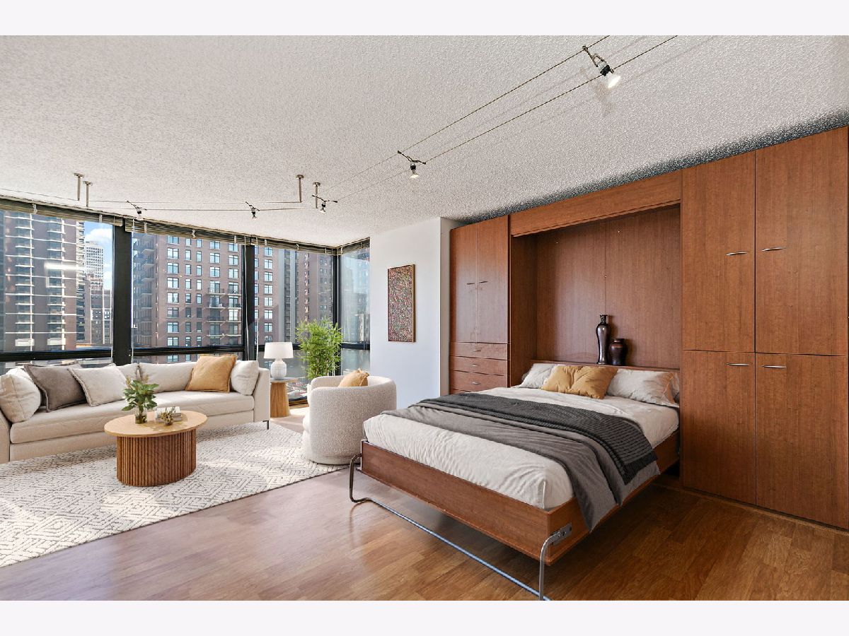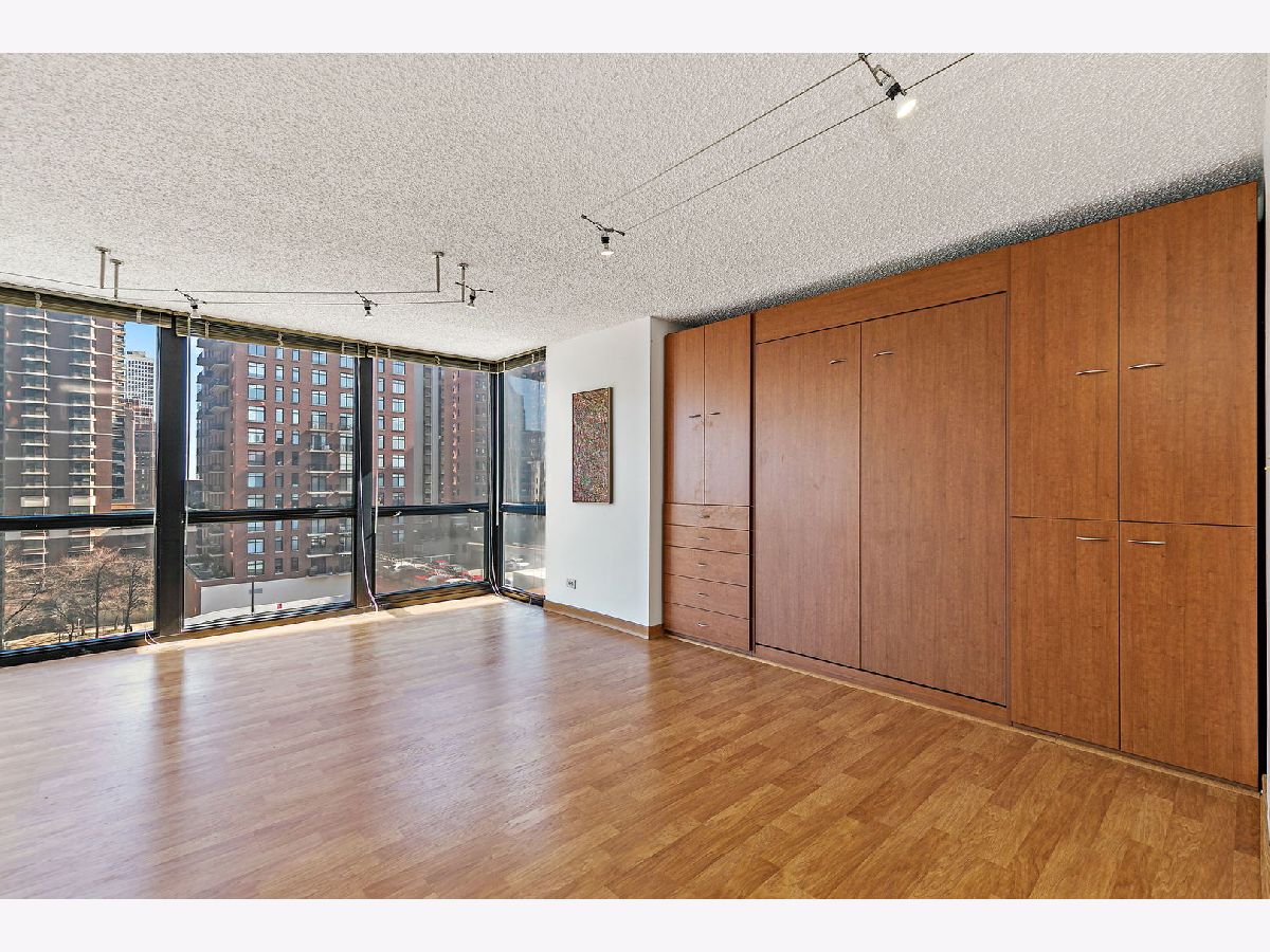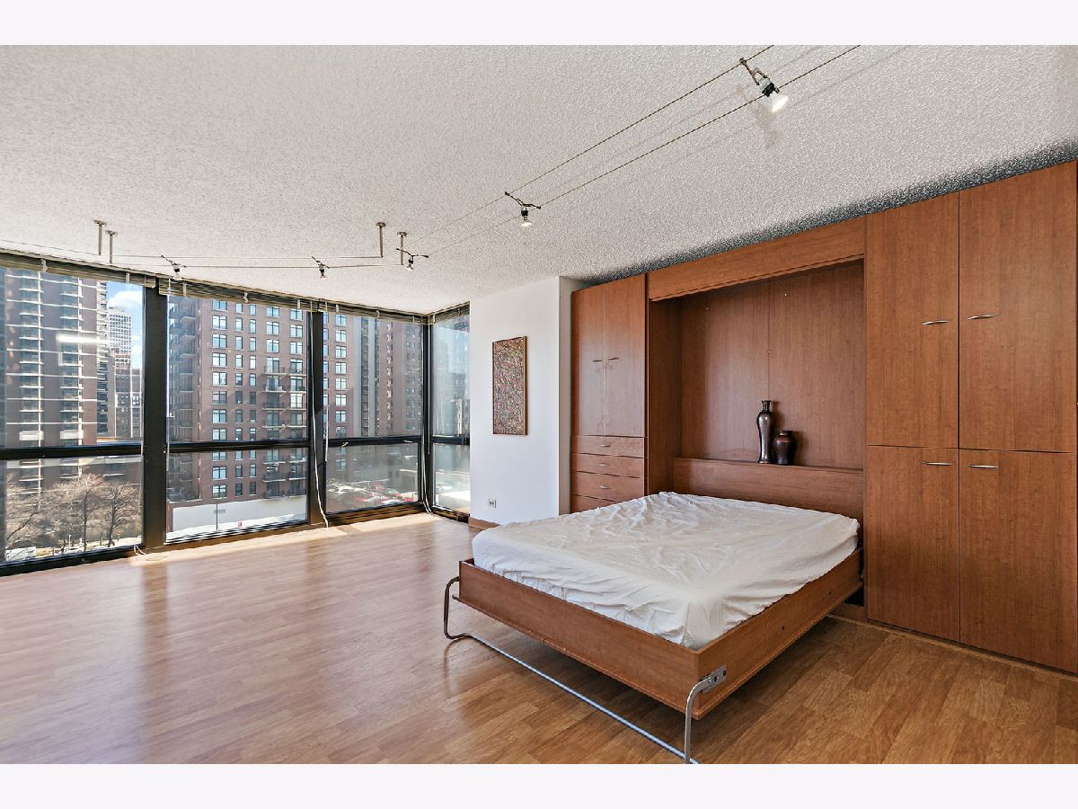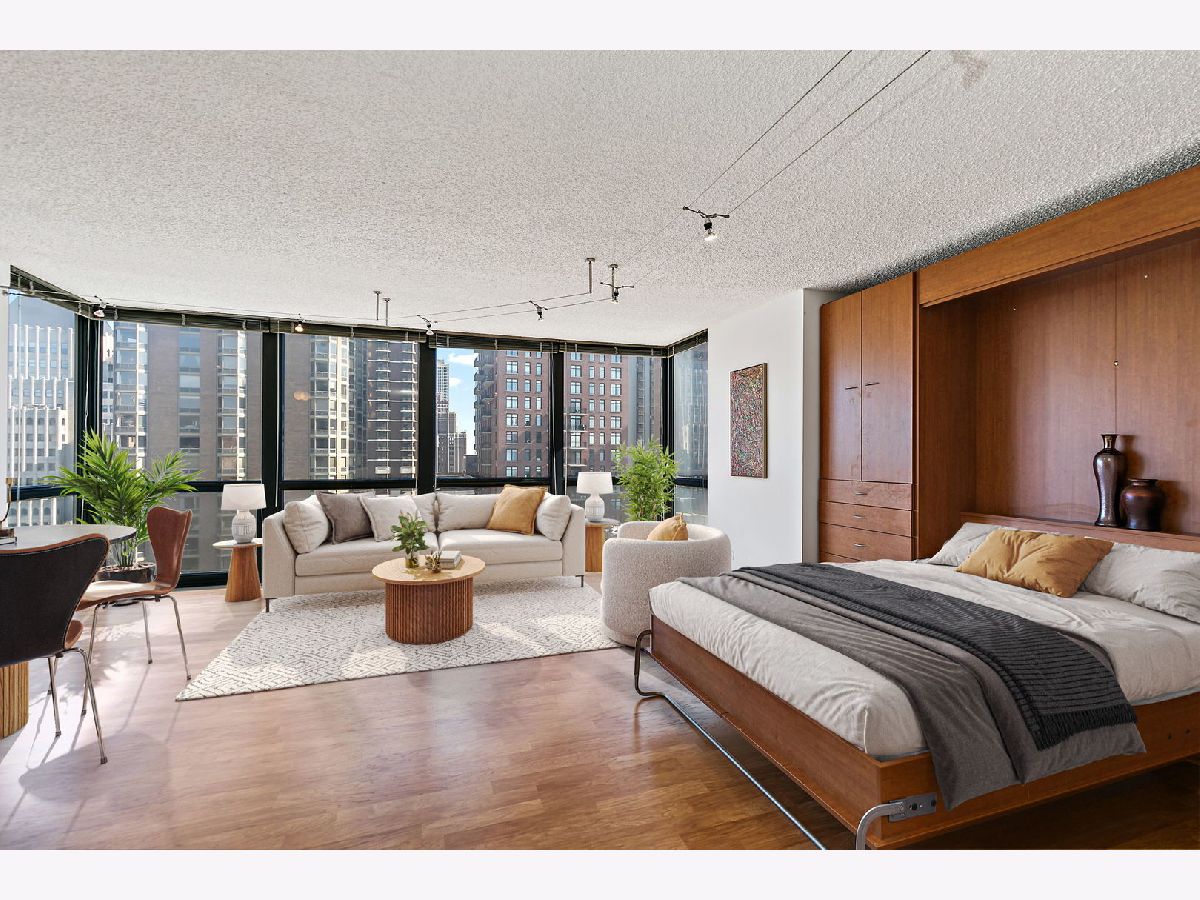 Enjoy breathtaking panoramic city views from this beautifully designed studio end unit condo in the heart of Chicago's prestigious Gold Coast, where floor-to-ceiling windows flood the spacious living area with natural light and create an inviting, open atmosphere perfect for both relaxing and entertaining. The thoughtfully designed layout features a Murphy bed with built-in storage, maximizing functionality, while the corner kitchen offers abundant cabinet space, new stainless steel stove and dishwasher, and a charming eat-in area ideal for casual meals or morning coffee. A generous walk-in closet with custom organizers and a full bath provide everyday convenience and organization. Residents enjoy true resort-style living with premium amenities including a sparkling outdoor pool and sundeck, covered grilling area, fully equipped fitness center, party room, bike room, and the peace of mind of a 24-hour doorman. Nearly all utilities are included (except electric), along with a dedicated storage area, and a garage parking space is available for an additional $25,000. Perfectly situated just steps from public transportation including the Red Line, premier shopping, acclaimed restaurants, and the lakefront at Oak Street Beach, this exceptional home offers the ideal blend of luxury, convenience, and vibrant city living.