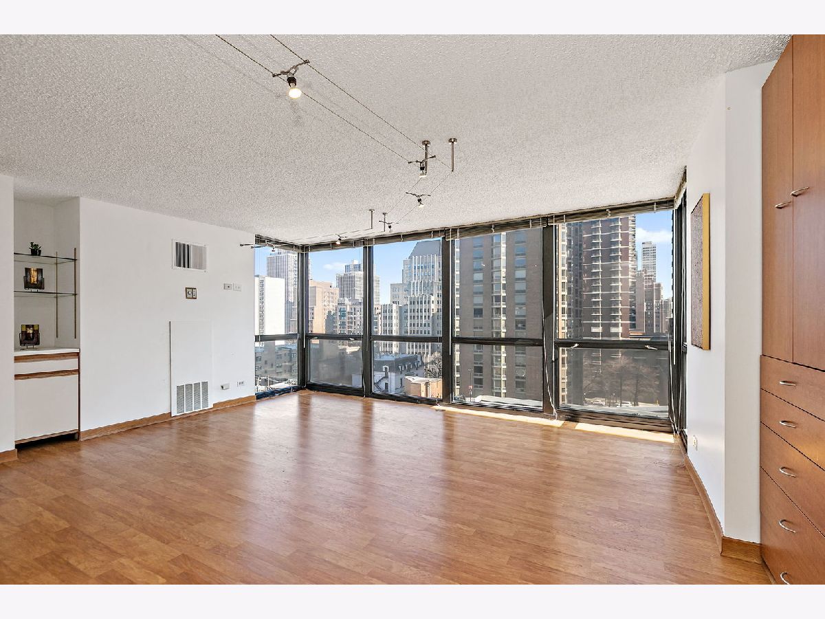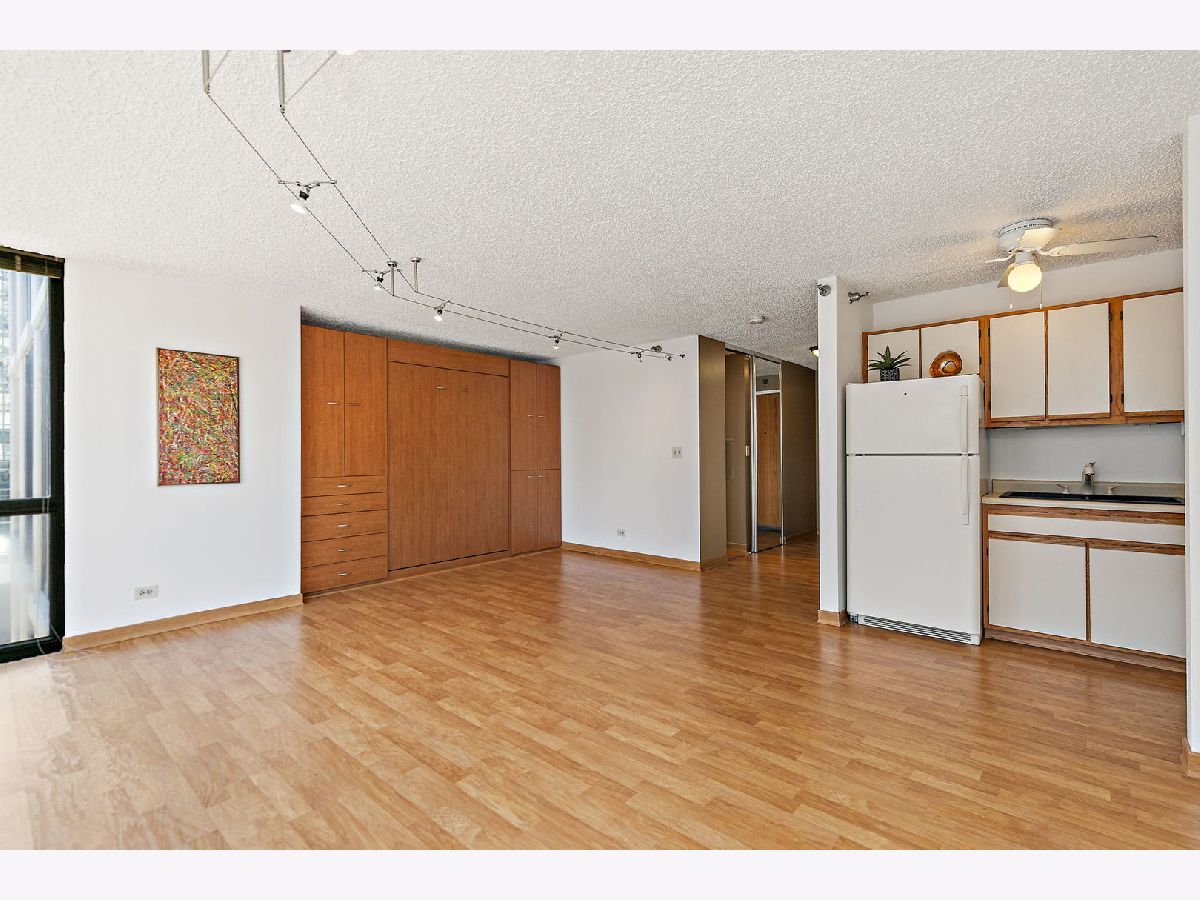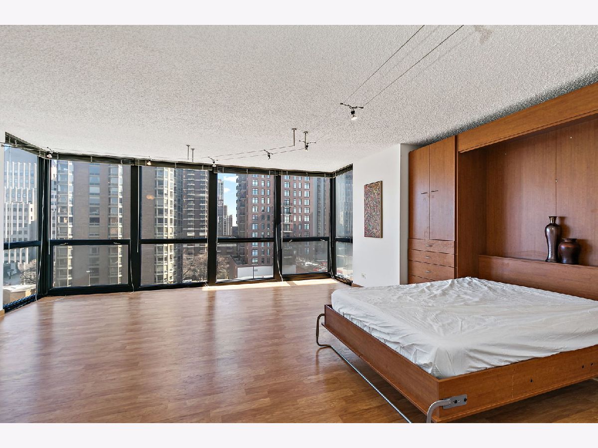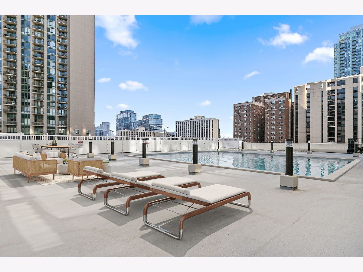 Enjoy breathtaking panoramic city views from this beautifully designed studio end unit condo in the heart of Chicago's prestigious Gold Coast, where floor-to-ceiling windows flood the spacious living area with natural light and create an inviting, open atmosphere perfect for both relaxing and entertaining. The thoughtfully designed layout features a Murphy bed with built-in storage, maximizing functionality, while the corner kitchen offers abundant cabinet space, new stainless steel stove and dishwasher, and a charming eat-in area ideal for casual meals or morning coffee. A generous walk-in closet with custom organizers and a full bath provide everyday convenience and organization. Residents enjoy true resort-style living with premium amenities including a sparkling outdoor pool and sundeck, covered grilling area, fully equipped fitness center, party room, bike room, and the peace of mind of a 24-hour doorman. Nearly all utilities are included (except electric), along with a dedicated storage area, and a garage parking space is available for an additional $25,000. Perfectly situated just steps from public transportation including the Red Line, premier shopping, acclaimed restaurants, and the lakefront at Oak Street Beach, this exceptional home offers the ideal blend of luxury, convenience, and vibrant city living.