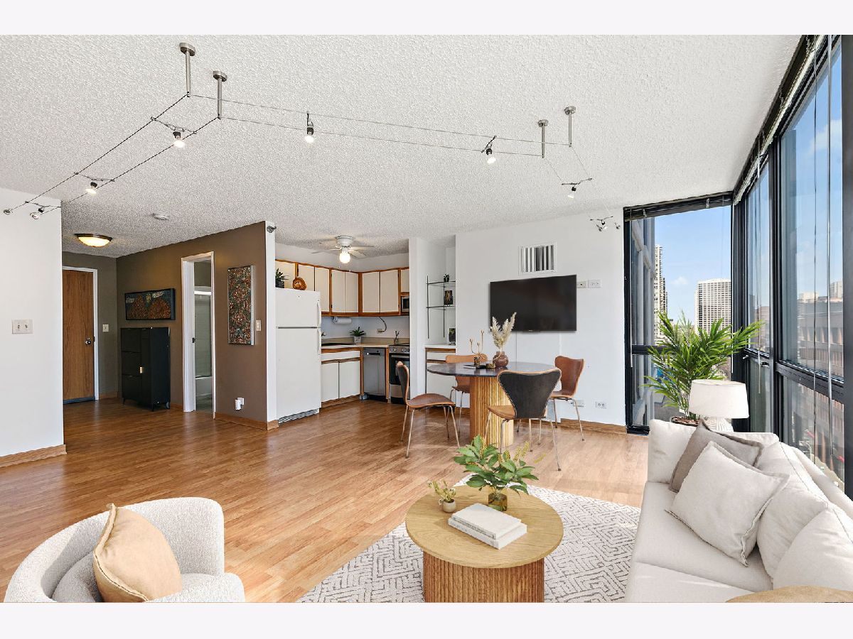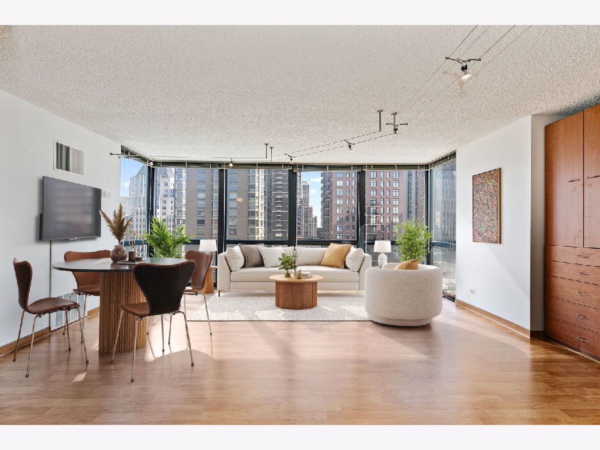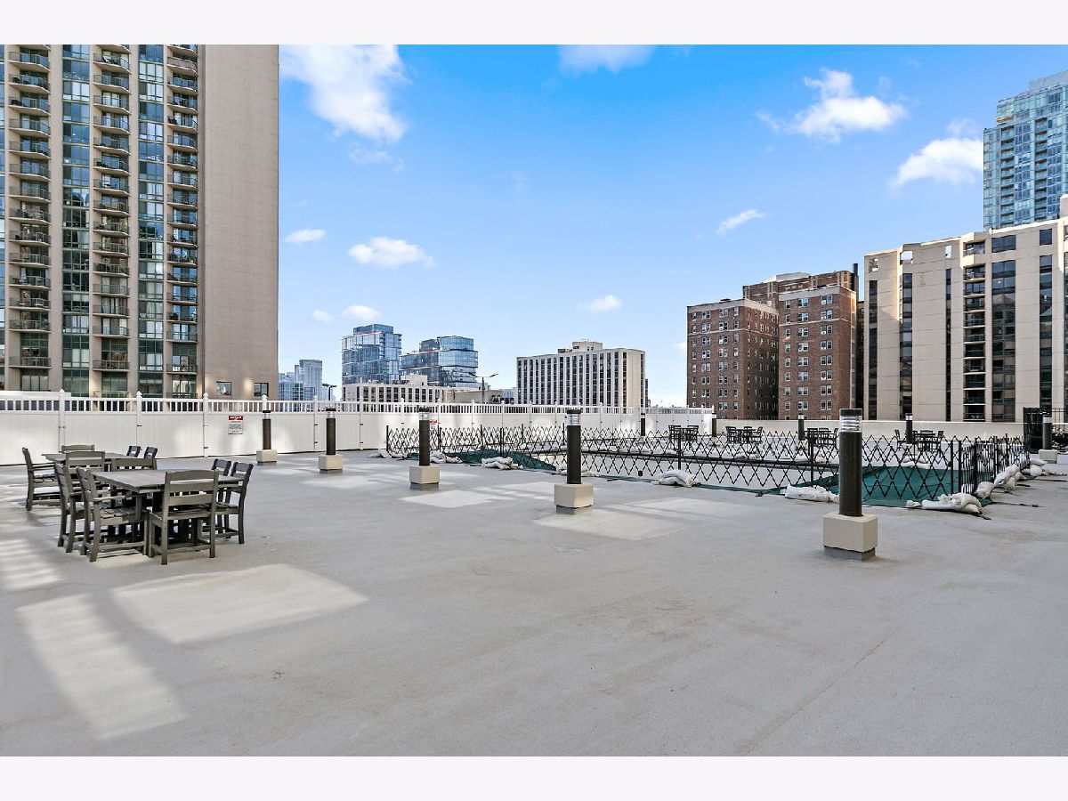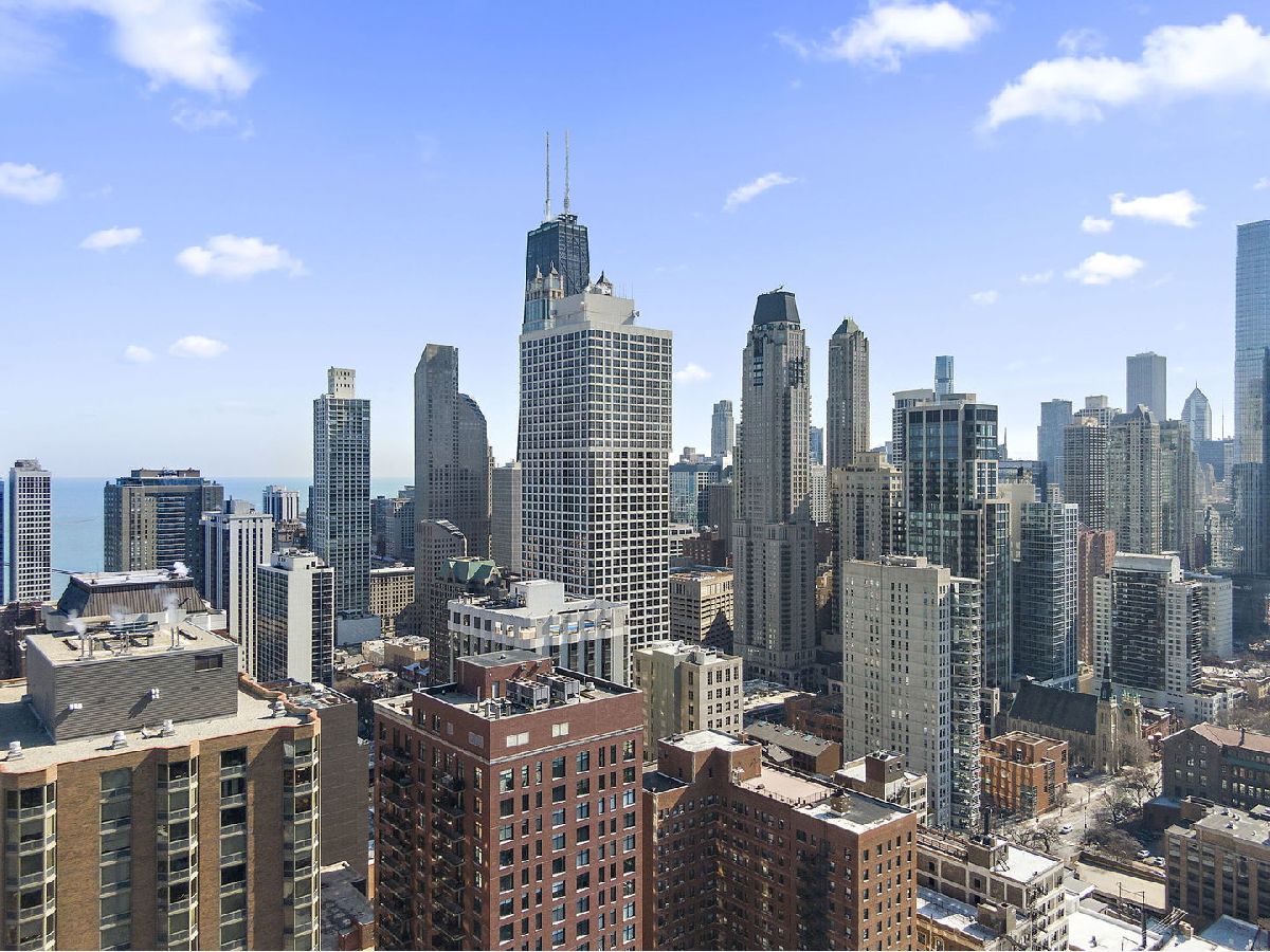 Enjoy breathtaking panoramic city views from this beautifully designed studio end unit condo in the heart of Chicago's prestigious Gold Coast, where floor-to-ceiling windows flood the spacious living area with natural light and create an inviting, open atmosphere perfect for both relaxing and entertaining. The thoughtfully designed layout features a Murphy bed with built-in storage, maximizing functionality, while the corner kitchen offers abundant cabinet space, new stainless steel stove and dishwasher, and a charming eat-in area ideal for casual meals or morning coffee. A generous walk-in closet with custom organizers and a full bath provide everyday convenience and organization. Residents enjoy true resort-style living with premium amenities including a sparkling outdoor pool and sundeck, covered grilling area, fully equipped fitness center, party room, bike room, and the peace of mind of a 24-hour doorman. Nearly all utilities are included (except electric), along with a dedicated storage area, and a garage parking space is available for an additional $25,000. Perfectly situated just steps from public transportation including the Red Line, premier shopping, acclaimed restaurants, and the lakefront at Oak Street Beach, this exceptional home offers the ideal blend of luxury, convenience, and vibrant city living.