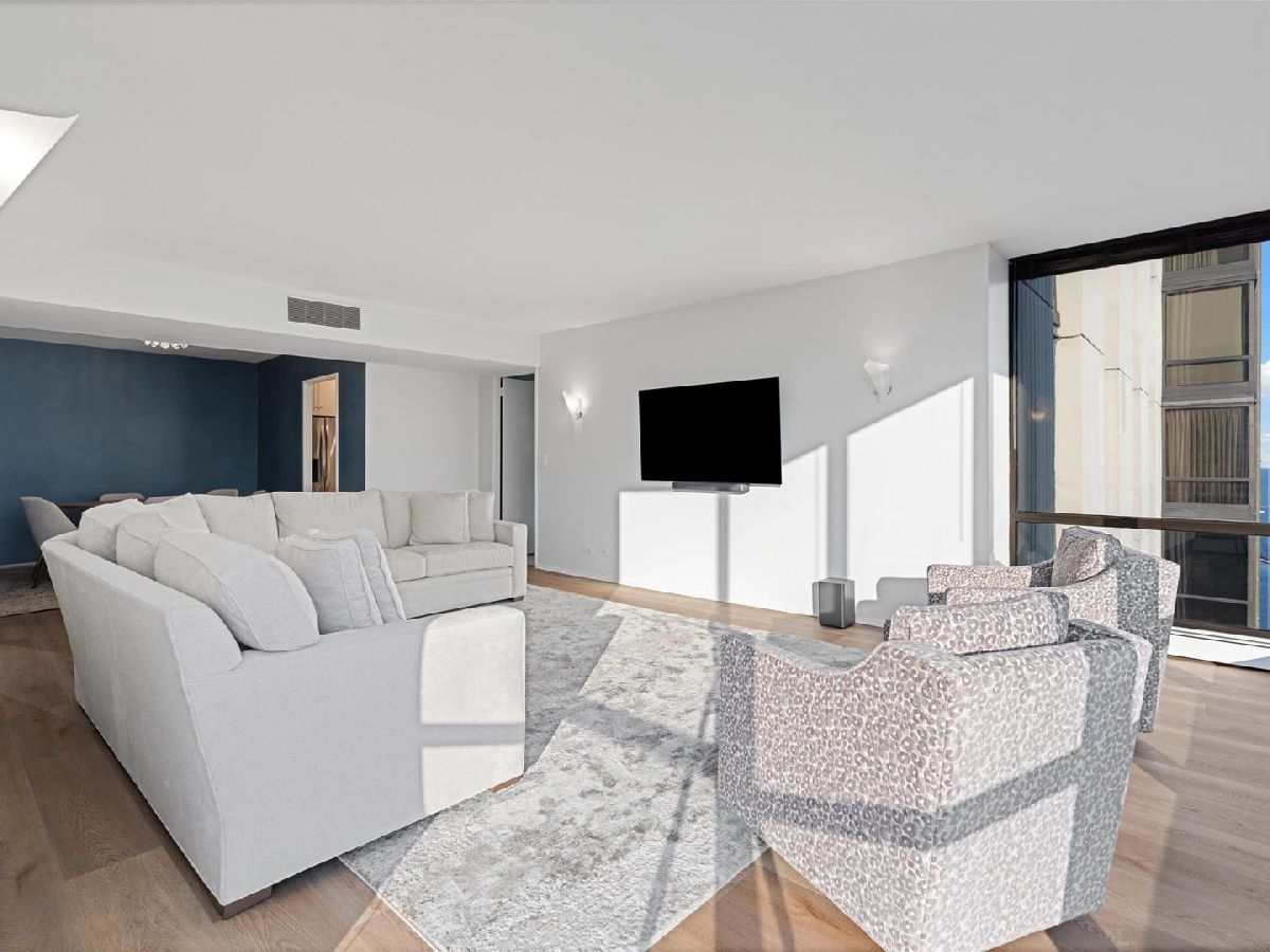 Perfectly situated in the heart of the Gold Coast on a picturesque, tree-lined street, this beautifully renovated residence at 100 E Bellevue combines timeless sophistication with modern comfort. Flooded with natural light, this special south-facing home showcases stunning lake and city views through expansive floor-to-ceiling windows. The thoughtfully designed split two-bedroom, two-bathroom layout was recently reconfigured to include the newly constructed second bedroom, creating a highly functional floor plan that balances privacy and flow. The refreshed interiors feature light finishes, and warm, inviting details throughout. The spacious living and dining areas provide the perfect backdrop for both entertaining and everyday living, anchored by an updated kitchen with sleek cabinetry, stainless-steel appliances, and elegant countertops. In addition to the new kitchen, there is new wall-to-wall carpeting in the primary bedroom, and new flooring in the living room, dining room, and second bedroom. The generous primary suite offers four closets-including a walk-in-and a private en-suite bath. A welcoming foyer with a large closet completes the thoughtful layout. Building amenities are exceptional: 24-hour door staff, rooftop pool, sun deck with grills, fitness center, hospitality room, bike room, laundry facilities, and on-site management. This light-filled Gold Coast gem steps from Michigan Ave and lakefront access offers an impeccable blend of elegance, comfort, and prime location.