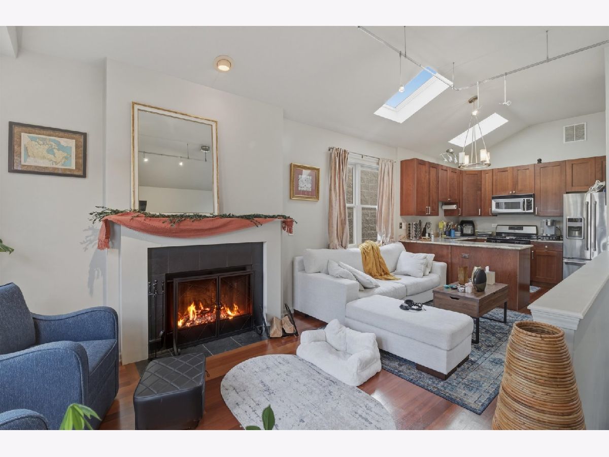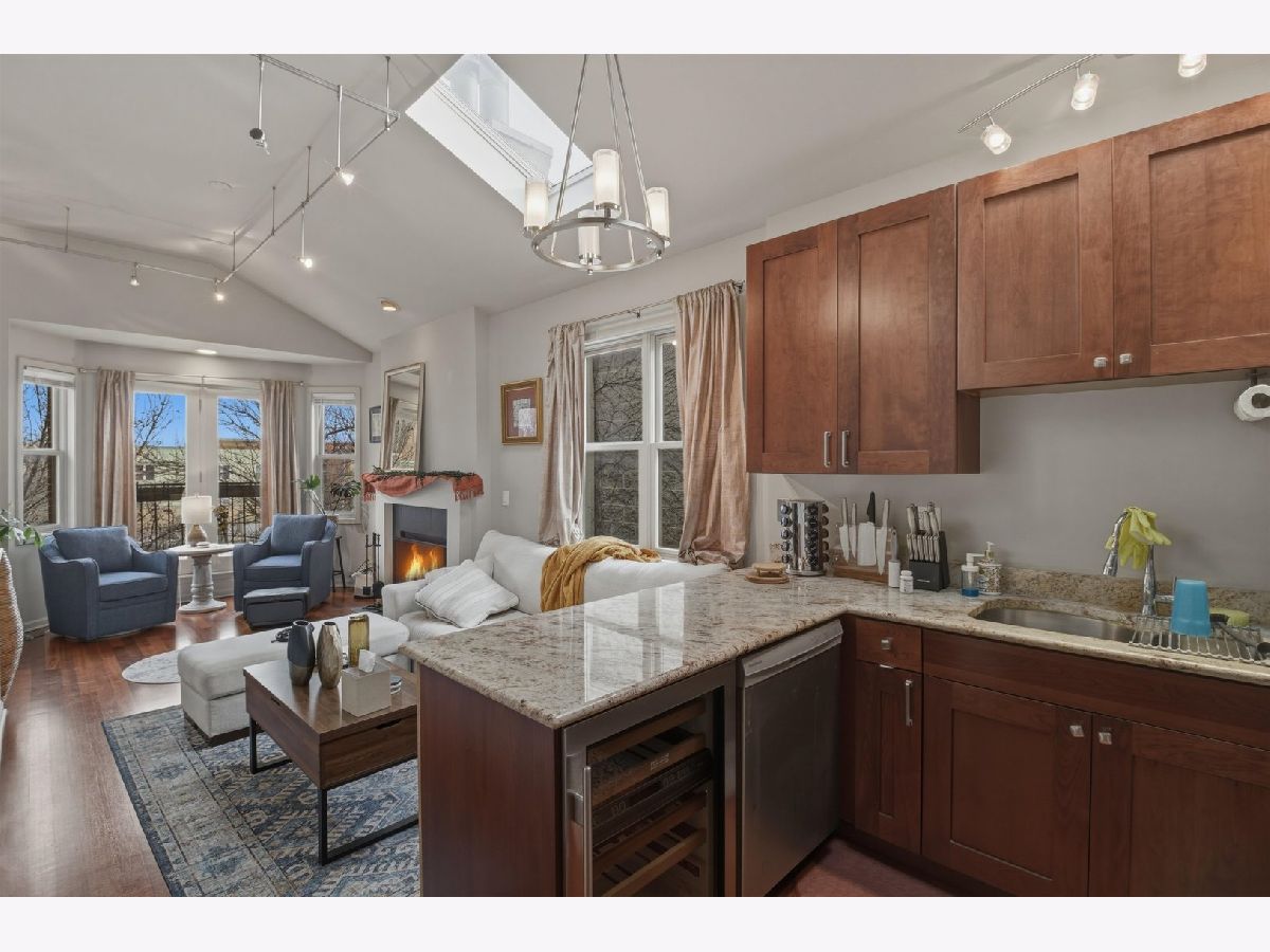 Thoughtfully renovated and full of character, this stunning 2-bedroom, 2-bath condo blends modern comfort with architectural charm. Vaulted ceilings and skylights flood the main living space with natural light, creating an open, airy atmosphere perfect for both everyday living and entertaining. A cozy wood-burning fireplace anchors the living area, while custom lighting on dimmers allows you to set the perfect ambiance day or night. The contemporary kitchen features stainless steel appliances, a built-in wine refrigerator, and a functional layout ideal for hosting or quiet evenings at home. Updated HVAC ensures year-round comfort, and in-unit laundry with a newer washer and dryer adds everyday convenience. Step outside to a private cedar deck offering sweeping city views - an inviting retreat for morning coffee or evening gatherings. The spacious primary suite includes generous closet storage and a private bath designed for comfort and privacy. One gated parking space is included, along with ample street parking for guests. Perfectly positioned near restaurants, nightlife, and entertainment, this home offers the best of city living right outside your door. Lease buy-out options may be available depending on offer terms.