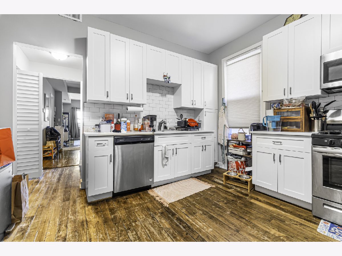 This well-maintained frame multi-unit in the heart of Avondale/Logan Square offers strong curb appeal and modernized interiors. The first-floor 3-bedroom, 1-bath unit and the second-floor duplex feature beautiful hardwood floors, white shaker kitchen cabinets, stainless steel appliances, in-unit laundry, and white subway tile bathrooms. Updated HVAC systems and recently replaced windows provide comfort and efficiency, while a two-car garage and lot add convenience. Situated on a quiet, tree-lined block, the property is steps from restaurants, boutiques, public transit, and major thoroughfares, making it perfect for owner-occupants or investors looking to live in one unit and rent the other or hold both for income.