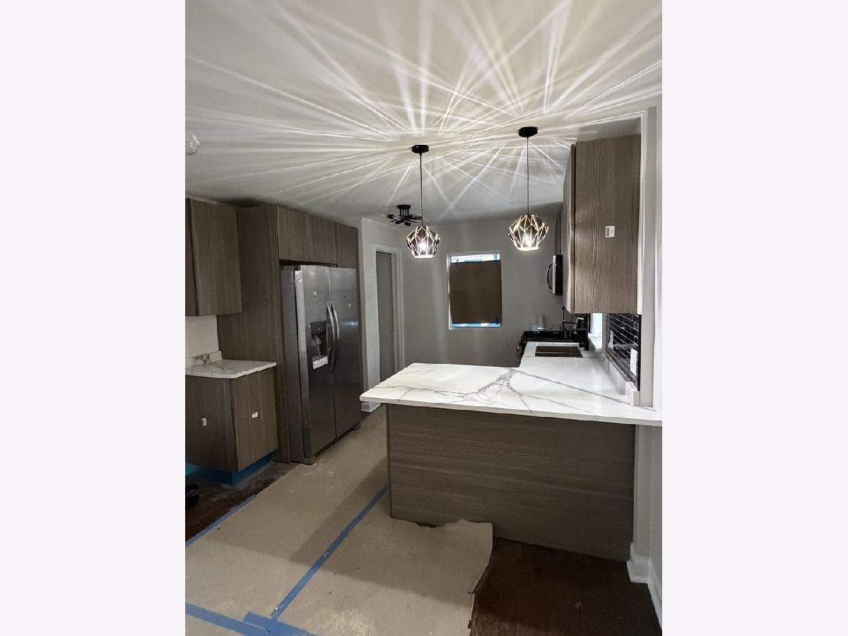 Must-see this beautifully rehabbed, spacious home! Step inside to gleaming hardwood floors that flow seamlessly through the living room, dining room, and kitchen. The stunning kitchen features quartz countertops, an island, and stainless steel appliances. The upper level offers two spacious bedrooms and a beautifully updated bathroom. The finished lower level includes an additional bedroom and a full bathroom with shower-perfect for guests or added living space. Enjoy brand-new concrete sidewalks from front to back, and a large backyard that leads to a 2-car garage. Truly move-in ready-just unpack and enjoy!