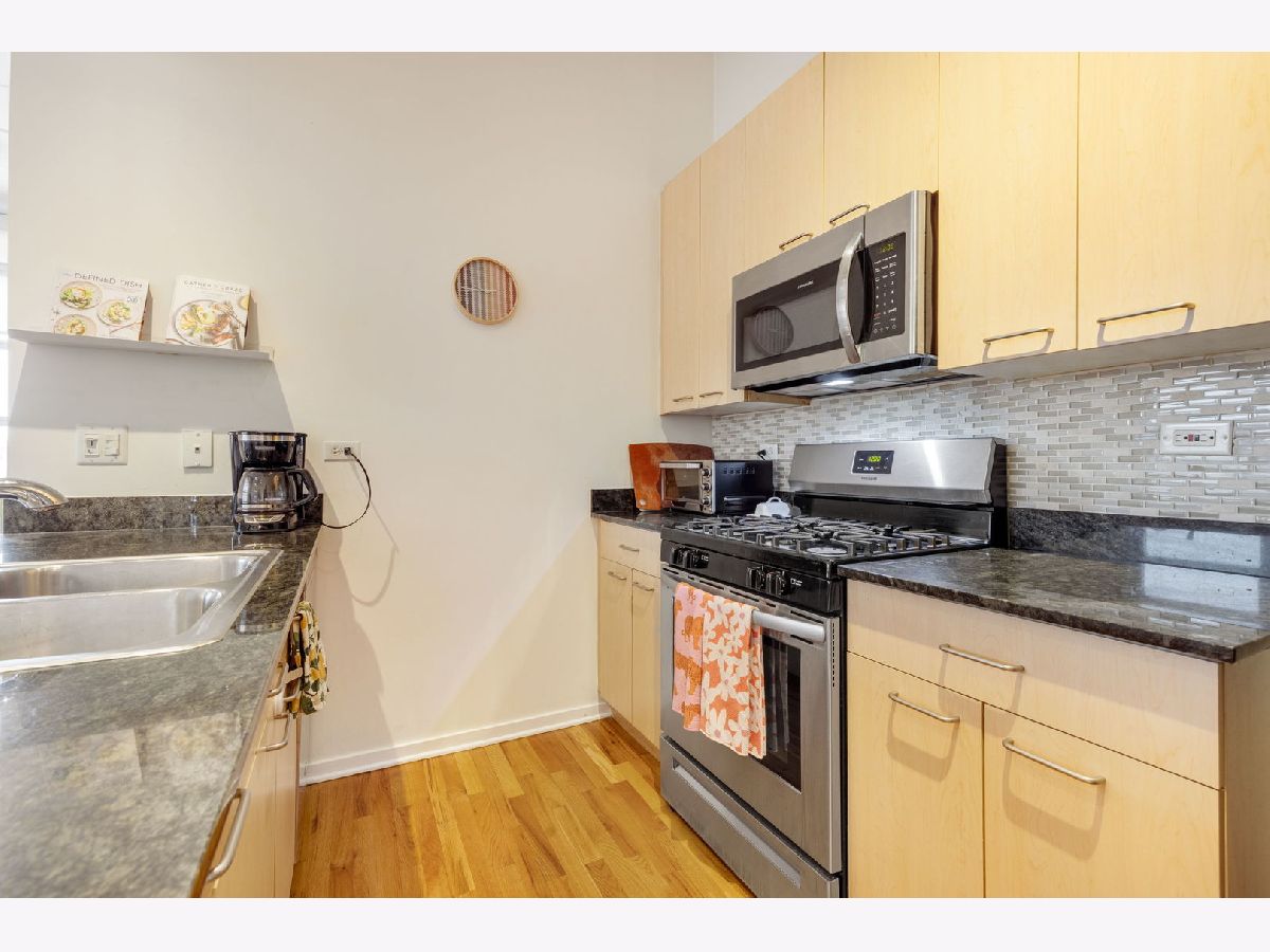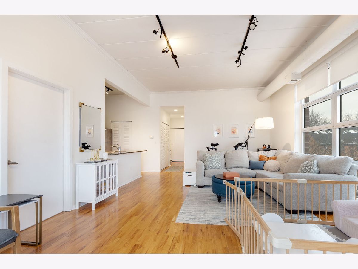 Wonderfully spacious two-bedroom home in the heart of Wicker Park and Bucktown area! Flooded with natural light, this updated unit features an open-concept living and dining area with oversized north-facing windows. The kitchen overlooks the dining space and includes a breakfast bar, perfect for casual dining and entertaining. The expansive primary bedroom offers a serene retreat and leads to a renovated ensuite bathroom with a spa-like walk-in shower. The generously sized second bedroom provides ample closet space and is perfect for nursery, guests or home office. An updated hall bath with tub and shower is nicely separate from the living space for guest privacy. The unit has also has a stackable washer and dryer and additional storage includes a 8x4 storage closet in the condo plus a separate storage space located in the common area on the 4th floor. Enjoy skyline views on the rooftop deck-ideal for relaxing or hosting guests. Outdoor parking is included in the price, and the building is pet-friendly. Centrally located between Wicker Park and Bucktown, this home is just steps from boutique shopping, top restaurants, and nightlife along North Ave, Milwaukee, Damen, and Division. Easy access to public transportation with the Damen Blue Line stop only 1.5 blocks away, the 606 bike trail, and all the amenities that make this neighborhood so desirable. Close to it all, yet perfectly comfortable at home.