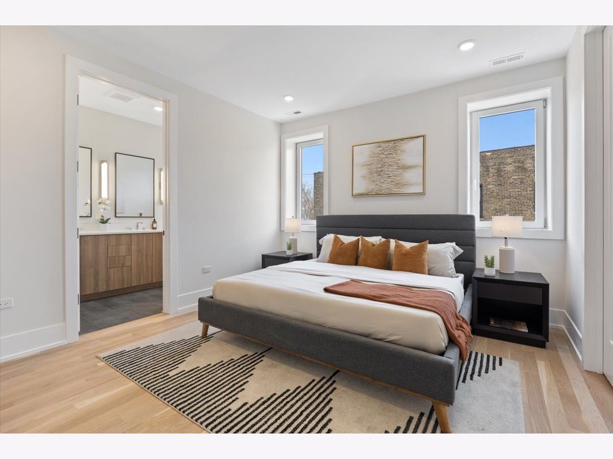 Experience boutique living in this new 8-unit elevator building by Platinum Homes, perfectly positioned across from Welles Park in the heart of Lincoln Square. Designed by LUX Design Group and 360 Studio, this 3 bed / 2 bath penthouse offers 2 private outdoor spaces, including interior stairs to a huge private roofdeck with city views, attached garage parking with EV charging capability. Inside, oversized windows and soaring ceilings flood the home with light. Concrete between floors ensures quiet living. Finishes include oak flooring throughout, custom cabinetry, quartz countertops, designer lighting, and premium Fisher & Paykel and Bosch appliances. A fireplace with custom built-ins anchors the living area, while the sunny front balcony offers direct views of Welles Park. Additional conveniences include, fully built-out closets, dry bar, and pergola. The primary suite boasts a spacious walk-in closet and bath with heated floors, dual sinks, and a steam shower. Unmatched location - located in Waters and Amundsen school districts and right across from Welles Park with tennis courts, pickleball, baseball fields, playground, pool, and nature walk. Just steps to Horner Park, the 312 Bike Path, Chicago River, Old Town School of Folk Music, Lutz Cafe, Jimmy's Pizza, Small Cheval, Davis Theater, Blacklot Coffee, the Brown Line and so much more. Surrounded by parks, shops, and restaurants, this is Lincoln Square living at its best. Pictures are of the model unit