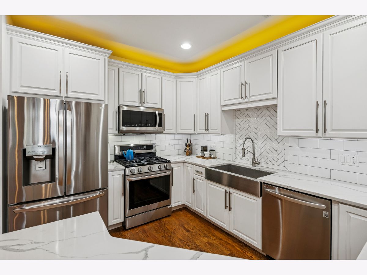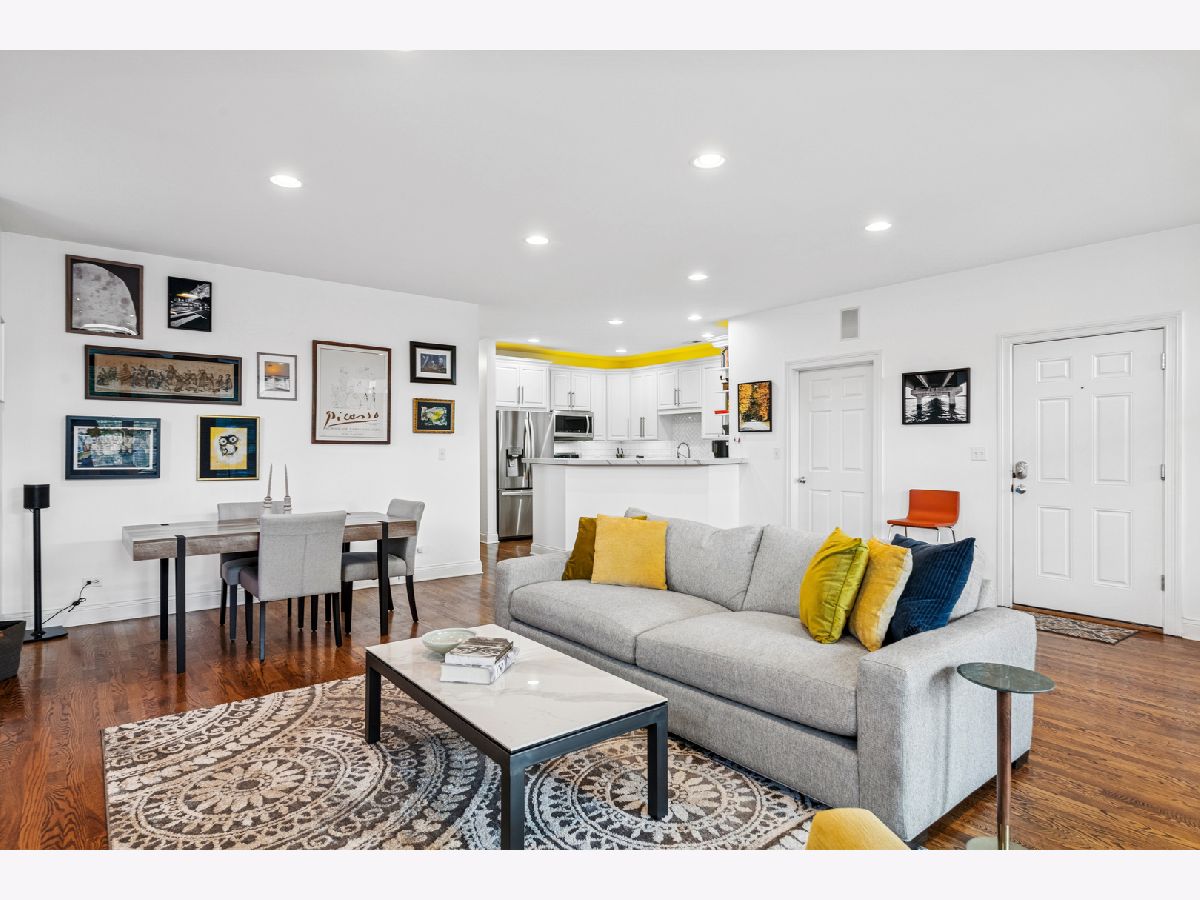 Live at the center of it all-just steps from Google, Randolph Street's renowned dining scene, Fulton Market's energy, and the neighborhood favorites of West Town. The home opens to a spacious living and dining room combination, offering plenty of room to spread out, entertain, or create multiple seating areas. A cozy wood-burning fireplace anchors the space, adding warmth and character-perfect for Chicago evenings. Living room is equipped with surround sound system. The elegantly updated kitchen (renovated in 2017) blends style and function with white cabinetry, quartz countertops, subway tile backsplash, and a farmhouse sink for a timeless look that will outlast the test of styles. Designed for both everyday cooking and entertaining, it seamlessly connects to the open layout. The generously sized primary suite is your private retreat, featuring a spa-inspired en-suite bathroom, shower includes a steam spa and ample space for a king bed, plus additional furnishings. A large private balcony extends your living space outdoors, ideal for grilling [gas grill hook up and is included], dining, or relaxing while overlooking a peaceful, tree-lined street. Floor-to-ceiling windows bathe the home in natural light throughout the day. Ample storage and an included garage parking spot complete this move-in-ready home in one of Chicago's most exciting neighborhoods.