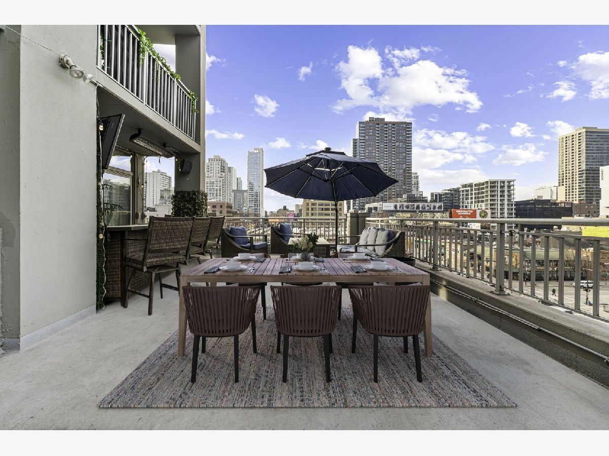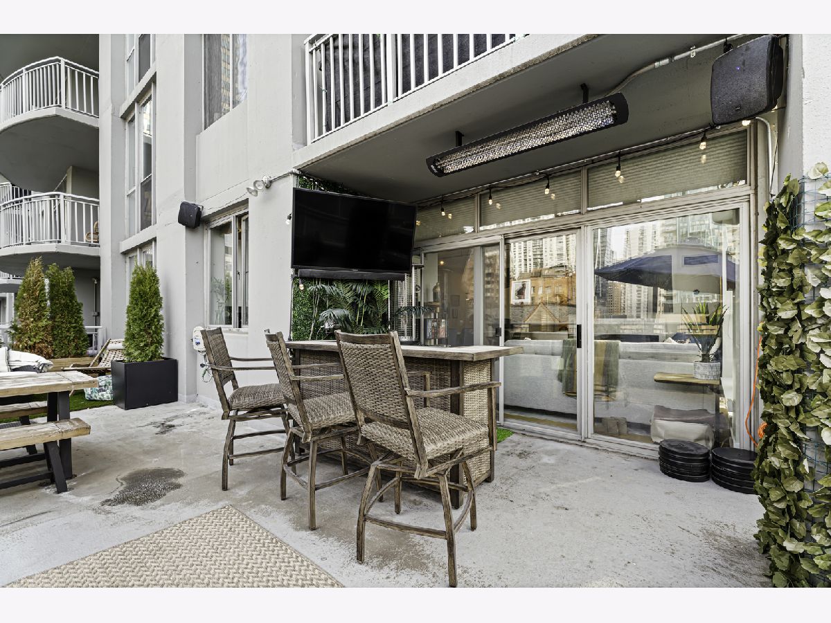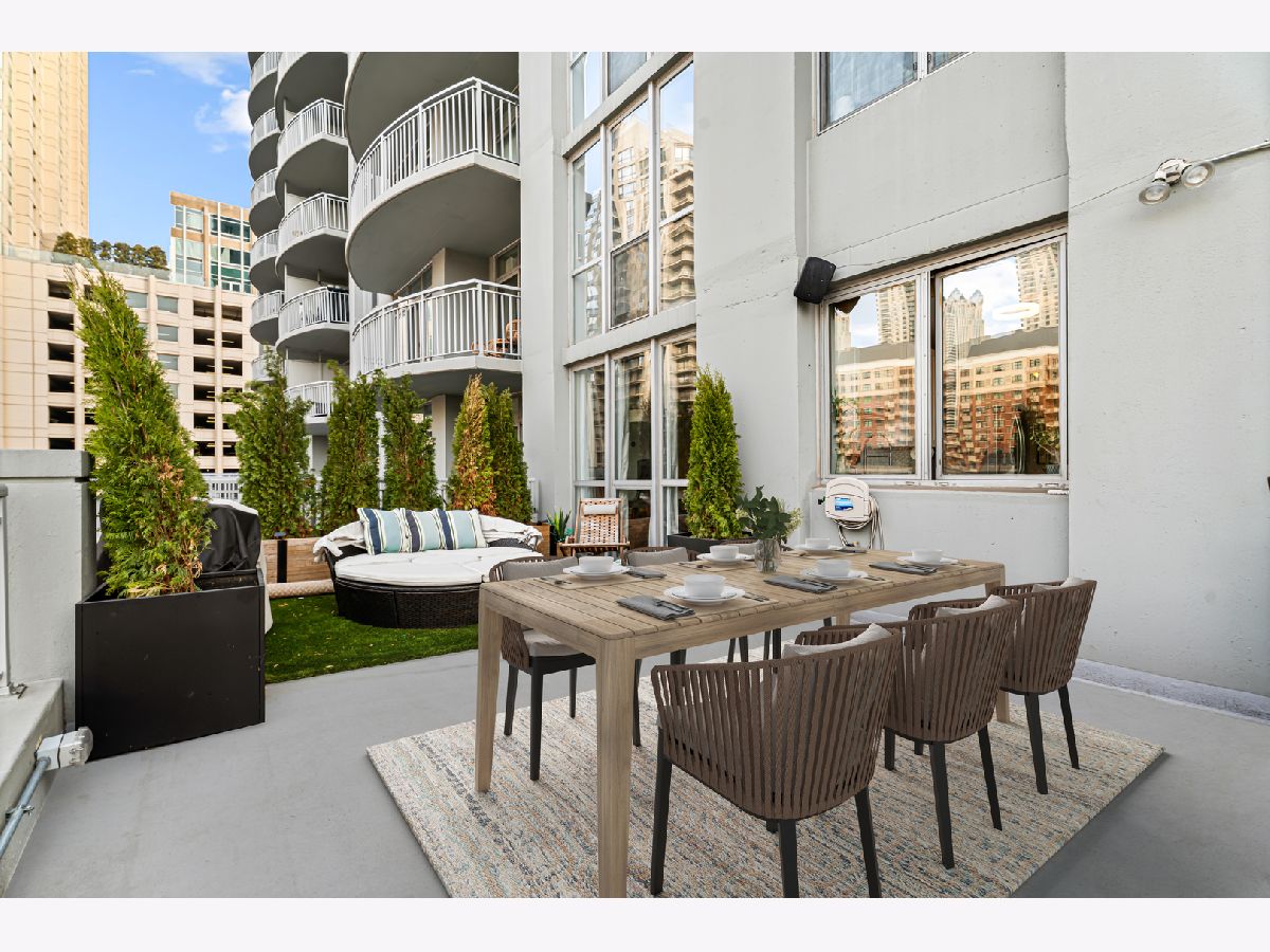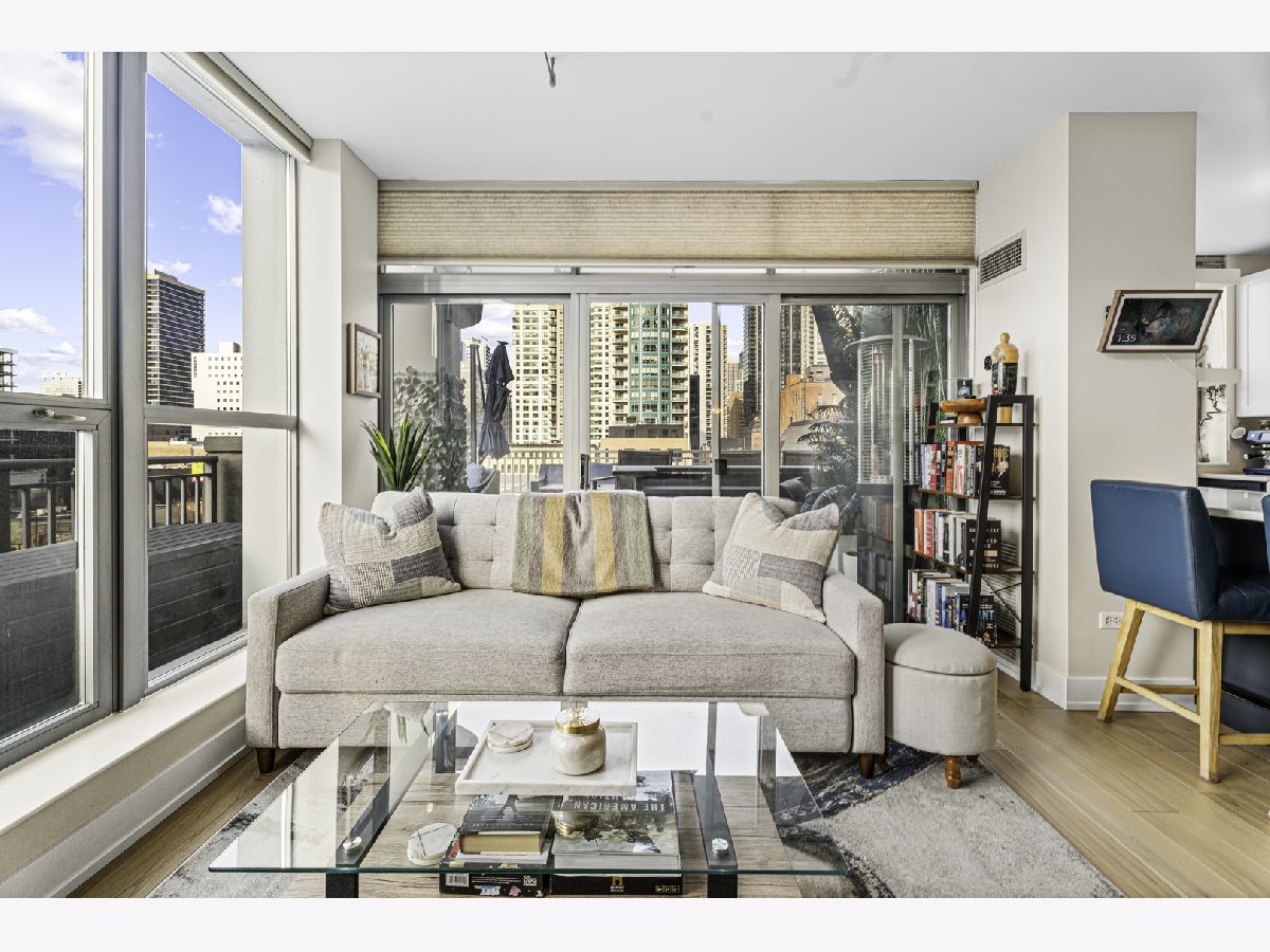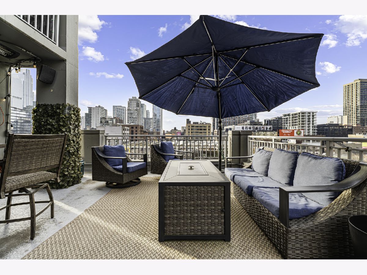 Experience elevated city living in this stunning 2 bedrooms/2-bathroom corner residence in the heart of River North. Floor-to-ceiling windows wrap the home in natural light while delivering dramatic skyline and sunset views. The open-concept living and dining areas flow seamlessly into a sleek, newly renovated kitchen featuring new cabinetry, waterfall stone countertops, a built-in wine fridge and bar, and all new stainless-steel appliances. A true standout is the expansive private terrace, fully upgraded with new electrical, lighting, TV hookup, heater (2024), and outdoor bar, creating an incredible extension of your living space for all seasons. The serene primary bedroom includes a walk-through custom closet and a spa-like bath with heated floors, dual vanities, and a walk-in shower. A split-bedroom layout provides privacy for guests or home office needs. Additional features include in-unit laundry, storage, and a deeded garage parking space. Enjoy full-service living in a well-managed building offering 24-hour door staff, fitness center, sundeck, hospitality suite, party room, dry-clean lockers, and on-site management. Monthly assessments include heat, gas, cable, and internet. All of this only steps from the Riverwalk, Ohio Street Beach, the CTA, premier shopping, dining, and nightlife.