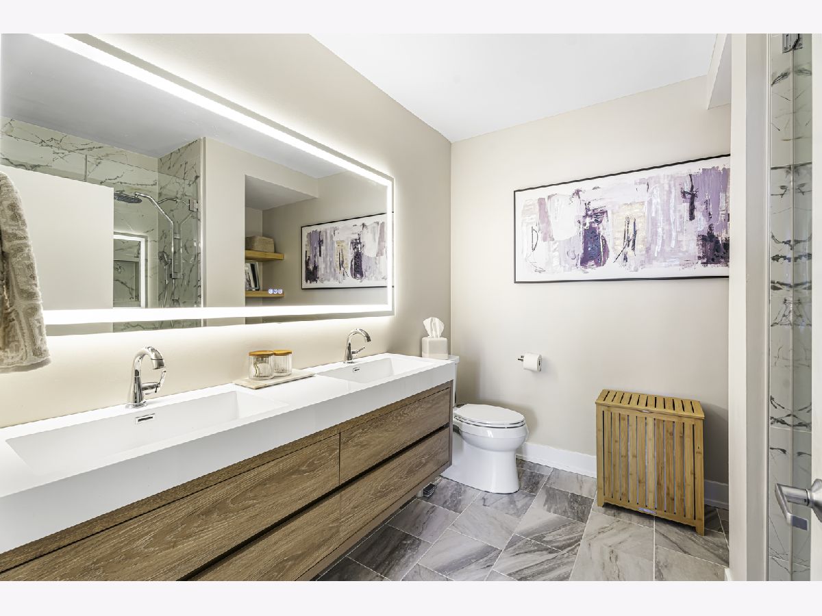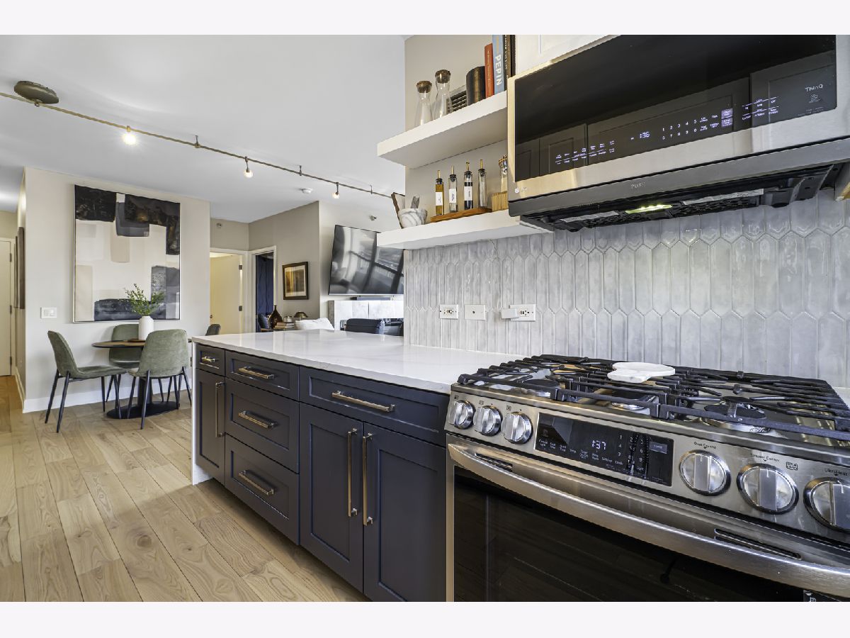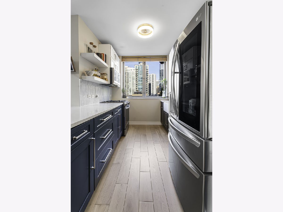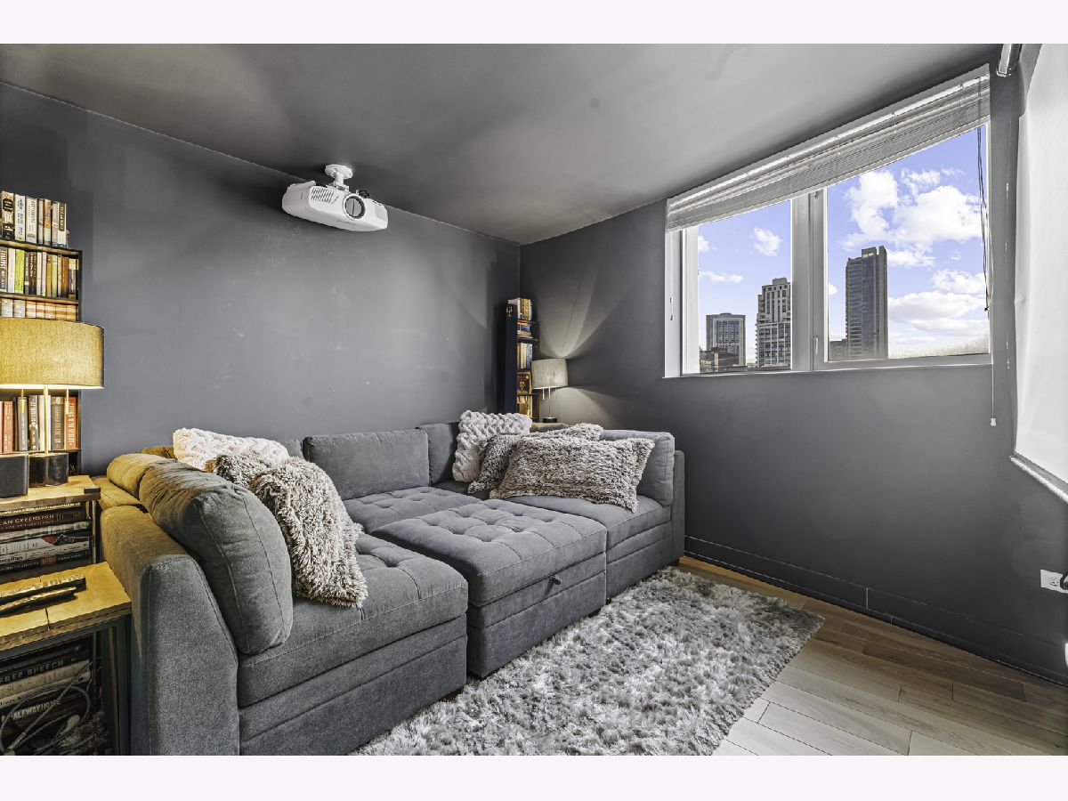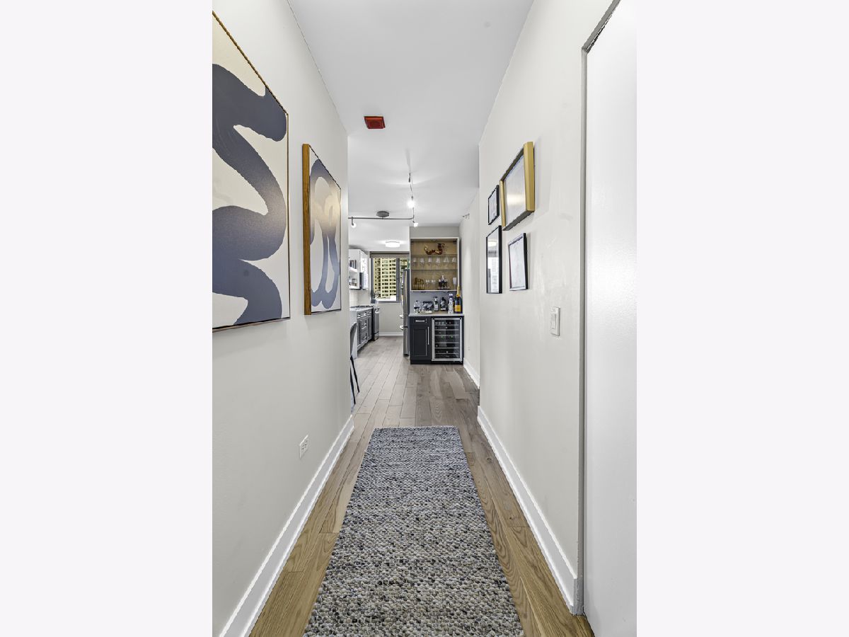 Experience elevated city living in this stunning 2 bedrooms/2-bathroom corner residence in the heart of River North. Floor-to-ceiling windows wrap the home in natural light while delivering dramatic skyline and sunset views. The open-concept living and dining areas flow seamlessly into a sleek, newly renovated kitchen featuring new cabinetry, waterfall stone countertops, a built-in wine fridge and bar, and all new stainless-steel appliances. A true standout is the expansive private terrace, fully upgraded with new electrical, lighting, TV hookup, heater (2024), and outdoor bar, creating an incredible extension of your living space for all seasons. The serene primary bedroom includes a walk-through custom closet and a spa-like bath with heated floors, dual vanities, and a walk-in shower. A split-bedroom layout provides privacy for guests or home office needs. Additional features include in-unit laundry, storage, and a deeded garage parking space. Enjoy full-service living in a well-managed building offering 24-hour door staff, fitness center, sundeck, hospitality suite, party room, dry-clean lockers, and on-site management. Monthly assessments include heat, gas, cable, and internet. All of this only steps from the Riverwalk, Ohio Street Beach, the CTA, premier shopping, dining, and nightlife.