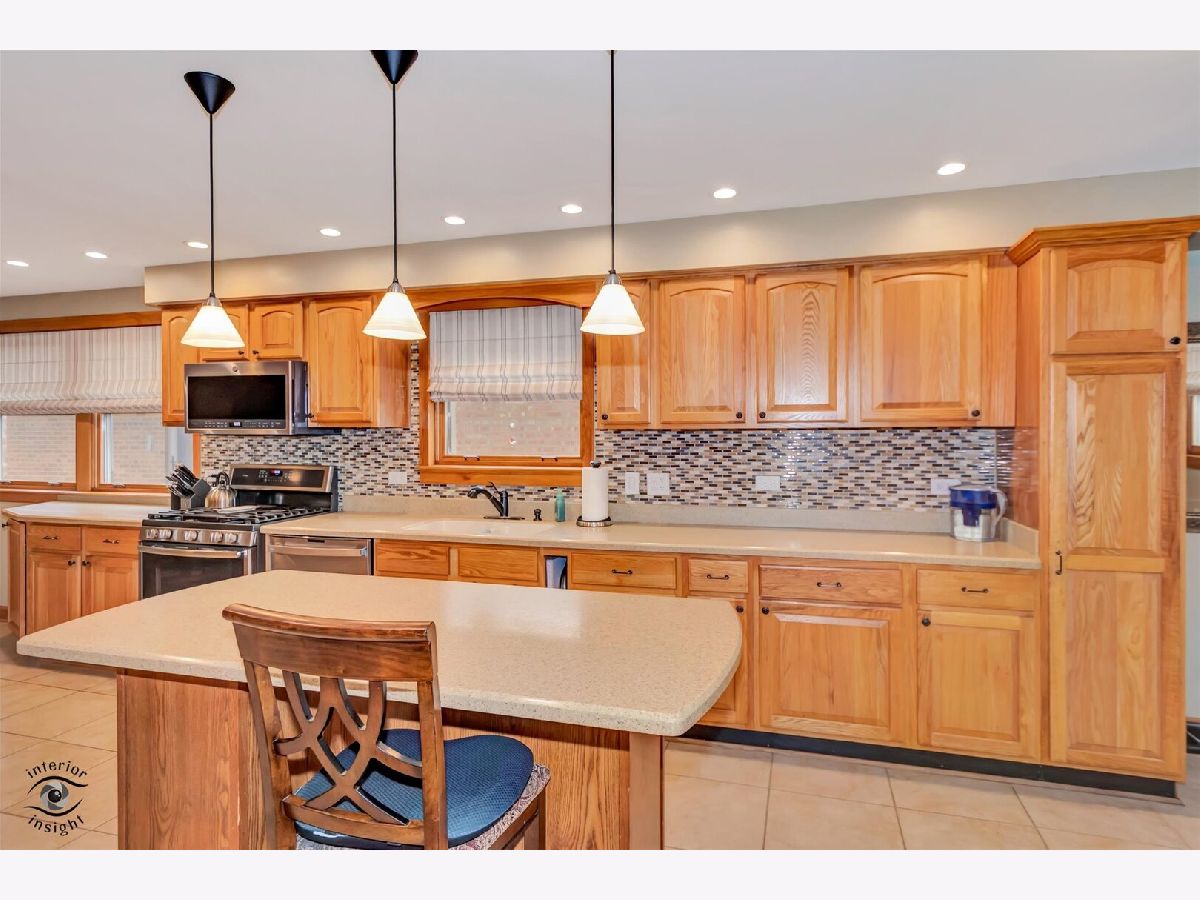 Immaculate & meticulously maintained classic Mt Greenwood home in sought-after location. Tons of living space & loads of upgrades. Formal living room features hardwood floors, recessed lighting & ceiling fan. Huge updated eat-in kitchen features Corian counters, custom oak cabinetry, ceramic floor, newer stainless appliances (2019), island, pendant lighting, 2 pantries, & beautiful glass backsplash. Great flexibility with 2 bedrooms and full remodeled bath on main level. 2nd story addition features 3 additional bedrooms, newer wood flooring (2019), open storage area, & fantastic master suite with walk-in-closet, glass barn door (2019), & private luxury bath w/walk-in shower and whirlpool tub. Full beautifully finished basement (2015) features family room with stone fireplace & vinyl wood flooring, kitchenette w/granite counters & wine fridge, & office or workout room. Solid wood six panel doors, French drain tile in basement (2015), WICs throughout, sump pump with battery backup (2019), main level hardwood refinished (2020), upper level laundry hook up, newer front door (2020), 2 newer screen doors (2020), newer air conditioning unit (2020), newer furnace upstairs (2023), all windows updated & working, newer tankless hot water heater (2024), & new roof (2022)! Exterior space includes newer concrete patio, heated pool w/newer liner (2023), beautiful custom deck (2015), fully fenced yard, & 1 car attached garage with newer epoxy floor (2019). The attention to detail and impressive finishes and maintenance in this home are superior- you have to see it to believe it! This home is a rare find in an amazing location!