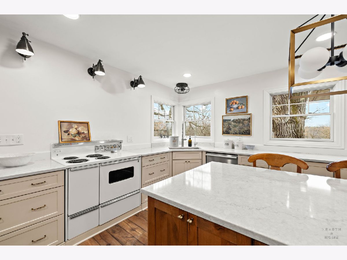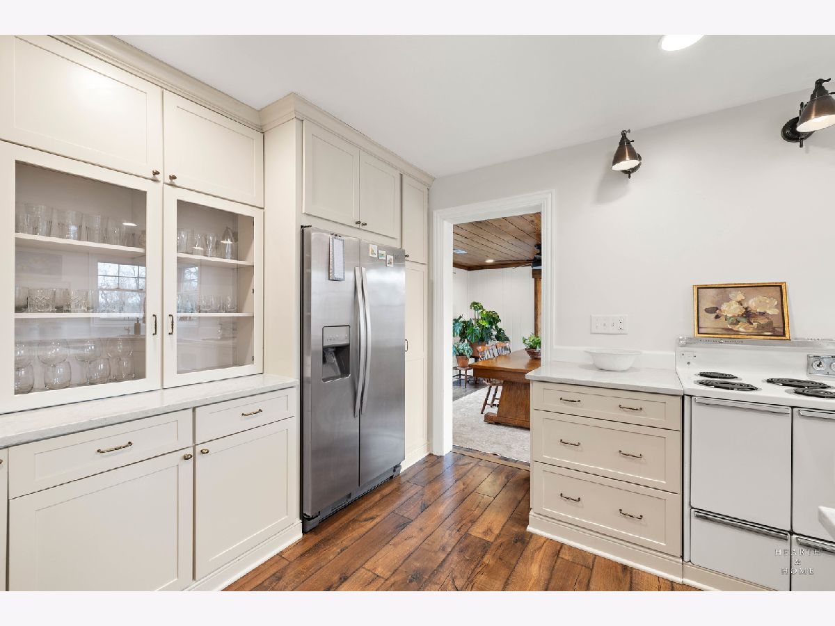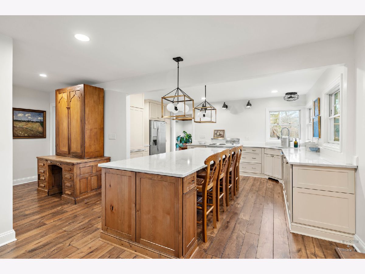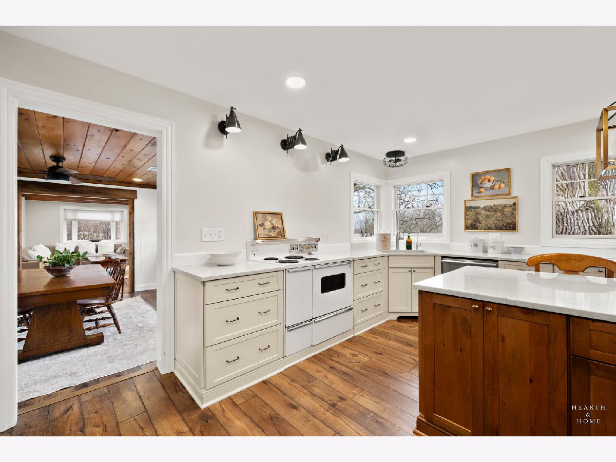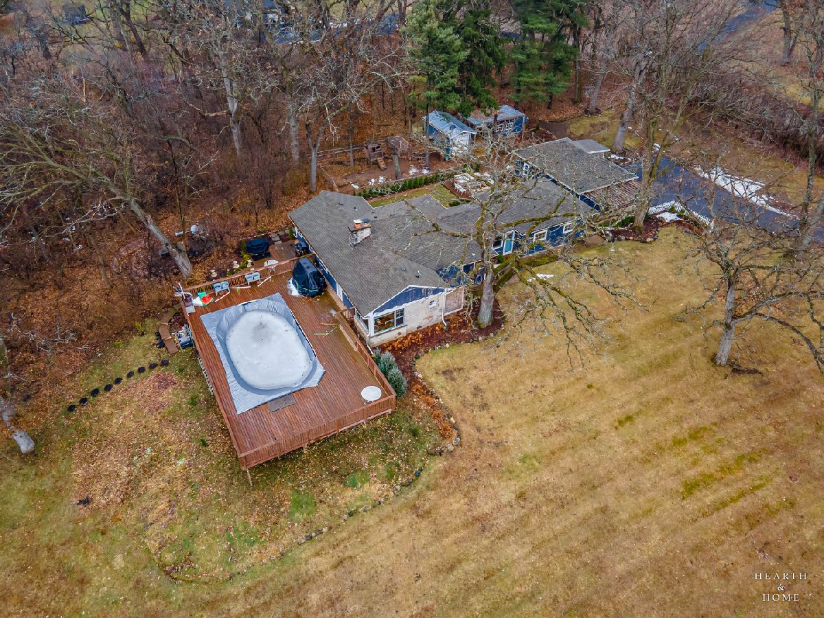 Welcome to this unique opportunity on over 3 scenic acres in Crystal Lake-a property that blends privacy, space, and thoughtful updates. A spacious living room, creating a flexible and comfortable layout. Wood laminate flooring runs throughout, complemented by newer Pella windows that bring in abundant natural light. The remodeled kitchen is the heart of the home, featuring a huge island, pantry, and ample workspace-perfect for everyday living and entertaining. The family room offers a cozy retreat with a wood-burning fireplace and wood beam mantel. Recent improvements include a new half bath and convenient laundry closet. The home offers 3 bedrooms, 1.5 baths, including a shared full bath. Outside is where this property truly shines. Enjoy the freedom of country living with a new 2+ car detached garage, garden area, above-ground pool, and deck-all surrounded by open space and mature land. Whether you're looking for room to grow, hobby space, or simply peace and privacy, this property delivers.