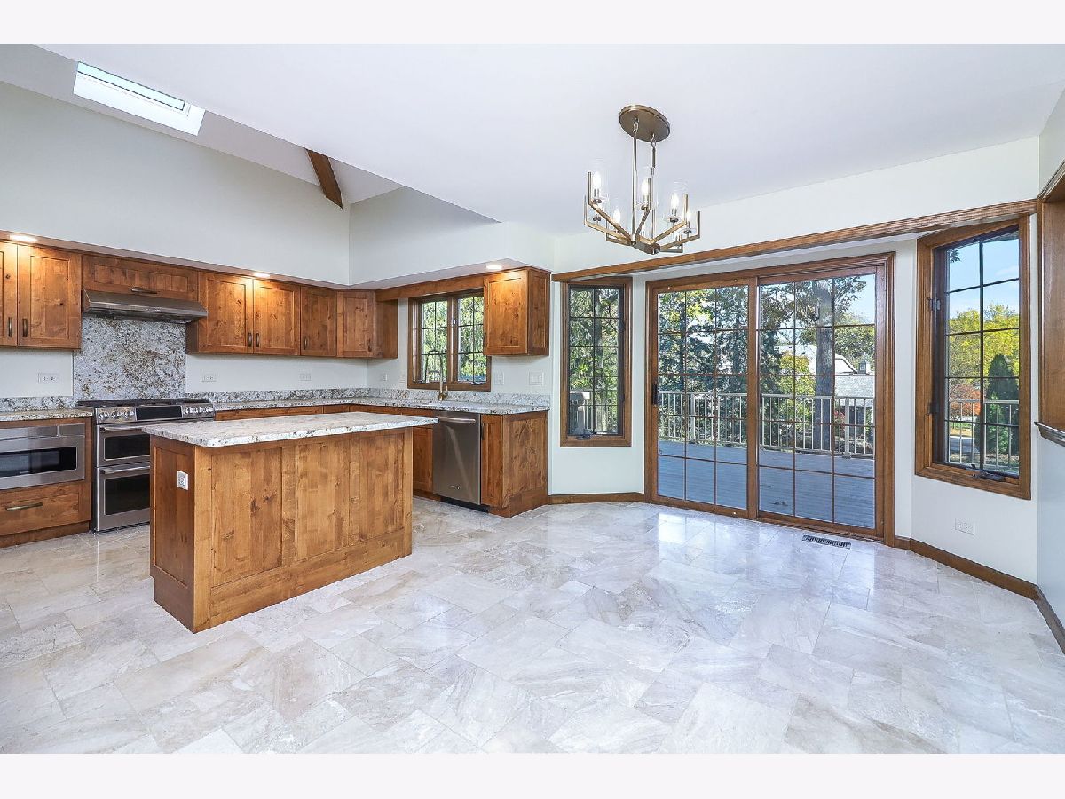 Beautifully updated 5-bedroom, 3-bath home in Darien's Carriage Way West neighborhood. Recent UPDATES include new carpet and hardwood floors (2025), new roof and water heater (2024), updated main level bath (2023), complete kitchen renovation with appliances (2021), new windows and sprinkler system (2020), and a renovated primary bath (2017). The chef's kitchen features a built-in Sub-Zero refrigerator, Bosch dishwasher, double oven, drawer microwave, beverage fridge, and freestanding ice maker. The open layout offers vaulted ceilings, a central fireplace, and access to a spacious composite deck overlooking the landscaped yard. A RARE MAIN FLOOR PRIMARY BEDROOM SUITE provides comfort and convenience, with two additional bedrooms and a full bath on the same level. Upstairs includes two bedrooms, a loft, full bath, and walk-in attic storage. The finished English basement with look-out windows adds versatile living space. Outstanding neighborhood close to parks, schools, dining, and shopping.