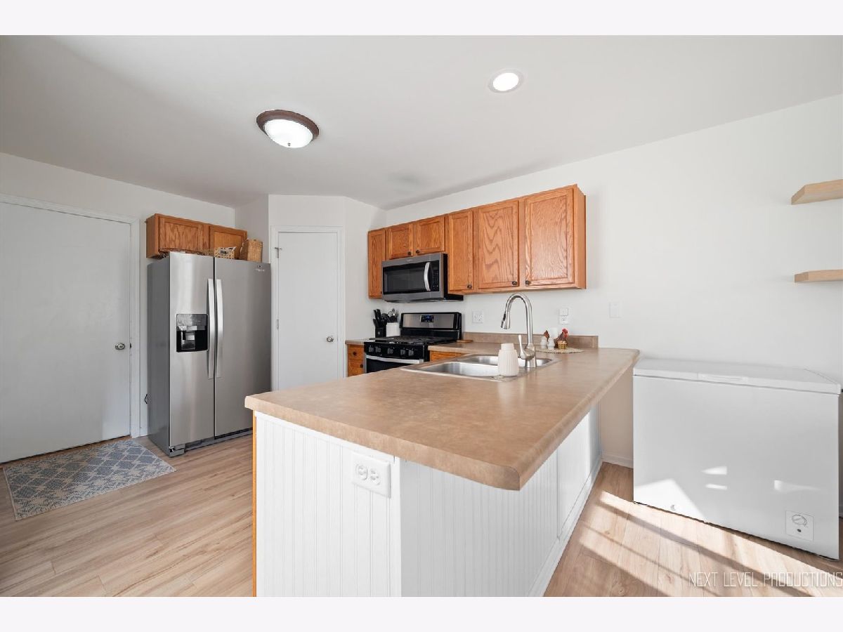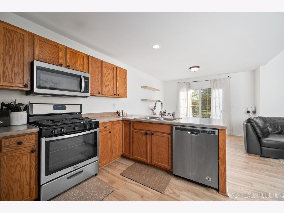 Stunning and fully updated Wineberry townhome-move-in ready and beautifully maintained! Convenient location near downtown DeKalb, Northern Illinois University, and downtown Sycamore. The home offers a private covered entrance leading to a bright two-story foyer and an open-concept main level, ideal for entertaining or everyday living. The living room features a soaring ceiling and dramatic two-story wall of windows, providing abundant natural light. The updated kitchen includes a full Whirlpool stainless-steel appliance suite (5-burner gas range), ample cabinetry, walk-in pantry, and peninsula island with breakfast bar seating for three. The adjoining dining area overlooks the private backyard. Upstairs, both bedrooms are spacious. The master suite offers a vaulted ceiling, shared bath with tub/shower, and a 10'x6' walk-in closet. The finished basement adds valuable living space with a family room, bar area, full bath with walk-in shower, storage, and a proper egress window--allowing for a possible third bedroom. Recent updates: Roof (2022), Flooring (2022), Furnace - induction motor & heat exchanger (2021), Water heater (2021), Driveway (2018). Perfect for first-time buyers, families, or investors seeking rental potential. Schedule your showing today!