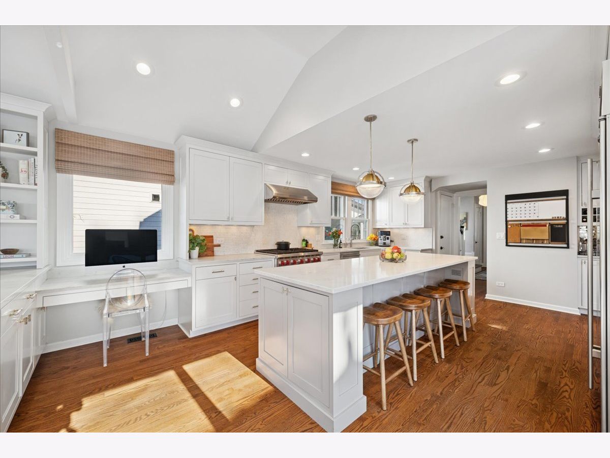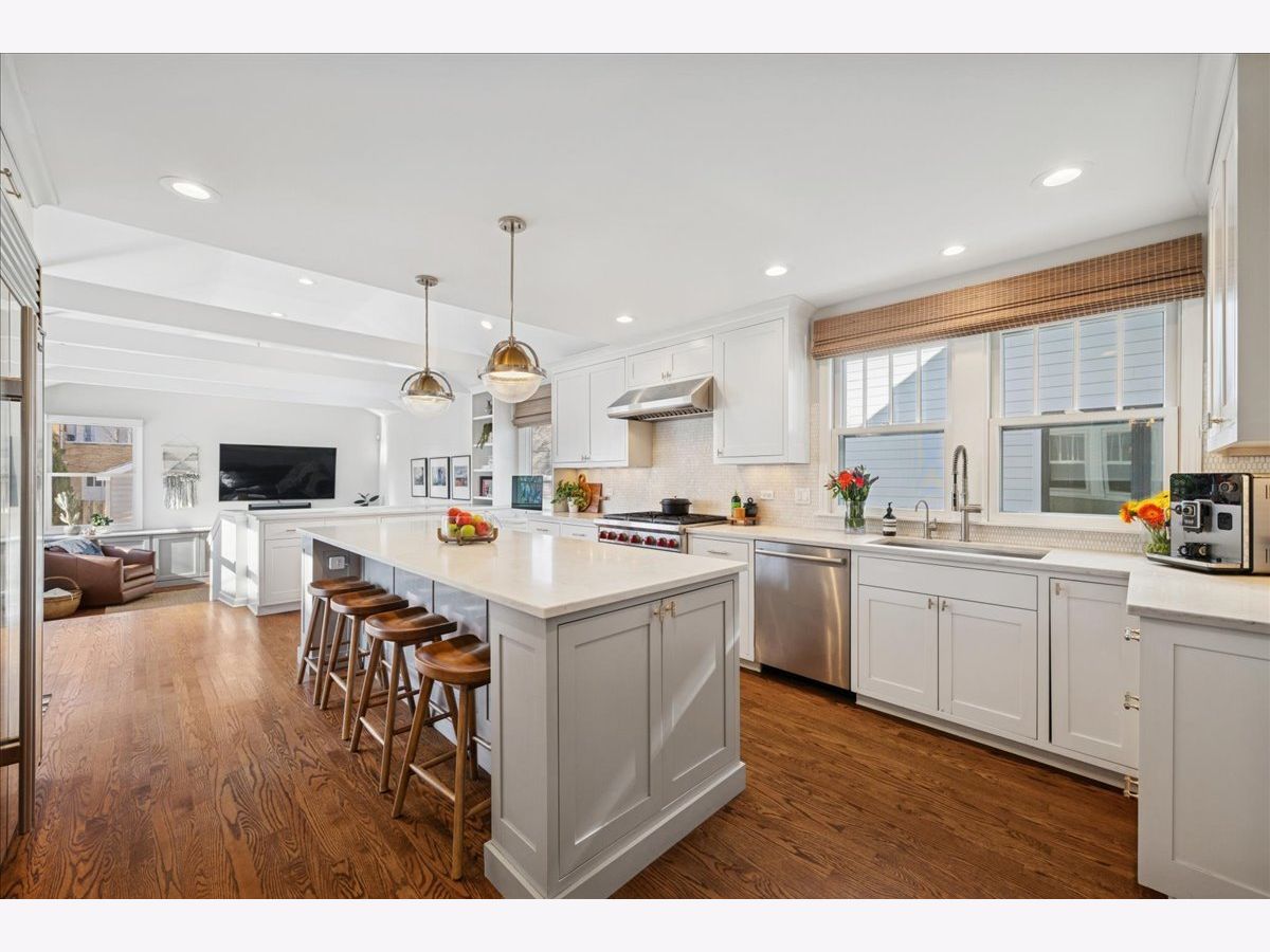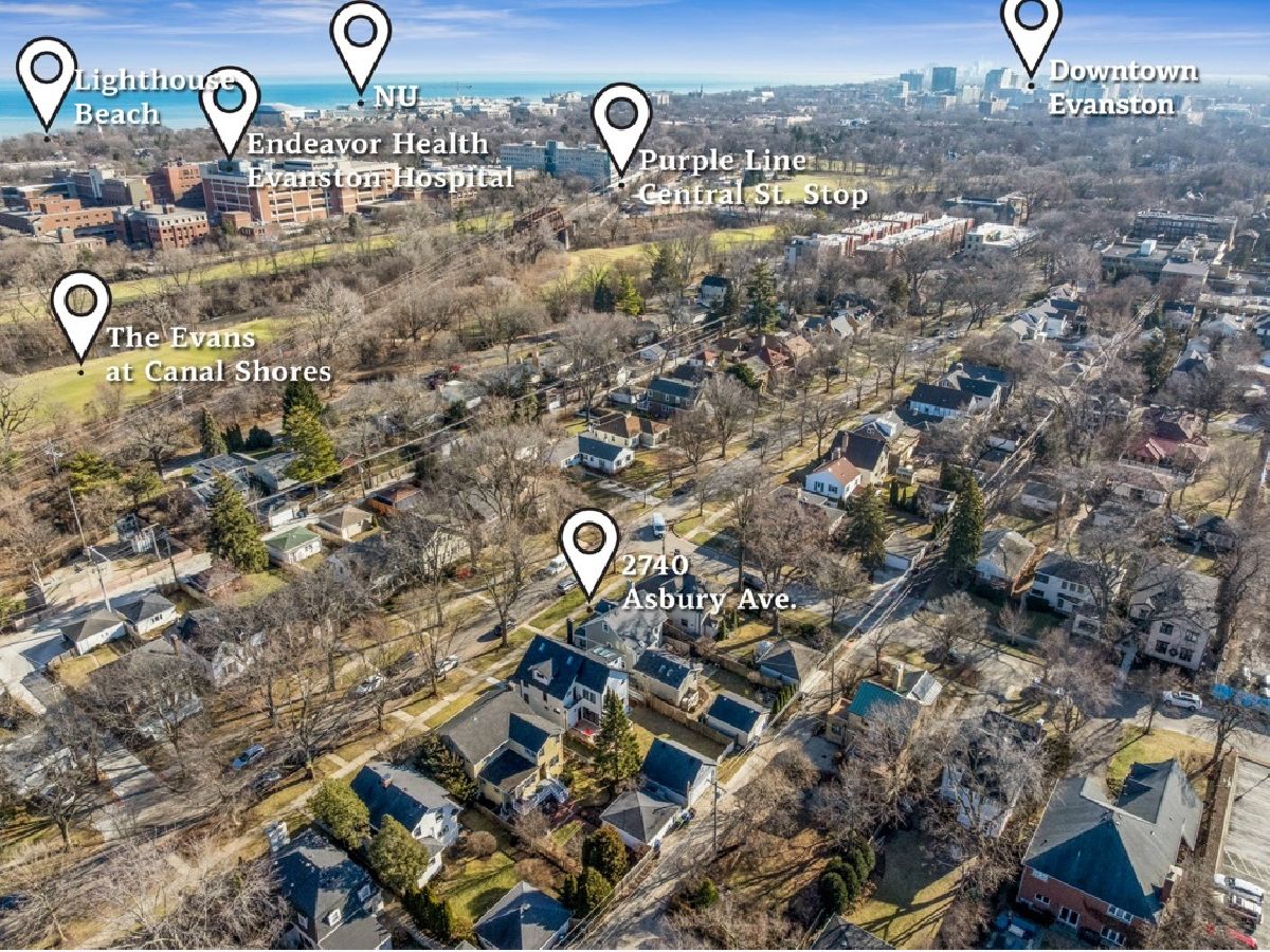 Welcome to 2740 Asbury Ave, a beautifully maintained 3-story home in the highly regarded Orrington School neighborhood. Positioned in one of the most convenient neighborhoods in NE Evanston, every feature of this bright, spacious, 4-bedroom home welcomes you in. With thoughtful design and luxurious finishes, this residence balances elegance and comfort, making it ideal for both casual living and entertaining. The heart of this home is the gorgeous chef's kitchen with Sub-Zero fridge & 6-burner Wolf range. Custom shaker cabinets offer abundant storage, and the quartz counters along with a 9.5 ft island & built-in desk, create multiple areas to cook, dine, work & study. The kitchen leads to the family room with cathedral ceiling and skylights. This is the perfect place to lounge and binge TV or cheer on your favorite sports teams. A convenient mudroom leads to the foyer, and a pretty powder room completes the first floor. The focal point of the living room is the cozy gas fireplace surrounded by built-ins and complemented with a wall of bookshelves. Enjoy morning sun in the dedicated sunroom with window seating and lots of hidden storage. The separate dining room with large picture window overlooks the rebuilt deck and professionally landscaped backyard. The second floor highlights include three bedrooms and two full baths. The primary bedroom with ensuite bath features marble counters, heated floors and a built-in dressing room. In January 2024, the hall bath was gutted using high-end beautiful brushed gold Kohler fixtures, a timeless MCM vanity, glass shower enclosure with 10" round statement rainshower head and a separate hand-held sprayer. The new bath is complete with stylish Chevron wallpaper. The 3rd floor features a playroom and private 4th bedroom. The finished basement offers even more recreation space, storage and laundry. Outside, extensive improvements include rebuilding the deck using maintenance-free flooring, adding a 4-stool bar, extending the patio, adding a fire-pit circle and raised garden beds, with trellis. In addition, there's a newer 1.5-car garage. The landscape has been entirely refreshed with a mix of sun and shade plants, flowering trees and arbor vitae. For your peace of mind, the HVAC was replaced in 2021 with 2 high efficiency, whisper quiet systems, covering different zones with individualized thermostats. All this, in a wonderful neighborhood full of great Evanstonians and the best annual block party around. 2740 Asbury is minutes from Central St shopping and dining, Lighthouse Beach, Central St. train stations (El and Metra), Endeavor Hospital, NU's lakefront campus and sports complex, The Evans Golf Course and much more.