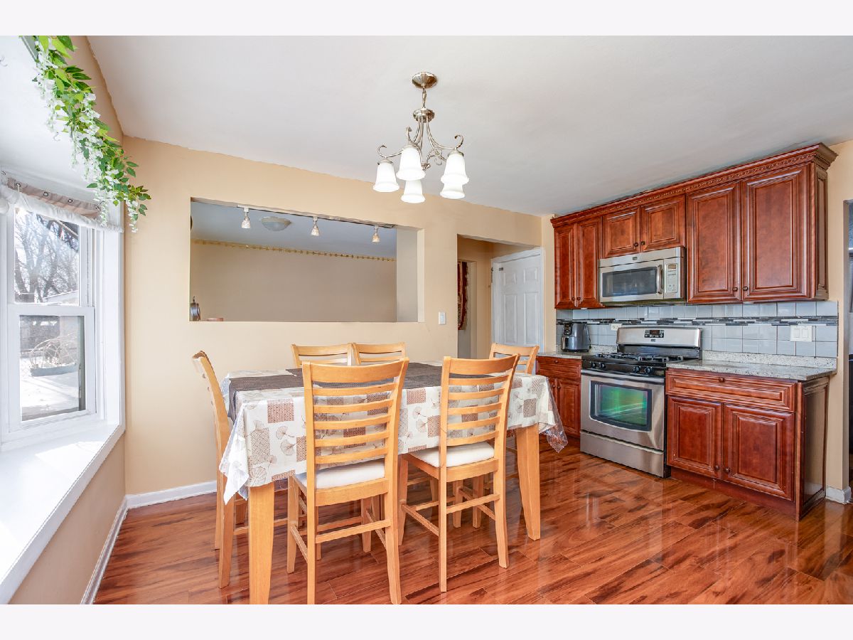 This bright and spacious 4 Bedroom and 2 Bath home has great curb appeal with a brick front, brick walk and a wide brick paver driveway. The main living area has hardwood floors along with the 4th bedroom / office featuring glass french doors.The remodeled kitchen offers upgraded cabinets, granite counters, stainless steel appliances and wide plank flooring plus a bay window for lots of natural light and views of expansive yard. Lots of storage space throughout with multiple closets, shelves in the garage and even a storage shed. The yard is great with mature trees, fencing, a beautiful brick paver patio with a fire pit. Newer roof, siding, concrete garage floor and water heater. Highly rated schools and close to everything including shopping, dining and Metra. Hurry by today.