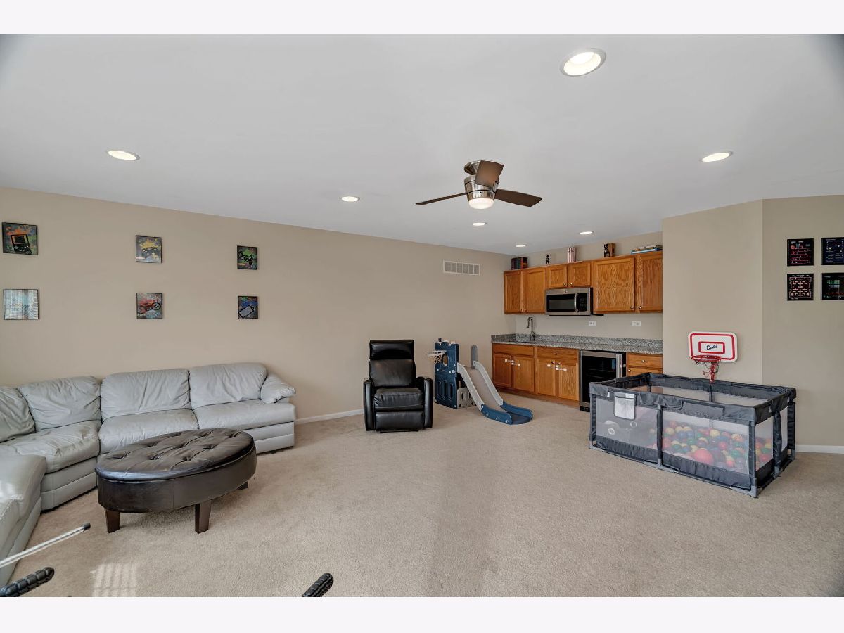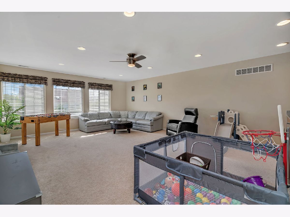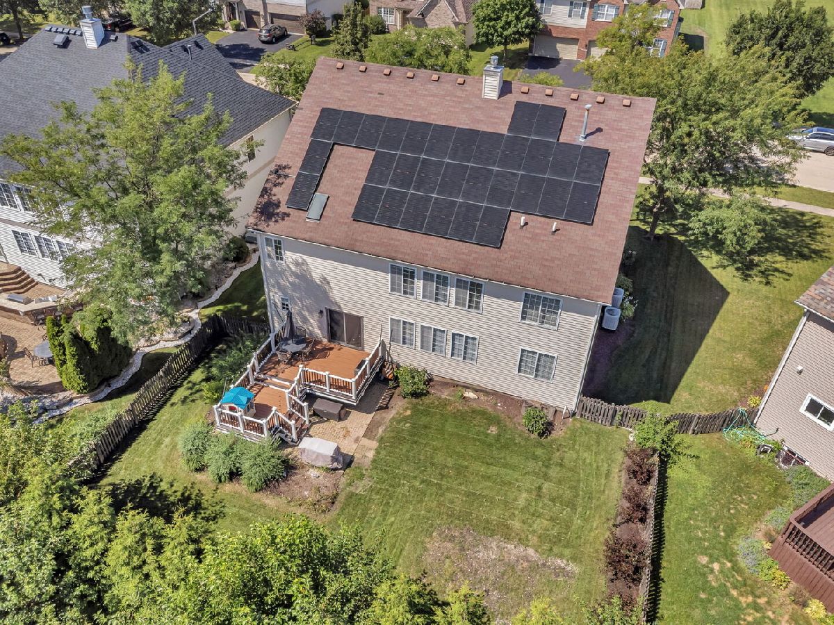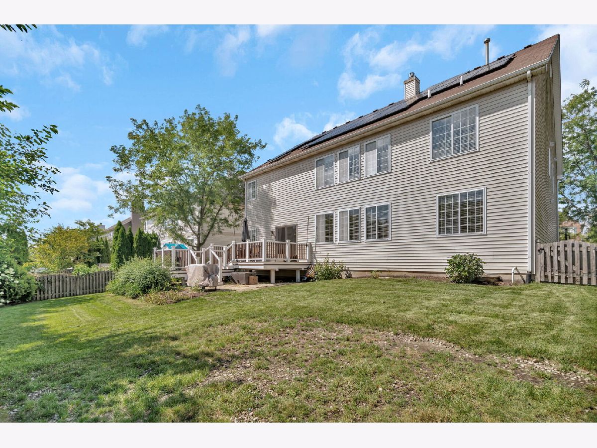 Spacious and inviting, this open-concept home offers a perfect blend of elegance and functionality. The formal living and dining rooms set the stage for entertaining, while the enormous kitchen featuring marble counters, a large island, 2026 Microwave and dishwasher, abundant storage and opens to the family room with its cozy fireplace. French doors lead to a versatile main floor den, home office, playroom, crafting, or the room that just fits your needs. Upstairs, you'll find three oversized secondary bedrooms sharing a full hall bath, plus a private master suite with vaulted ceiling, sitting room, and dual closets. The master bath has 2 separate sinks, tub, separate shower and linen closet. A second floor laundry adds convenience, while the impressive loft boasts a wall of custom cabinets, wet bar, sink, beverage refrigerator and microwave. This room has so much versatility, the perfect play or relaxing space for young or old. The full unfinished basement offers endless possibilities with a rough-in for a third full bath. Enjoy outdoor living in the fully fenced backyard with deck. Additional highlights include a 3-car garage, zoned HVAC, Solar Panels reducing your monthly bill, and an unbeatable location right across from the neighborhood park. Community amenities include a pool, clubhouse, and in subdivision grade school. The room sizes and the square footage of this home offers space for everyone making this a perfect choice for large or multi-generational living.