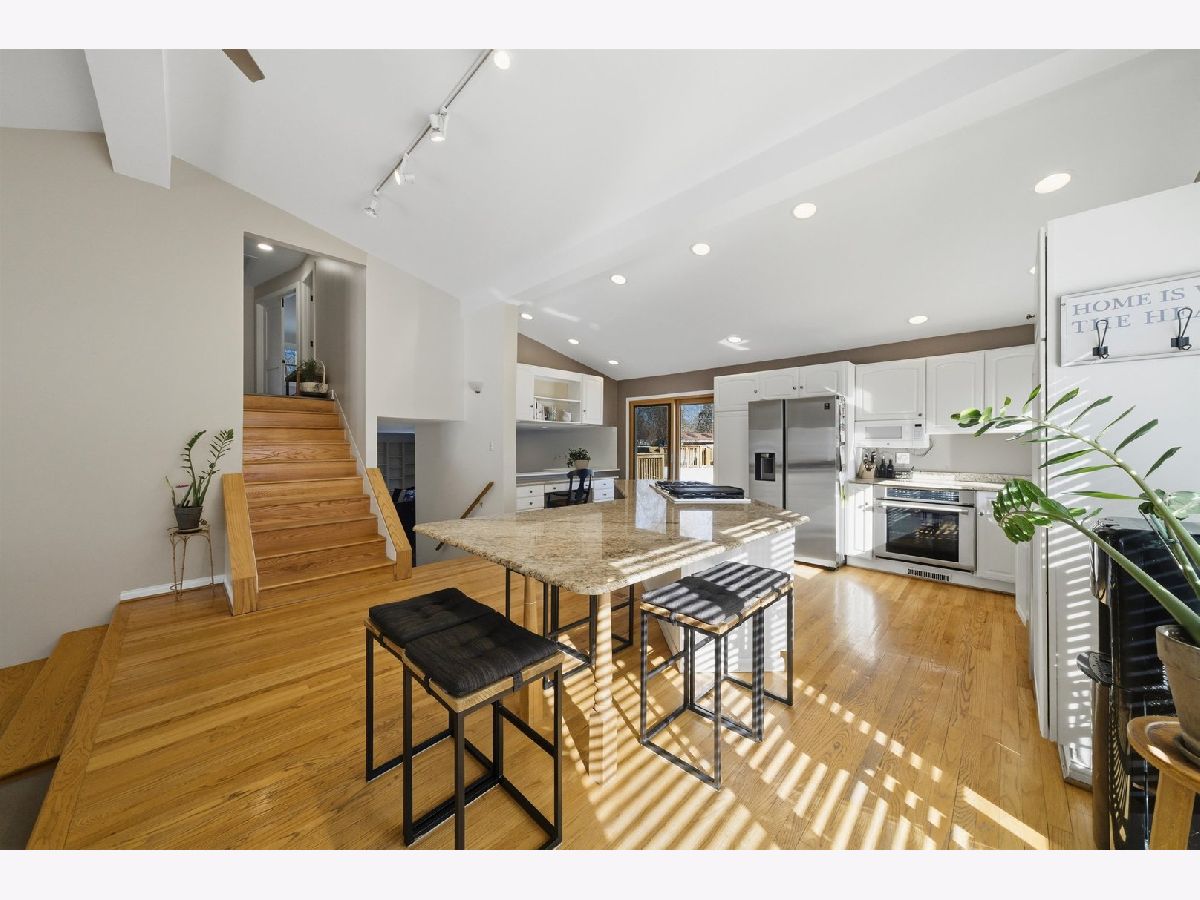 Cozy Home Featuring Soaring Ceilings And An Abundance Of Natural Light Throughout. Nestled On A Quiet Cul-De-Sac, This Residence Offers Unbeatable Convenience For Everyday Living. Step Inside To A Bright Main Level With Hardwood Floors, Vaulted Ceilings, And A Seamless Flow Between The Living Room, Dining Room, And Kitchen. The Combined Living And Dining Area Is Anchored By A Dramatic Floor-To-Ceiling Brick Masonry Fireplace, Creating A Warm And Impressive Focal Point. The Eat-In Kitchen Is Beautifully Appointed With Custom White Cabinetry, Stone Countertops, A Large Center Island, And Sliding Doors That Open To A Raised Deck, Perfect For Indoor-Outdoor Living. The Expansive Family Room Is Designed For Comfort And Entertaining, Featuring Custom Built-Ins, A Second Fireplace, A Dry Bar/Coffee Station, And Additional Sliding Doors Leading To The Private Deck And Backyard Oasis. You'll Also Find A Convenient Laundry Room And Powder Room On This Level. All Bedrooms Are Spacious With Ample Closet Space, And The Primary Suite Offers A Relaxing Retreat With A Soaking Tub And Separate Shower. A Versatile Sub-Basement Provides Additional Space Ideal For A Home Office, Workout Room, Recreation Area, Or Potential Fourth Bedroom. Outside, Enjoy A Large, Private Yard Complete With A Pool, Perfect For Summer Relaxation And Entertaining. With Elementary And Middle Schools Just Minutes Away, This Home Seamlessly Blends Comfort, Style, Space, And An Exceptional Location.