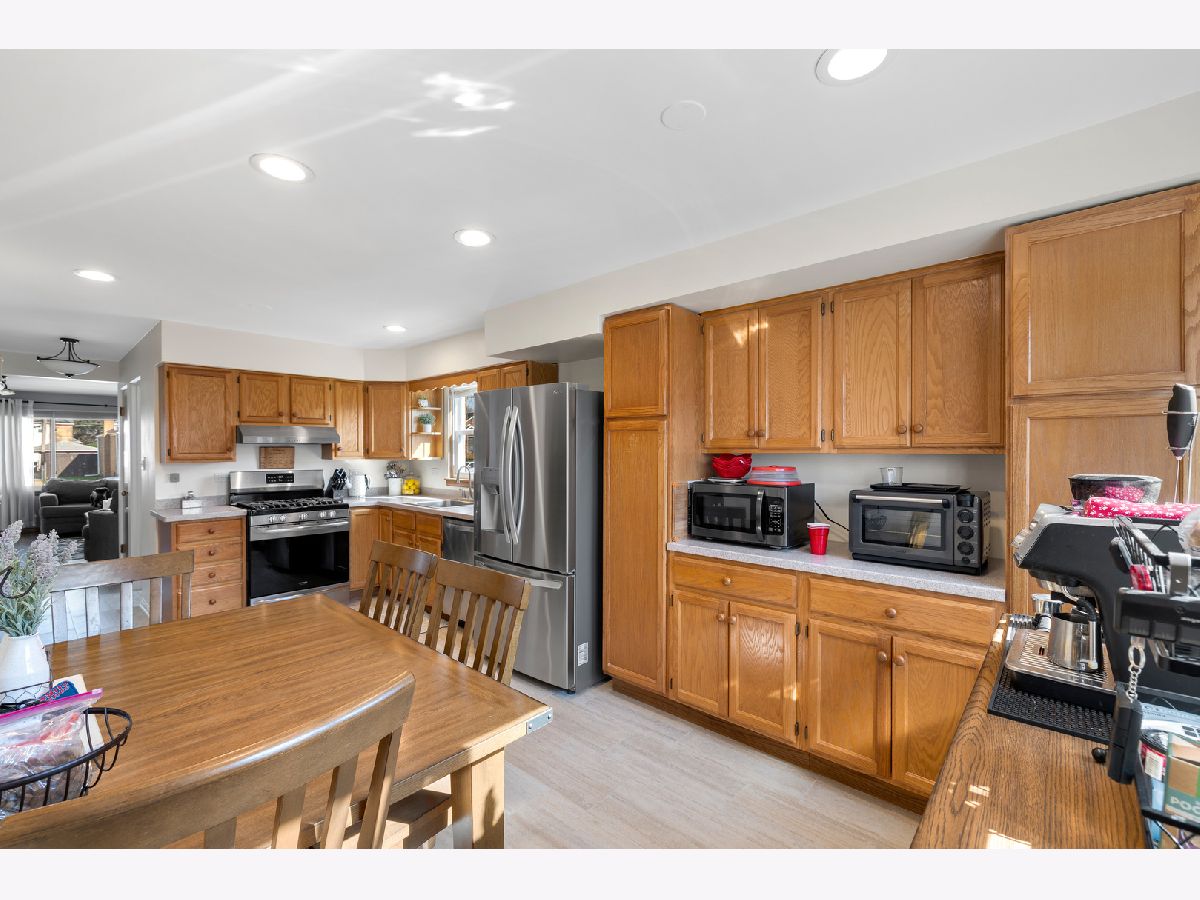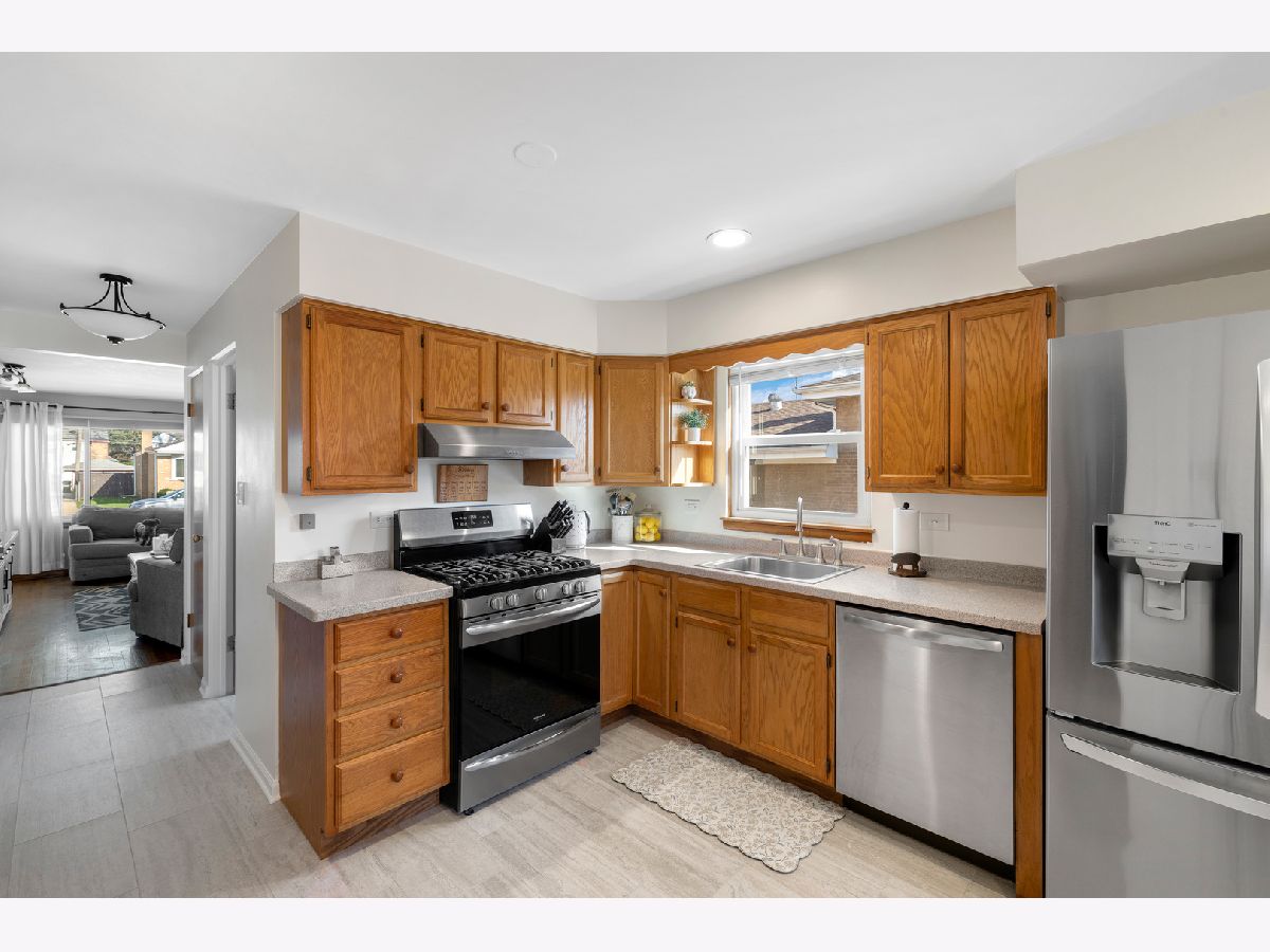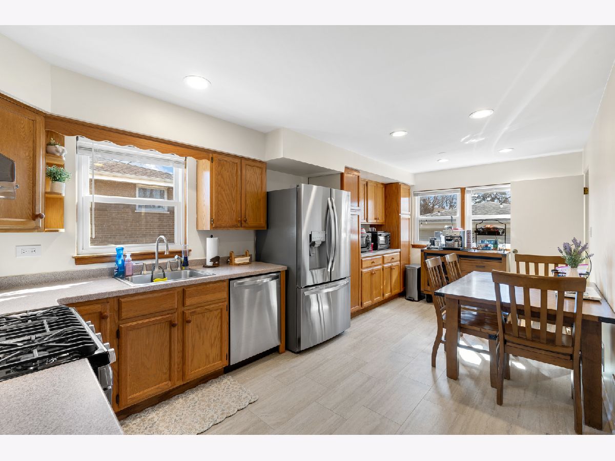 Solid Brick raised ranch with full partial finished basement. Hardwood floors grace first floor, living room and bedrooms. Updated eat-in kitchen enjoys new tile floor in 2026. Stainless appliance package; Stove/oven, Refrigerator new in 2023. Dishwasher new in 2026. Three good sized bedrooms with hardwood floors and a stylish bathroom across the hall also with new tile floor. Downstairs you'll find a full footprint semi-finished basement that has a versatile open floor plan. Separate utility room has washer/dryer new in 2025, HVAC in 2017, water heater 2017. Plumbing was update thru the years. Fenced back yard has a concrete side drive to 2.5 car garage and above ground pool. Ideally located to many amenities...short drive to Brookfield zoo. Congress Park Metra is 3-4 blocks...Just 4-5 blocks to La Grange Metra and the diverse Restaurant and business scene that is Downtown La Grange.