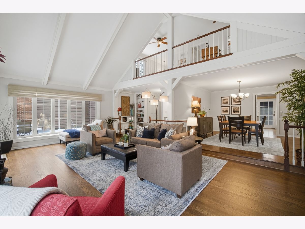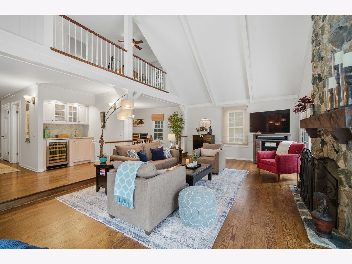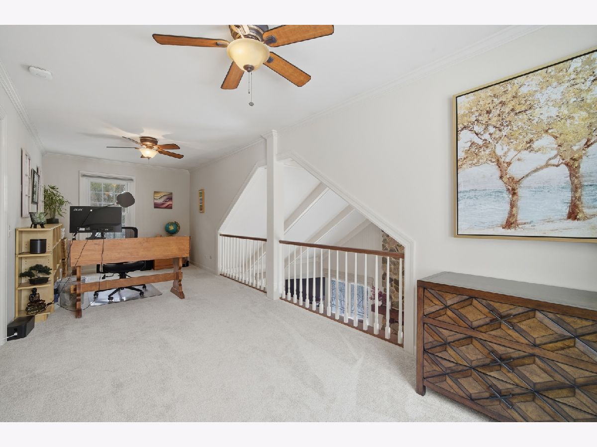 Impeccably maintained and recently updated, 2 bedroom / 2.5 bath turnkey home overlooking an idyllic pond in Wood Creek Courts. Desirable 1st floor primary with beautiful new ensuite bath with loads of storage. Newer kitchen, gorgeous new hardwood floors throughout most of main level and new carpet (2025) in primary suite and second floor bedroom and loft areas. The Great Room features an impressive stone fireplace, tasteful wet bar and panoramic water views. A Large dining room, 1st floor laundry, and powder room round out the main level. Upstairs you'll find the large second bedroom with huge walk-in closet & an ensuite bath. Loft area can serve so many purposes - office area, hangout space, library, yoga studio - whatever you need it to be. Huge clean, unfinished basement offers unlimited possibilities. Most windows have been replaced, and custom window treatments will remain with the home. Beautiful yard with private patio featuring pond & fountain views feels like your own private retreat! Usher in the summer months with amazing al fresco dining. Enjoy comfort, privacy, and convenience. Close to transportation, shopping, and amenities. What a Gem!!!