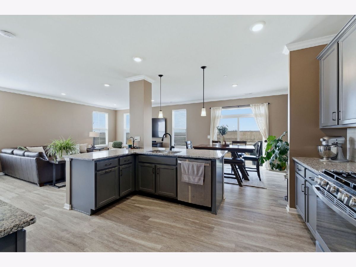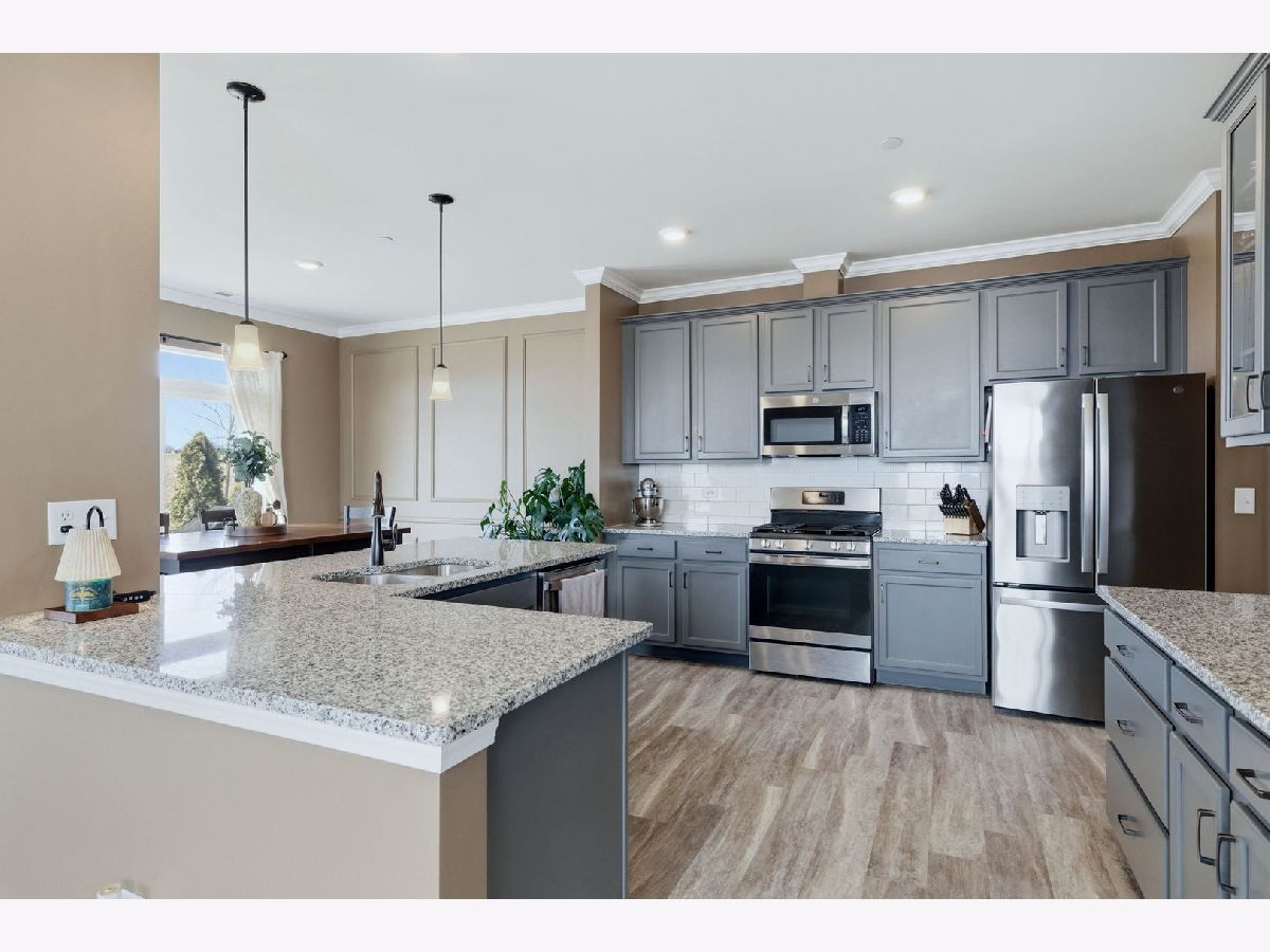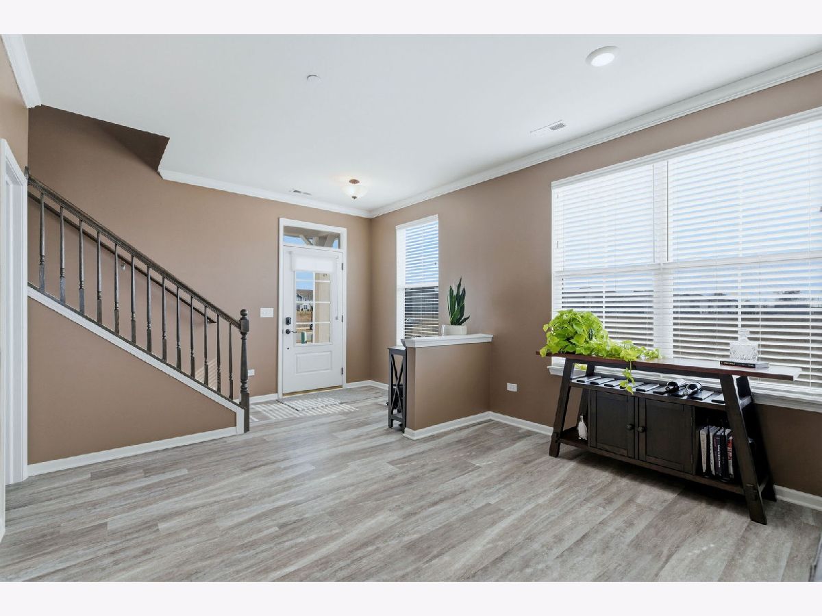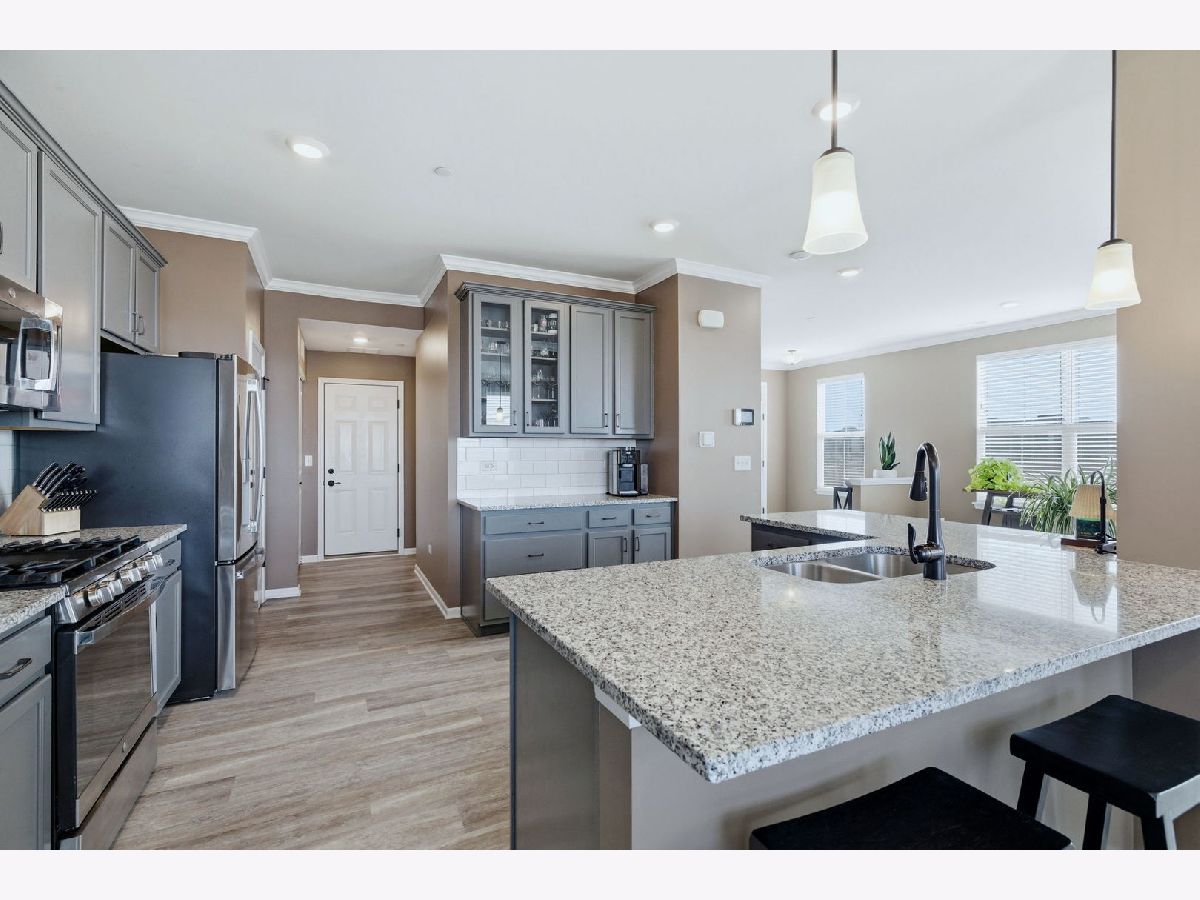 Welcome to this exceptional end unit townhome in the highly desirable, sold-out Townes at Silo Bend community! Built in 2022, this spacious Campbell floorplan offers 2,025 square feet of beautifully upgraded living space across two levels and it shows better than new. As an end unit, this home enjoys extra windows, abundant natural light, enhanced privacy with only one shared wall, and a larger outdoor footprint than a standard interior unit. Step inside and you'll immediately notice the premium touches that set this home apart from the rest. Crown molding throughout the entire main level, 9' ceilings, a freshly painted interior, and an open-concept great room stretching over 23 feet deep that is perfect for both everyday living and entertaining. The kitchen is a true showstopper, featuring granite countertops, 42" greige cabinetry, a beautiful tile backsplash, stainless steel appliances, a pantry, and a sunny breakfast area with a sliding glass door leading to your upgraded concrete patio. Whether you're hosting family gatherings or enjoying a quiet evening outside, this outdoor space was designed with entertaining in mind. Upstairs, the master bedroom is your private retreat. Complete with a dramatic tray ceiling that adds a touch of architectural elegance you won't find in a standard build. The upgraded master bathroom features an oversized, ceramic-tiled walk-in shower, a double sink vanity, and a built-in storage closet, delivering a true spa-like experience. Two additional generously sized bedrooms, a full hall bathroom, and a conveniently located second-floor laundry room complete the upper level. Additional upgrades and features include a fully insulated garage (upgrade) for year-round comfort, an owned water softener (no monthly rental fees!), and a 2-car attached garage. Every detail of this home has been thoughtfully considered, making it truly move-in ready from day one. Located in award-winning Lockport Township High School District 205 and Homer CCSD 33C, with easy access to I-355, shopping, dining, a park near by, and everything the Lockport area has to offer.