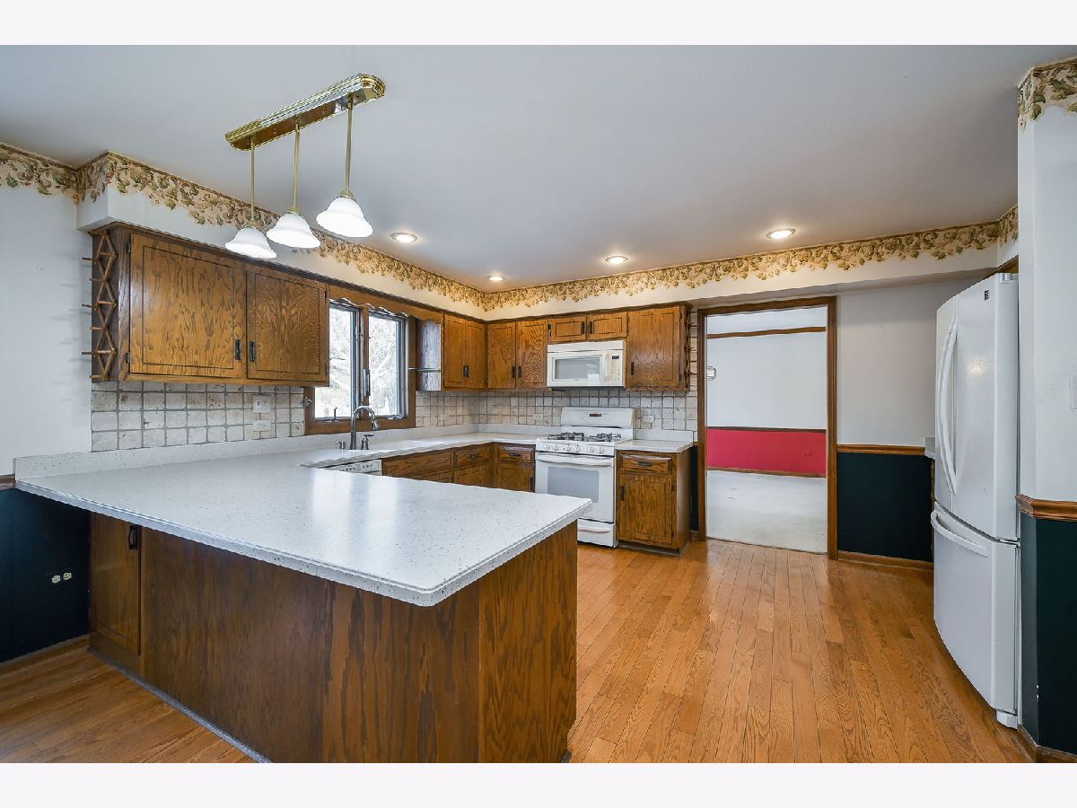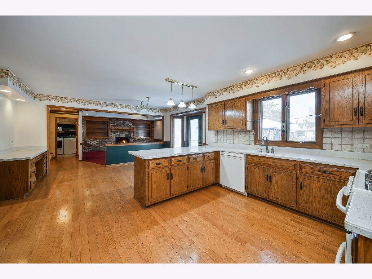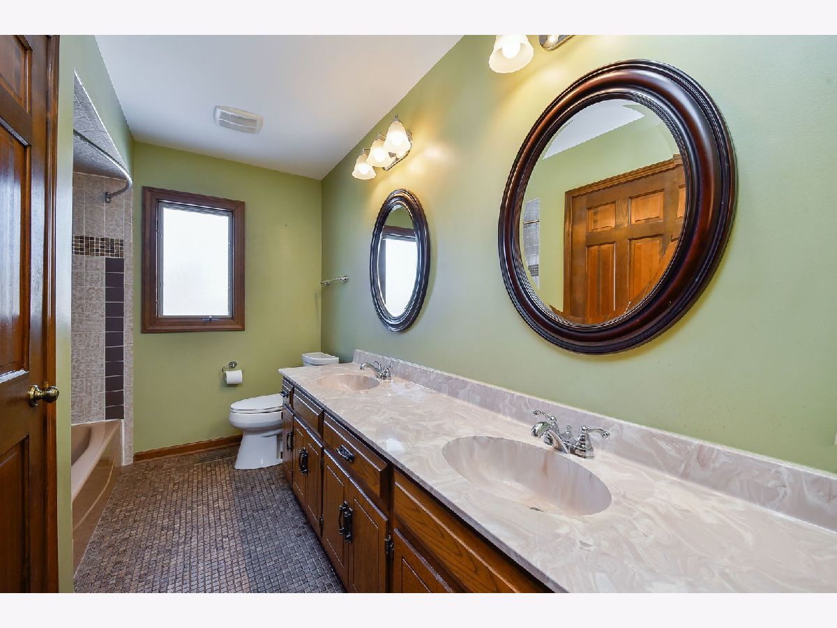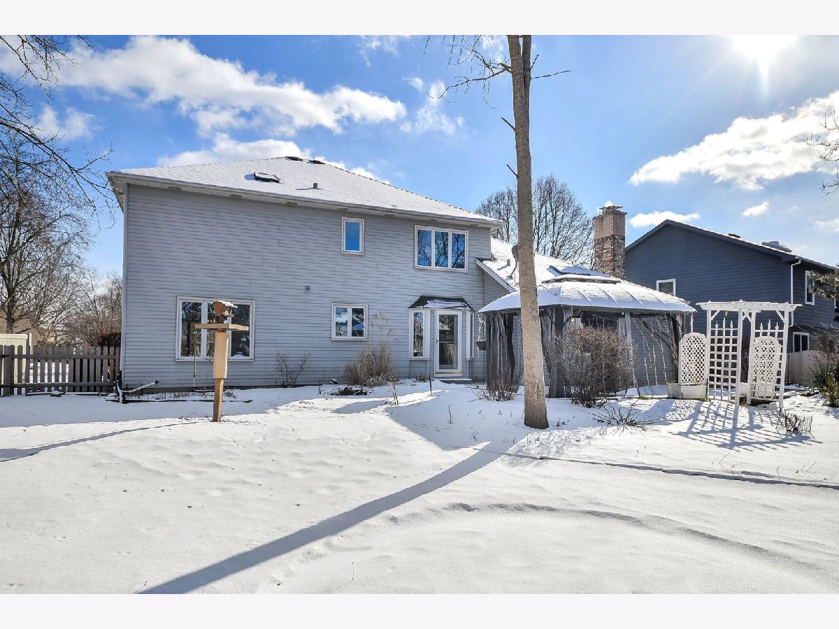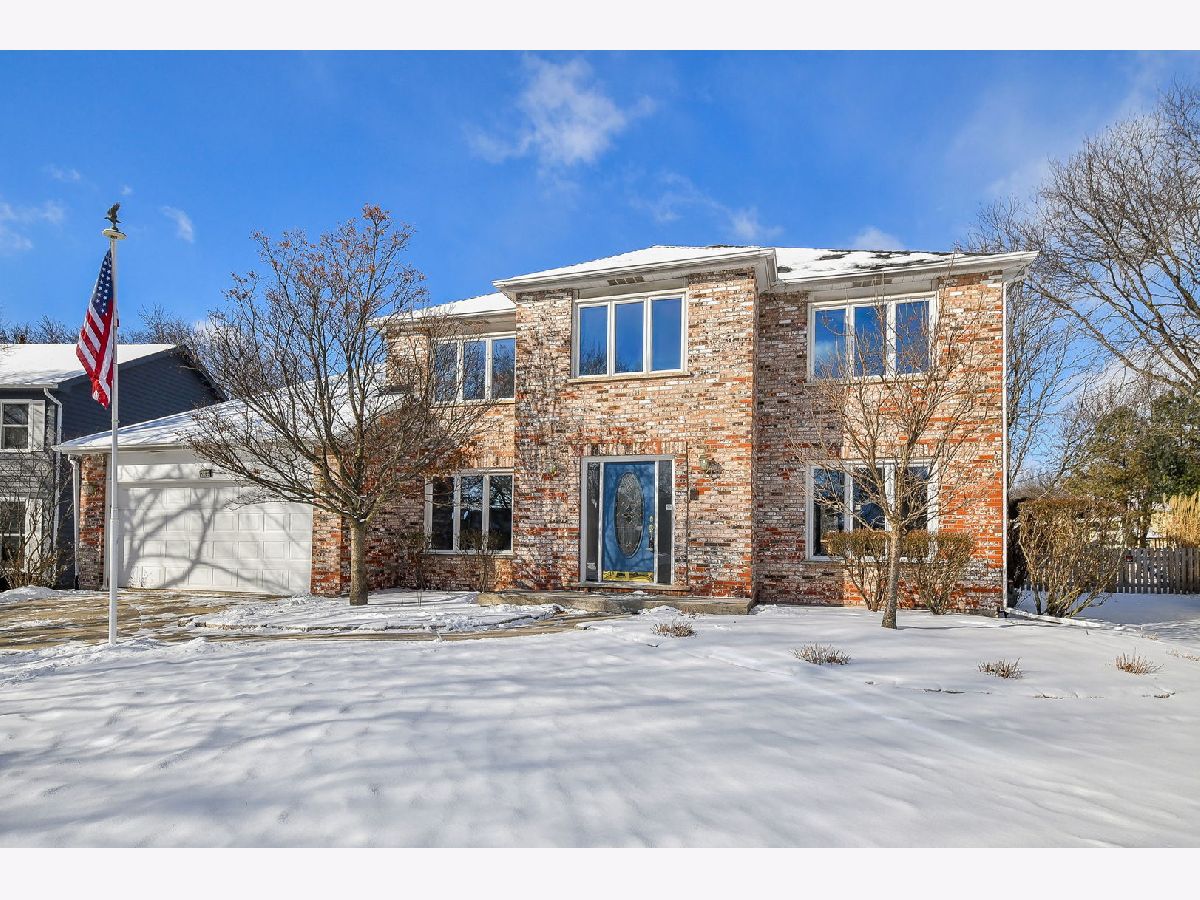 SOLD AS IS. Welcome to this stunning four-bedroom brick-front Georgian in sought-after Pembroke Commons, ideally located near shopping, tollways, and with a centrally located neighborhood playground. This home features hardwood flooring, custom trim work, two staircases, and a first-floor den. The open living and dining rooms are filled with natural light from triple windows. The spacious kitchen offers Corian countertops, a double Corian sink, abundant cabinetry, a walk-in pantry, and a convenient computer station, along with a lovely eat-in area with patio access, perfect for grilling and entertaining. The oversized family room showcases a dramatic cathedral ceiling with exposed beams, a full brick wall fireplace, custom built-in bookcases, and a wet bar, an ideal gathering space. The back hall includes a utility closet, second staircase, and a convenient laundry room with custom shelving. Upstairs, the expansive primary suite offers a cathedral ceiling with beams, a large walk-in closet, and generous space throughout. The luxury primary bath includes an oversized whirlpool tub, separate shower, large vanity, and skylight. Bedrooms 2, 3, and 4 are carpeted and share access to a hall bath with dual vanity and linen closet. Additional features include a whole house fan, an unfinished basement with storage shelving, a backup sump pump, and excellent future living potential. The home is complete with a cement driveway leading up to the two-car garage. The true showstopper is the backyard and expansive open space, backing to multiple neighboring homes, yet offering the feel of your own private soccer field. All this plus highly rated Highland Elementary, Kennedy Junior High, and Naperville North High School. SOLD AS IS.